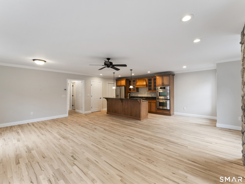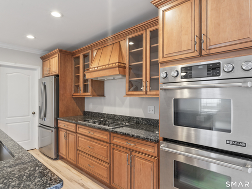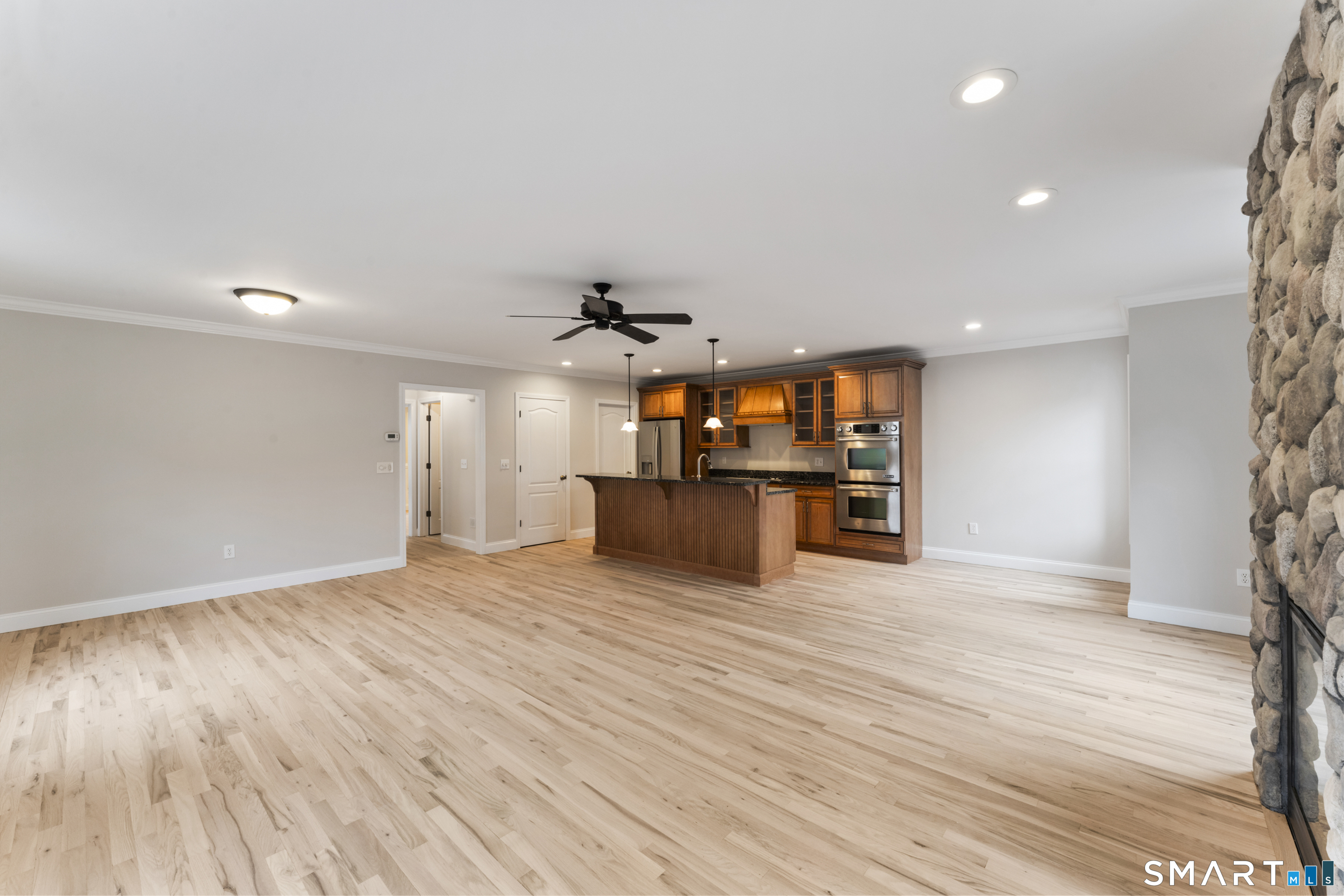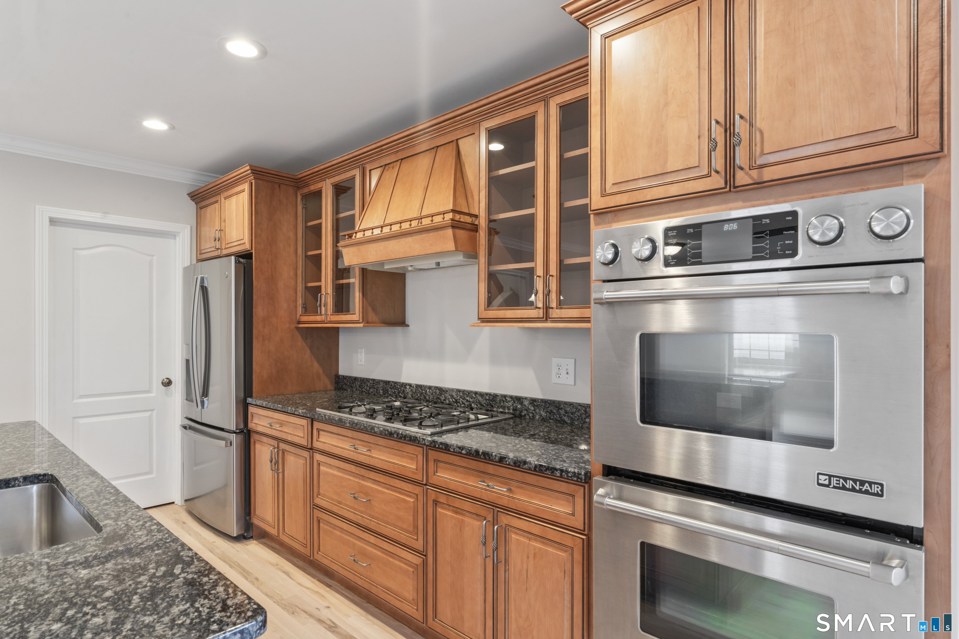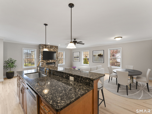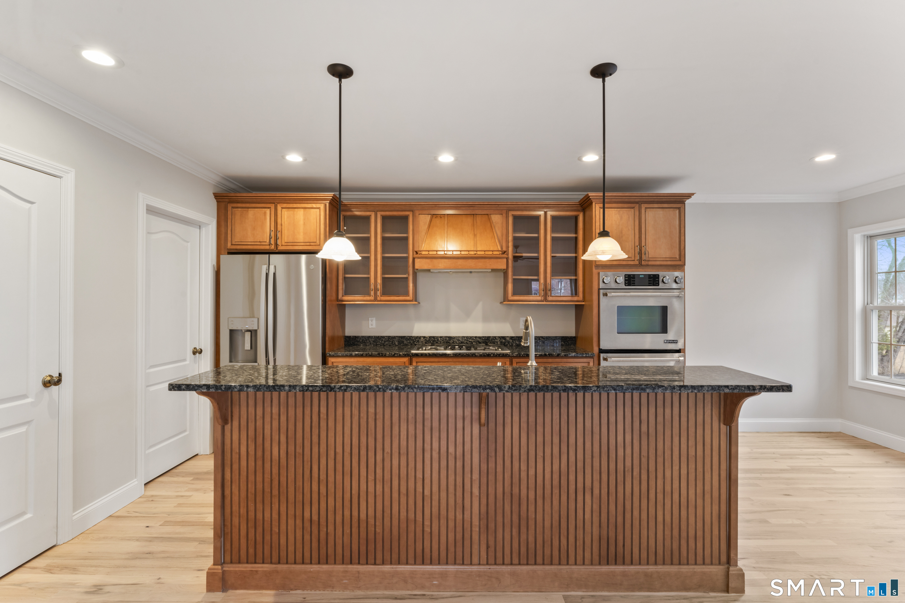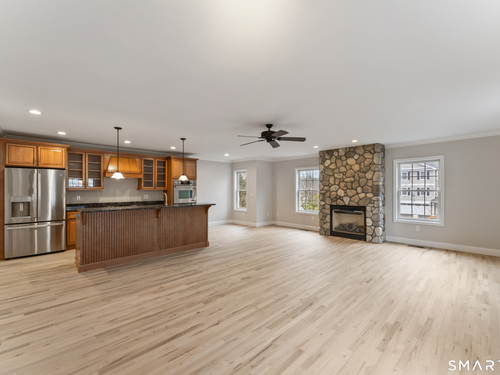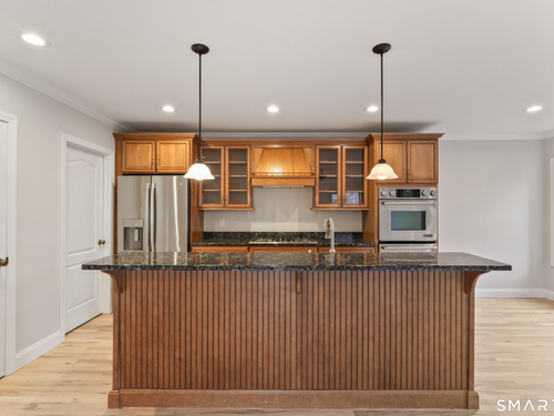 Recently refreshed and truly move-in ready, this stunning townhome is ideally located in the heart of Bethel, CT. Offering 3 bedrooms and 2.5 baths, the home has been freshly painted and features beautifully refinished hardwood floors throughout, creating a warm and cohesive feel. The main level showcases a spacious gourmet kitchen equipped with stainless steel appliances, including a gas cooktop, double oven, newer refrigerator, granite countertops, and a center island with breakfast bar, perfect for both everyday living and entertaining. The kitchen flows seamlessly into the inviting family room, complete with a gas fireplace, as well as a dining area ideal for gatherings. An additional versatile room on the main level can serve as a formal dining room or extra living space, with direct access to the back deck. A dedicated home office and a convenient half bath complete this level. Upstairs, you'll find three generously sized bedrooms, each featuring hardwood floors and walk-in closets, offering comfort and ample storage. The spacious lower-level bonus room provides even more flexibility-perfect for a media room, gym, or playroom. Located just minutes from vibrant downtown Bethel, with easy access to shopping, dining, and the Metro-North train station, this home offers the perfect blend of style, space, and convenience. Don't miss this incredible opportunity!