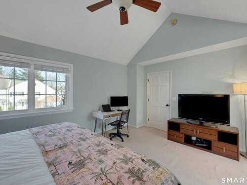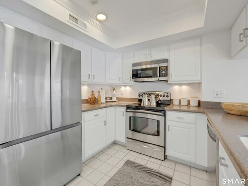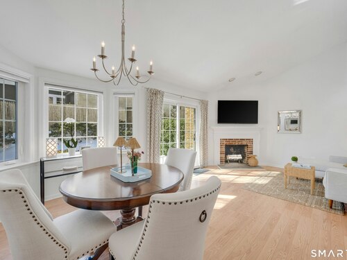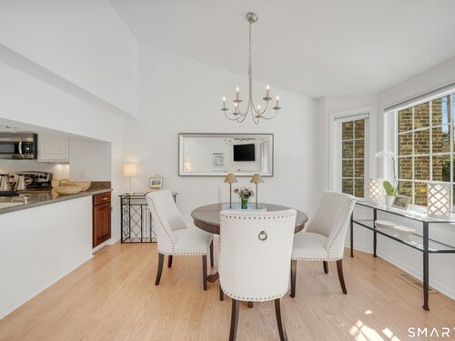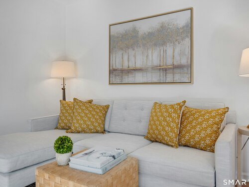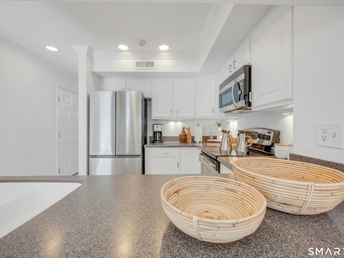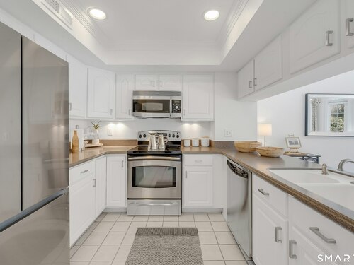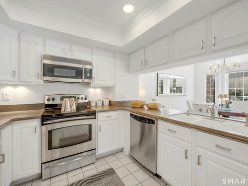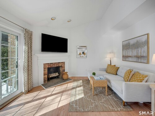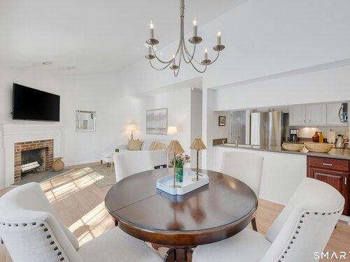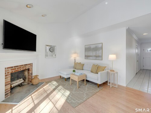 Townhouse-style condo in the desirable Villager Pond community offering a prime Darien location and thoughtful updates. The inviting living room with fireplace flows into the dining area and kitchen, ideal for everyday living and entertaining. The spacious primary bedroom features a vaulted ceiling, generous closet space, plus attic and crawl-space storage. Enjoy a private outdoor patio and the rare convenience of an attached one-car garage with interior access. Recent upgrades include a renovated upstairs bath, new windows, water heater, and refrigerator. Community amenities include a pool and clubhouse. Located in a coastal town with access to local beaches, along with recent additions of in-town shopping and dining, plus proximity to a movie theater, Whole Foods, Cherry Lawn Park, Trader Joe's, downtown Darien, and the Metro-North station.