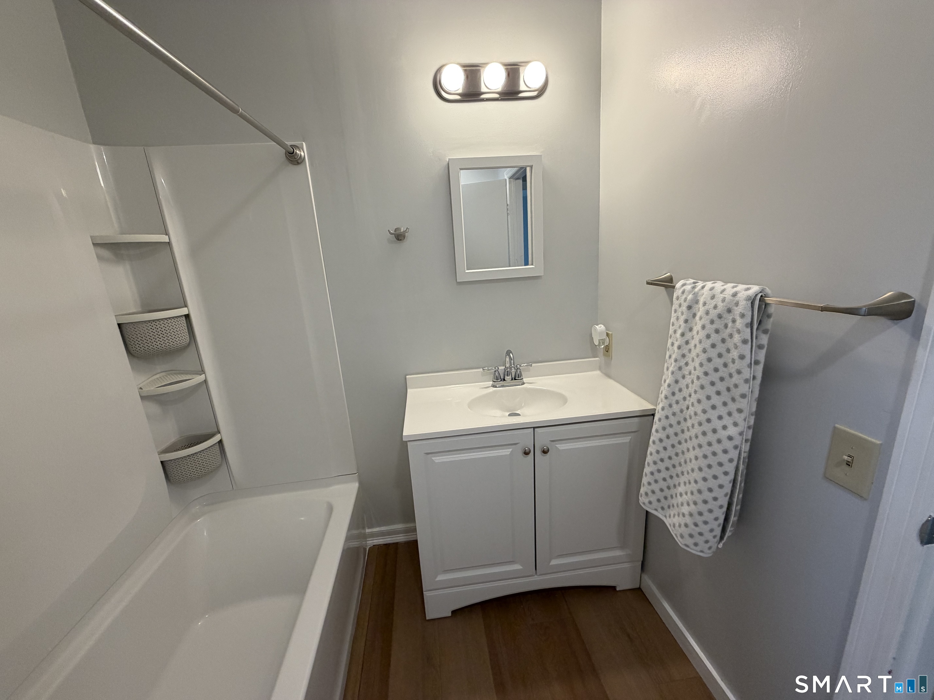 Move right into this light and bright recently renovated Townhouse. New kitchen in 2025 with white Shaker cabinets, granite countertops, stainless steel appliances, new slider in dining room to deck overlooking large lawn, new luxury vinyl flooring entire main level, Updated powder room with new tile floor, updated main bath with brand new tub/shower, newer vanity and floor. Both bedrooms are very large, have abundant closet space, and brand new windows. Pull down attic storage. Full sized washer and dryer in closet on main level. Assigned parking right at the front door and pleny of guest parking nearby. Amenities include sunny in-ground pool and clubhouse.
