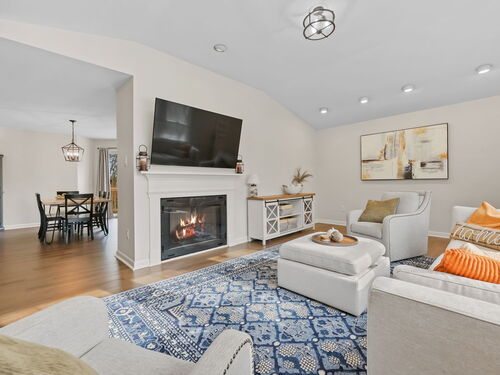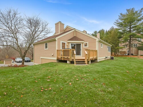 Nestled in a private enclave at the heart of the complex, this home combines tasteful updates, modern comfort, and a prime location just minutes from shopping, dining, and I-84. Step inside to find a bright, open layout filled with natural light. Enjoy One level living with all of your necessities on the main floor! The spacious living room features a cozy fireplace and flows seamlessly into the dining area - perfect for entertaining. The renovated kitchen boasts modern appliances, stylish finishes, and direct access to a brand-new deck, ideal for relaxing or outdoor dining. A convenient bar closet adds a touch of sophistication to the dining space. The primary bedroom offers a private bath and plenty of closet space, while the second bedroom is generously sized and versatile. The lower level provides endless possibilities - use it as a family room, recreation space, home office, or gym. Additional highlights include a two-car garage (a rarity in this complex and price range) and extra parking space, abundant storage, and tasteful updates throughout with a fresh, inviting color palette. Residents of Sterling Woods enjoy a wonderful community atmosphere with amenities such as a clubhouse, pool, tennis courts, fitness center, and walking trails.