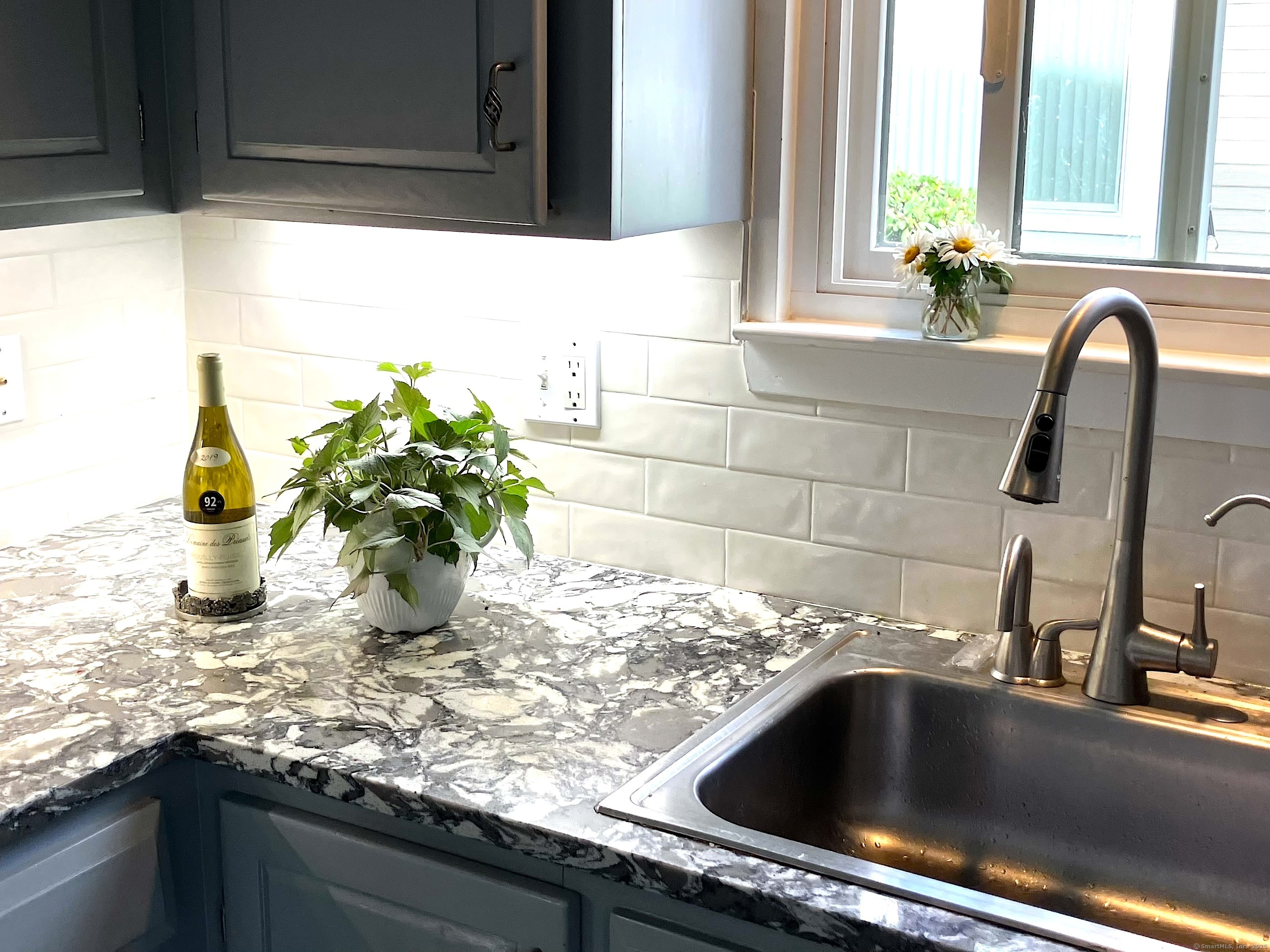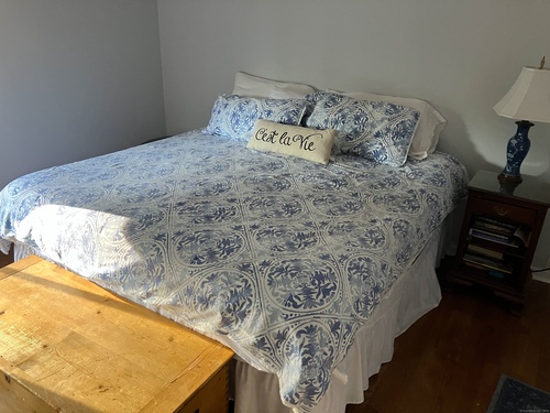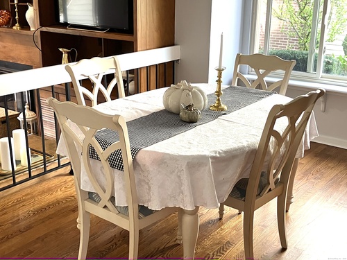 One of a kind end unit in one of the best condo complexes in Norwalk! Beautifully updated, end unit townhouse. 2 Bedroom, 2.5 Bath with lots of privacy & light. Newly painted. Unit has its garage directly across from the front door! Remodeled kitchen with quartz counters & new tile floor. Baths with new quartz countertops. Hardwood floors throughout. Fireplace in living room. Large Deck off living room with stairs into garden Loads of storage: cabinets, basement, attic, garage. Sunken Living Room with hardwood floors, baseboard heating & fireplace. Each Bedroom has its own private bath. Two large pools in complex plus wading pool. New Tennis/Pickleball courts.