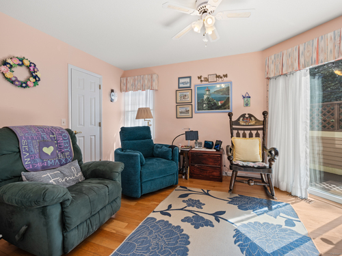 Balcony/Deck, Ceiling Fan, Sliders, Hardwood Floor