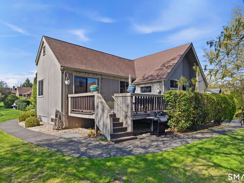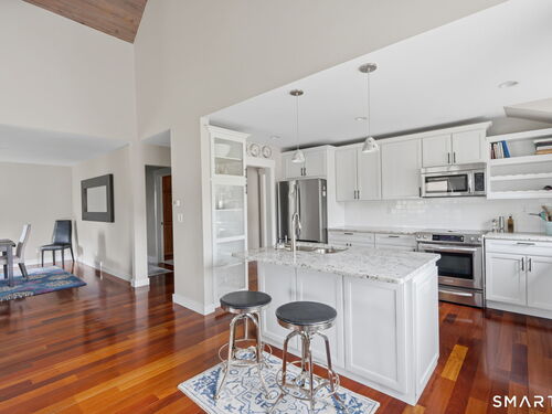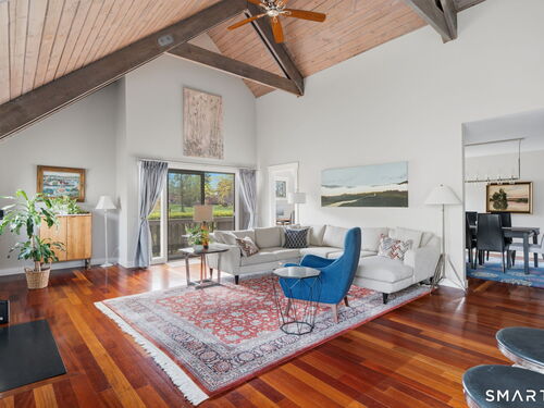 Experience the pinnacle of refined living in this rare, expanded Whittier nestled within the highly coveted Oronoque Village! This meticulously updated condo seamlessly blends luxury with a functional layout designed for comfort and sustainability, including a private EV charger. Stunningly updated kitchen, flowing effortlessly into the open living area, creating an airy atmosphere perfect for both daily living and entertaining. Natural light pours through sliders opening to private deck which offers golf course views. The main level includes a bonus office providing a quiet retreat for work or library. Oronoque Village offers 3 pools (1 heated), 2 Clubhouses, Tennis, Pickleball, and many Social Clubs. This rare unit offers the perfect blend of modern upgrades and scenic tranquility!