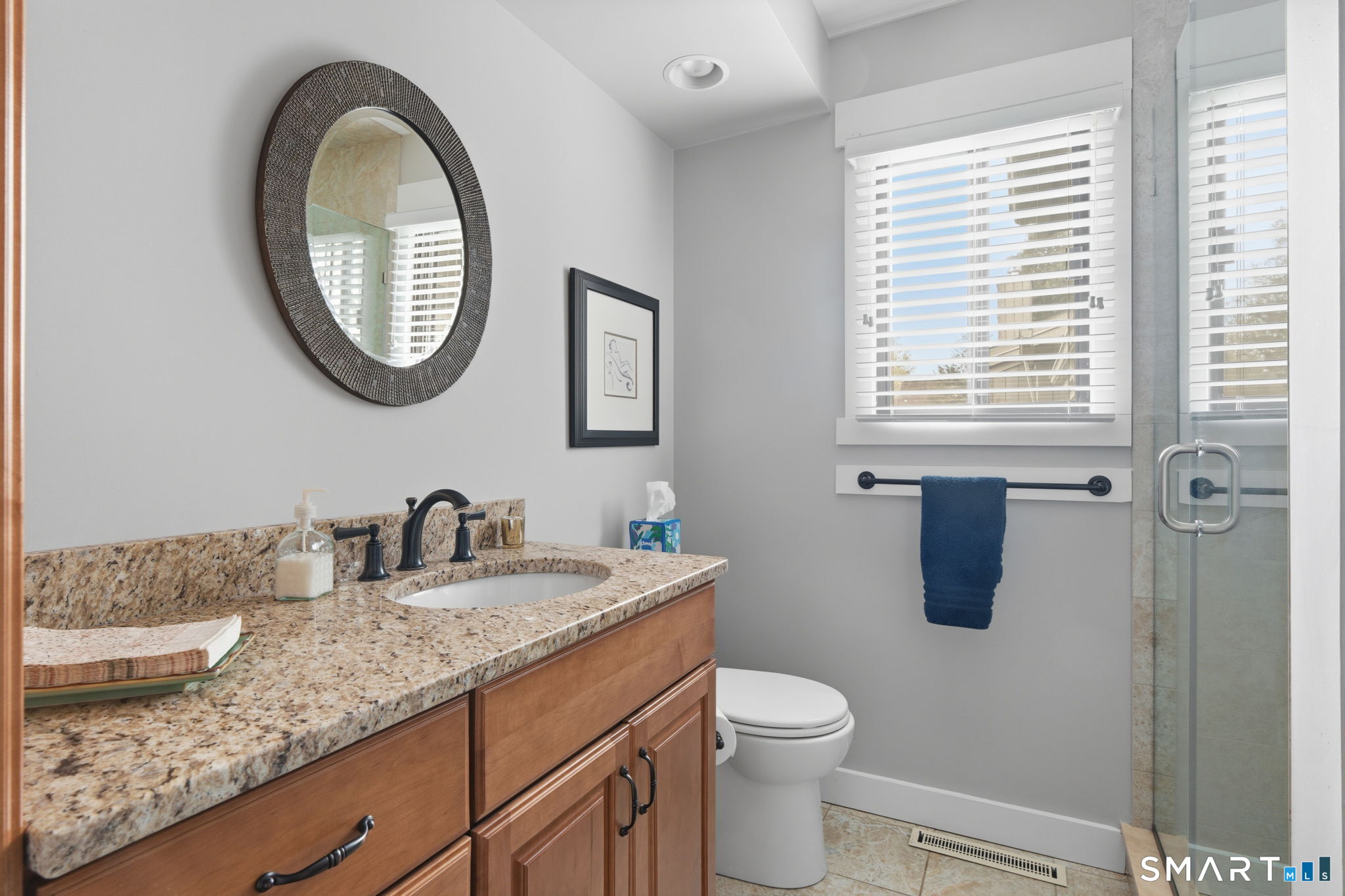 Granite Counters, Stall Shower, Tile Floor