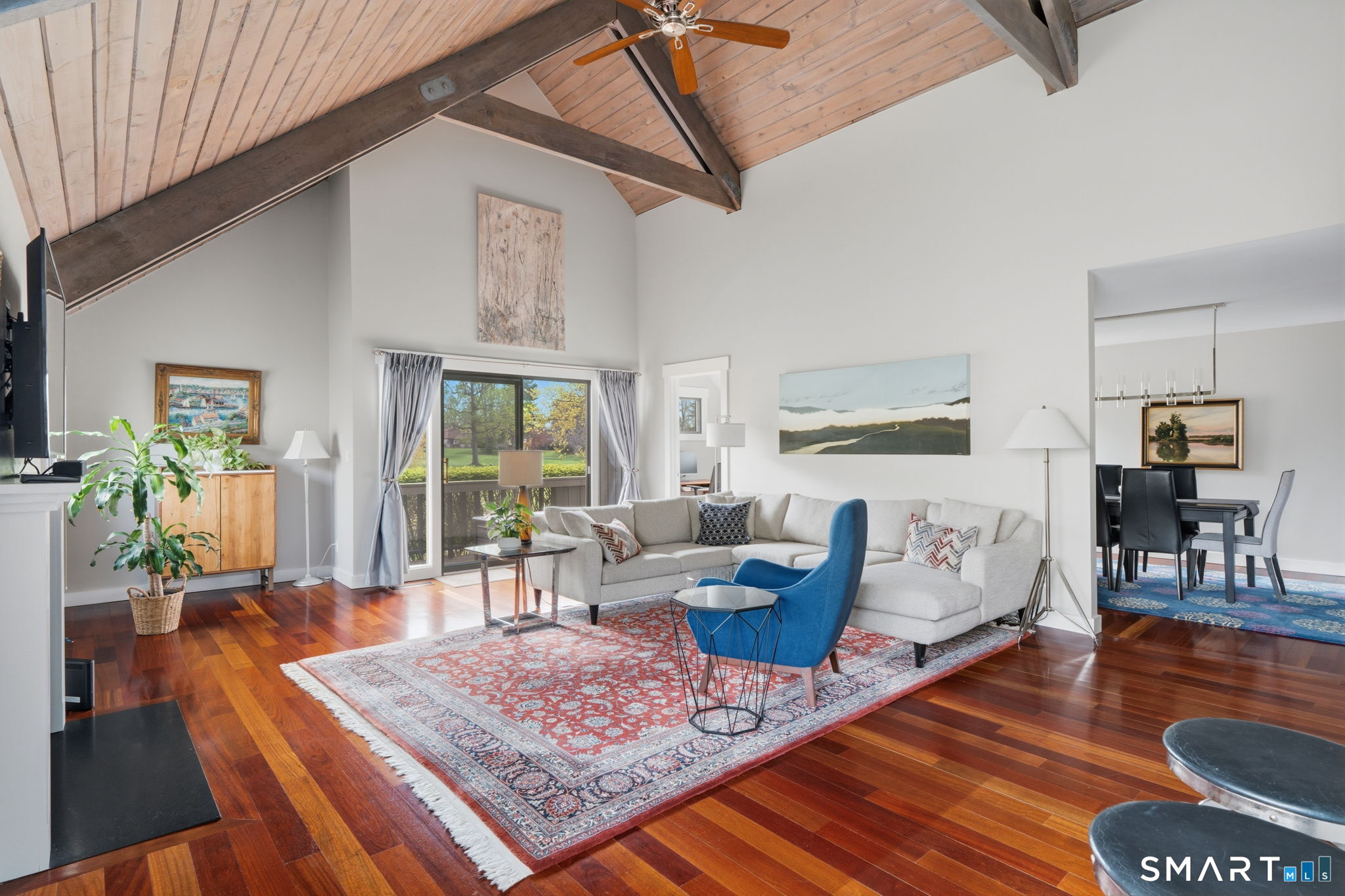 Vaulted Ceiling, Balcony/Deck, Gas Log Fireplace, Sliders, Hardwood Floor