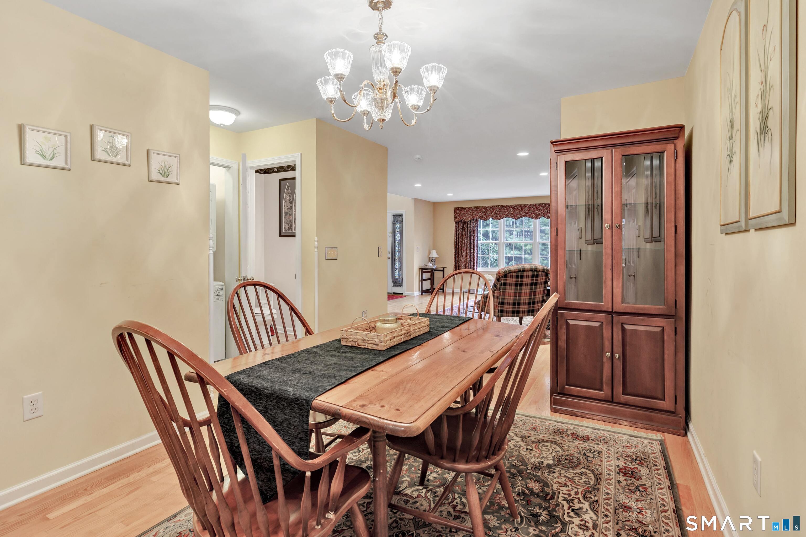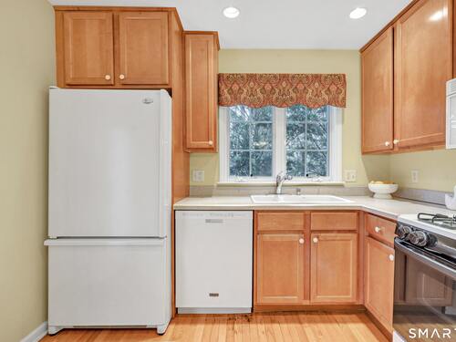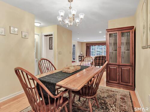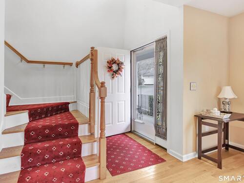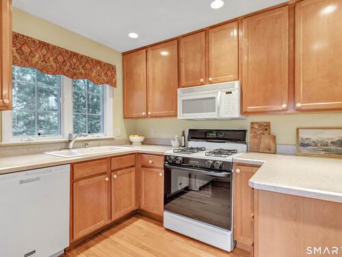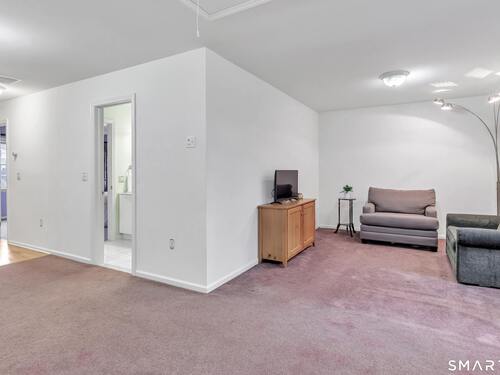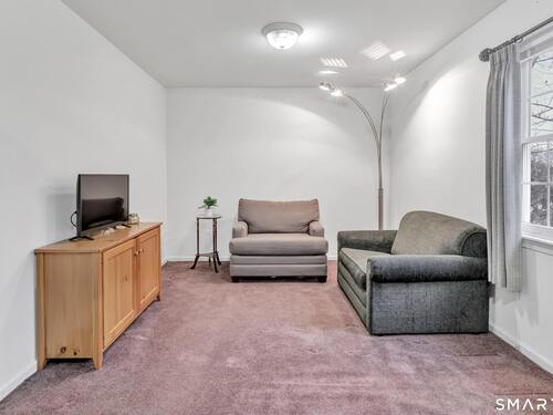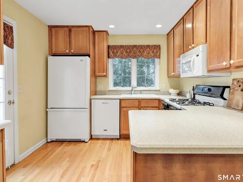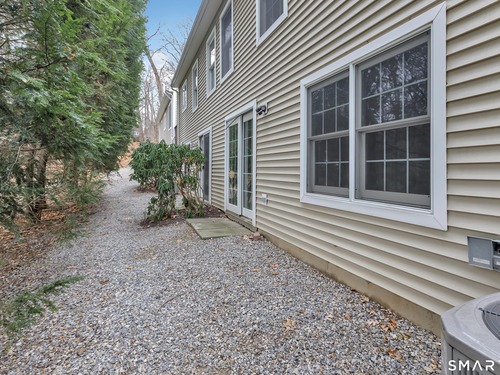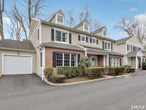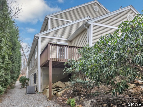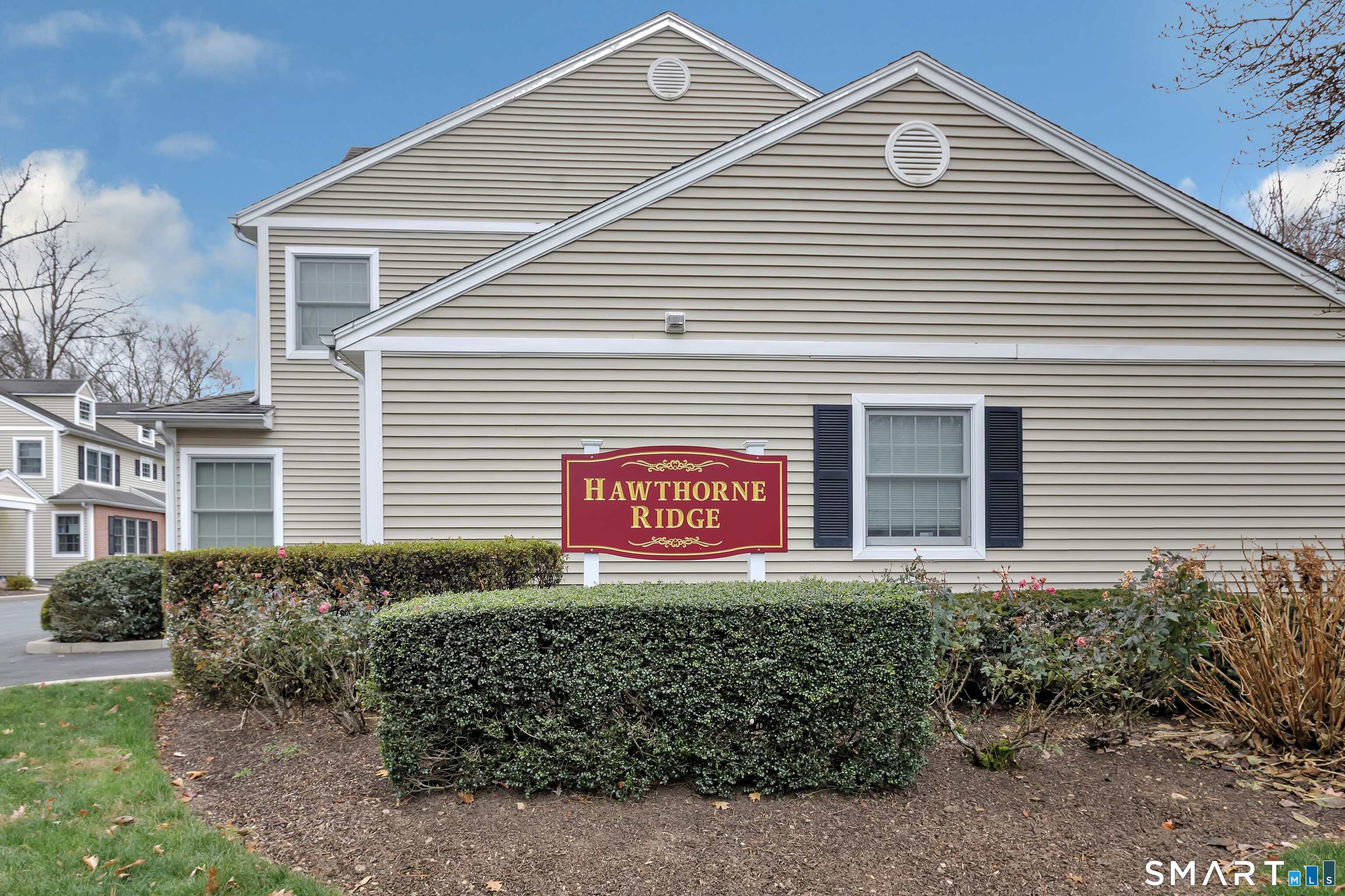 From the moment you step onto the covered front porch at 8 Hawthorne Ridge, there is a sense of privacy and quiet that defines this well-kept 55+ community. The foyer opens into the main living space, where natural light fills the room thanks to the home's end unit position. The living room flows effortlessly into the dining area and kitchen; here, a breakfast bar offers seating, while a window over the sink looks out to a private, tree-lined backdrop. Just off the kitchen, a deck overlooks greenery, providing a peaceful setting for morning coffee or quiet evenings outside. The main level also features a primary bedroom with a full bath, a half bath & stacked laundry closet. Upstairs, the second bedroom is complemented by a full bath, walk-in closet, and a large, flexible bonus space that works well as a home office or sitting room. A pull down attic provides extra storage. The walkout LL offers 988 sq ft of unfinished space and opens directly to a quiet backyard. Whether used for storage or future customization, this level adds valuable potential. Add'l features include a 1 car attached garage and a location that feels tucked away while remaining close to I-95, the Merritt Parkway, shopping, dining, and daily conveniences. With just 39 units, this community offers a peaceful, private setting where pride of ownership is evident. For those looking to downsize while maintaining comfort and flexibility, 8 Hawthorne Ridge offers a welcoming place to settle into your next chapter.