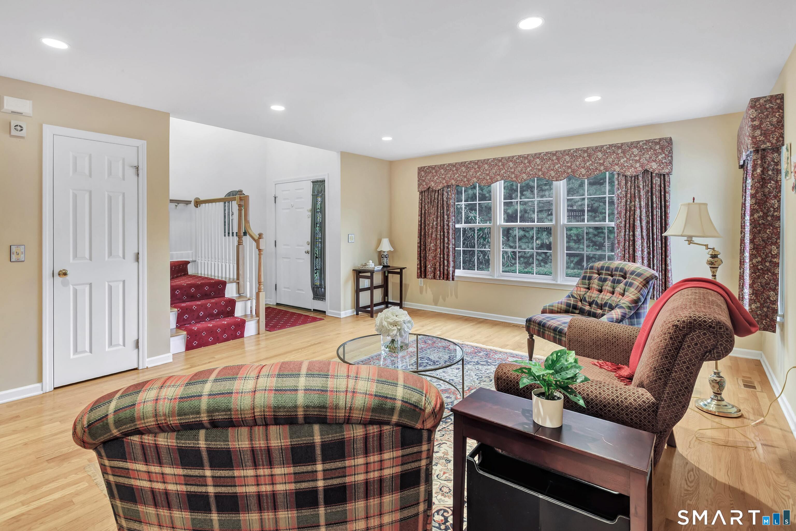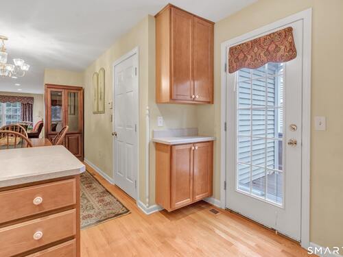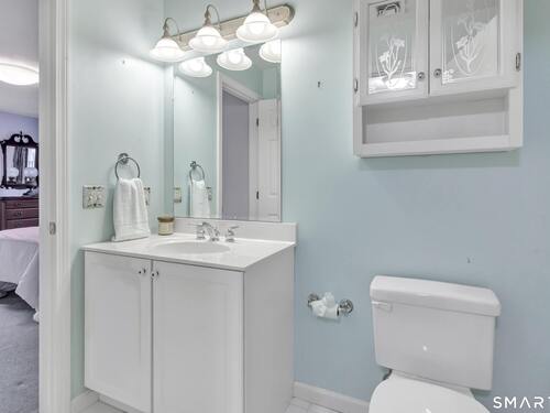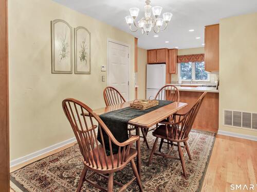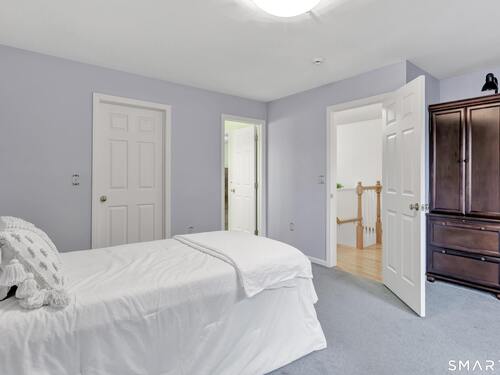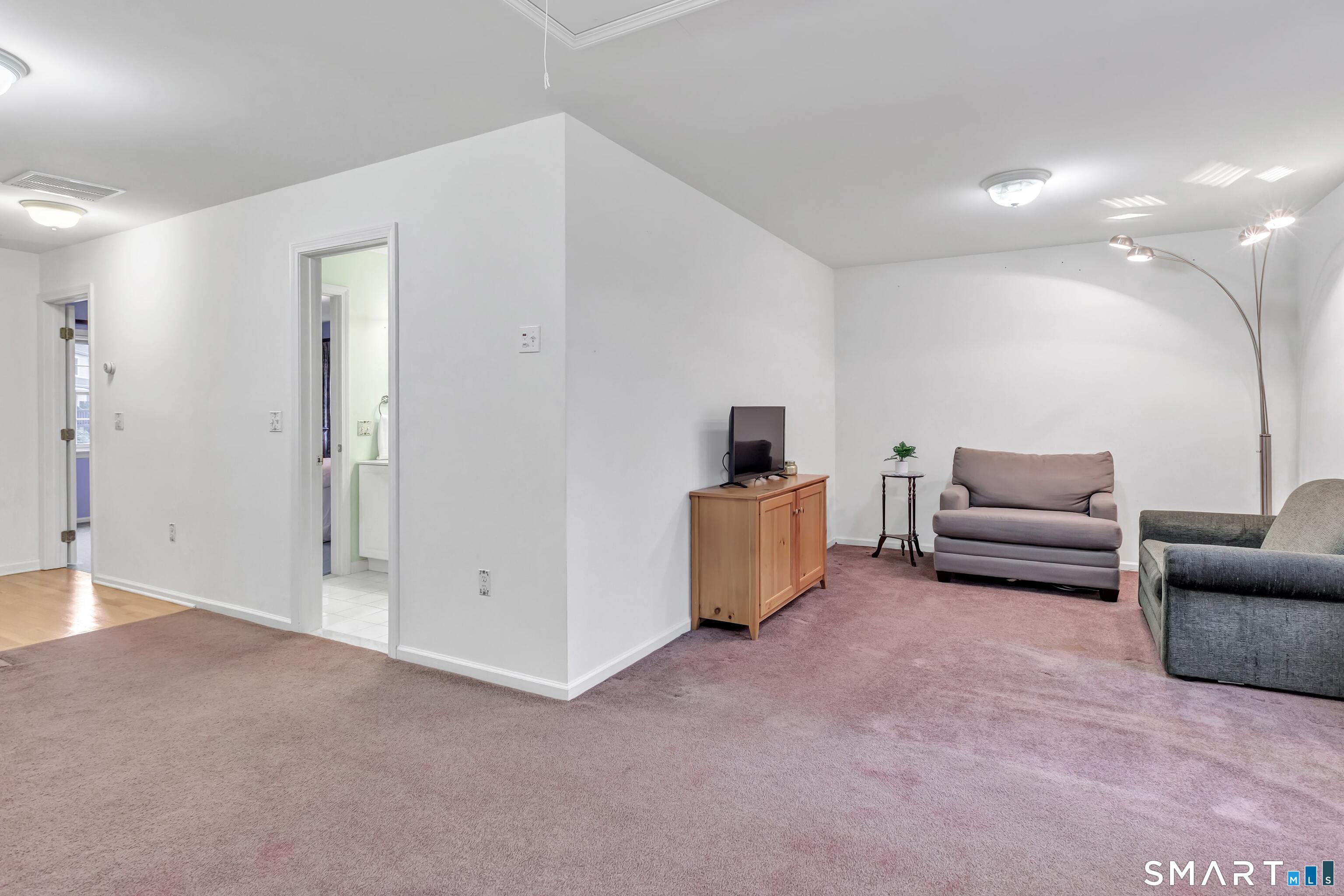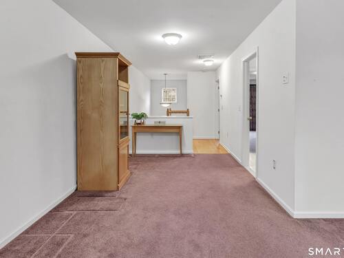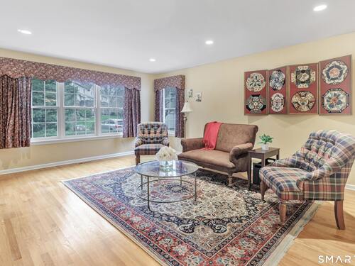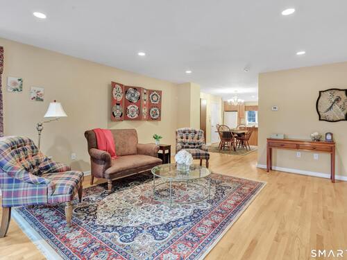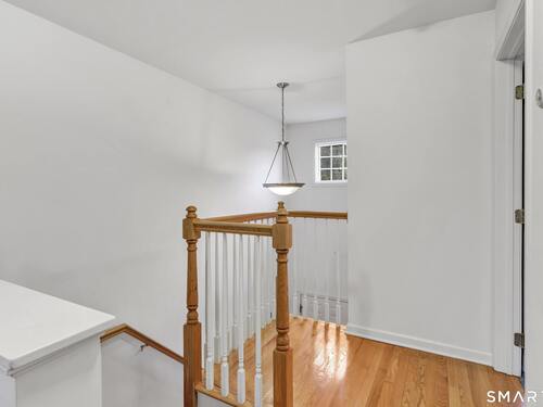 From the moment you step onto the covered front porch at 8 Hawthorne Ridge, there is a sense of privacy and quiet that defines this well-kept 55+ community. The foyer opens into the main living space, where natural light fills the room thanks to the home's end unit position. The living room flows effortlessly into the dining area and kitchen; here, a breakfast bar offers seating, while a window over the sink looks out to a private, tree-lined backdrop. Just off the kitchen, a deck overlooks greenery, providing a peaceful setting for morning coffee or quiet evenings outside. The main level also features a primary bedroom with a full bath, a half bath & stacked laundry closet. Upstairs, the second bedroom is complemented by a full bath, walk-in closet, and a large, flexible bonus space that works well as a home office or sitting room. A pull down attic provides extra storage. The walkout LL offers 988 sq ft of unfinished space and opens directly to a quiet backyard. Whether used for storage or future customization, this level adds valuable potential. Add'l features include a 1 car attached garage and a location that feels tucked away while remaining close to I-95, the Merritt Parkway, shopping, dining, and daily conveniences. With just 39 units, this community offers a peaceful, private setting where pride of ownership is evident. For those looking to downsize while maintaining comfort and flexibility, 8 Hawthorne Ridge offers a welcoming place to settle into your next chapter.