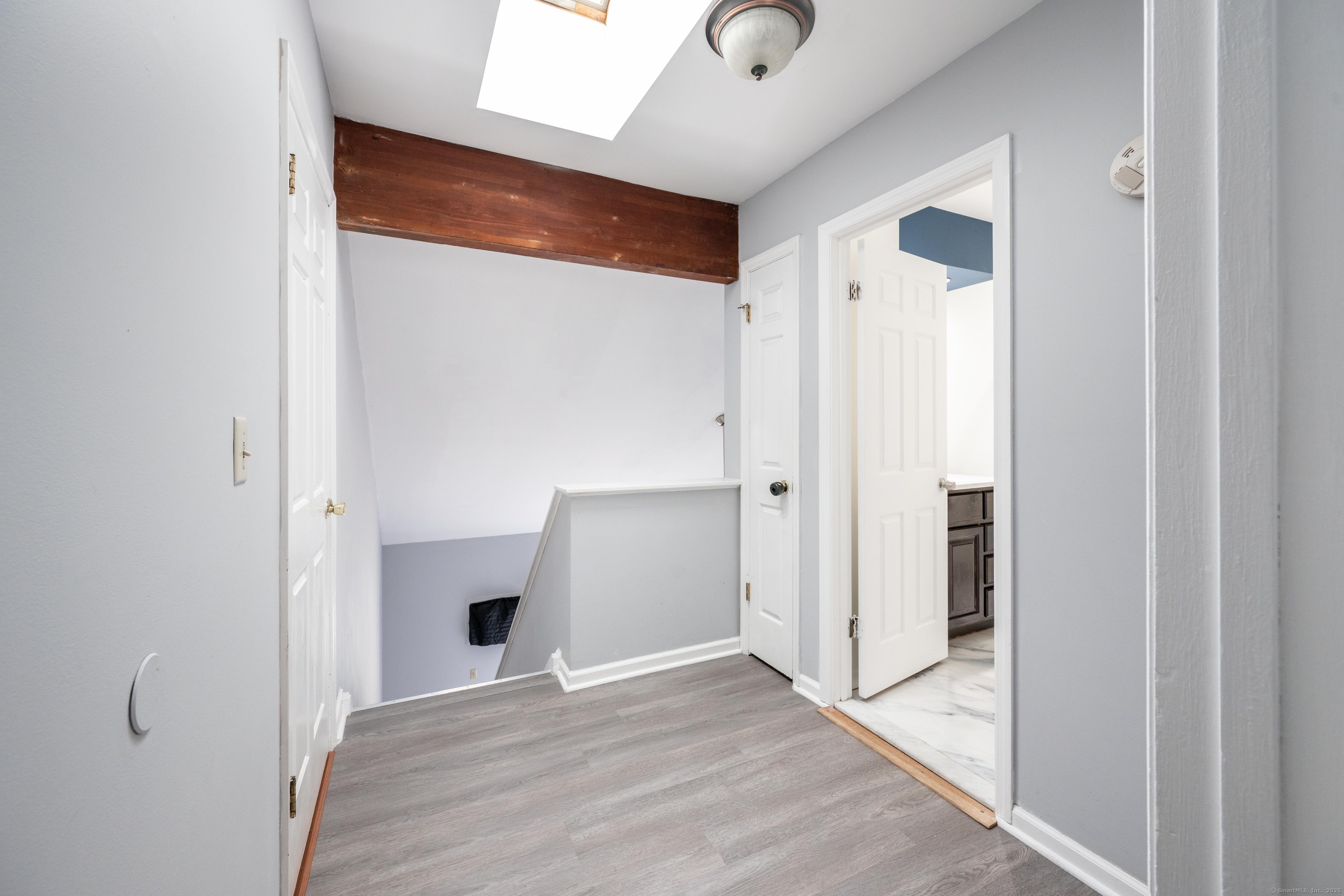 Light, bright and airy townhouse in the desirable Park Ridge complex, just a short walk to Candlewood Lake! A sun-filled living room with cathedral ceiling, wood-burning fireplace and deck greets you as you enter the main level. There is a spacious kitchen with breakfast bar and oversized dining room with pantry and bonus office/den area. Also on this level you'll find brand new powder room and storage closets. Upstairs offers a master bedroom with walk-in closet, bonus vanity area and beautifully updated master bath with new tile flooring, vanity and glass shower doors. Another roomy bedroom on this level, skylight and convenient upper level laundry room. Other updates include washer, dryer, hot water heater, stainless kitchen appliances, 2 new bathrooms and new flooring though out. Extra storage unit in the common basement and reserved parking spot directly in front of the unit. Located in a quiet, park-like complex with in-ground pool. Walk or drive to numerous restaurants and Danbury's Town Park and beach on Candlewood Lake. Just 5 minutes to I-84 and only 10 minutes to the NY line.