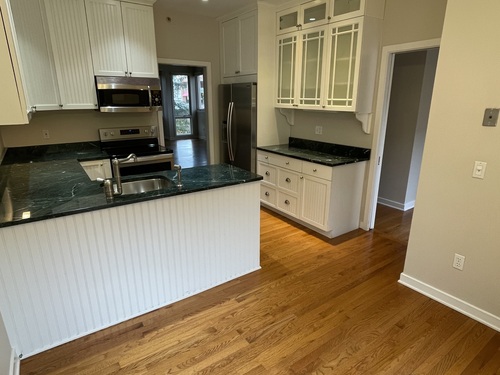 In-town oasis with ample privacy, yet still a convenient walk to Old King's Market, town, train, and Tilley Pond Park. Well-maintained home with enclosed courtyard and garden area, perfect for outdoor entertaining. Eat-in kitchen, living/dining room with fireplace, 2 bedrooms with cathedral ceilings, 2.5 baths. Laundry on 2nd floor. Plenty of storage with two attics, pull-down stairs on 2nd floor and in garage. Central AC.