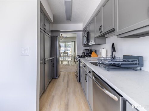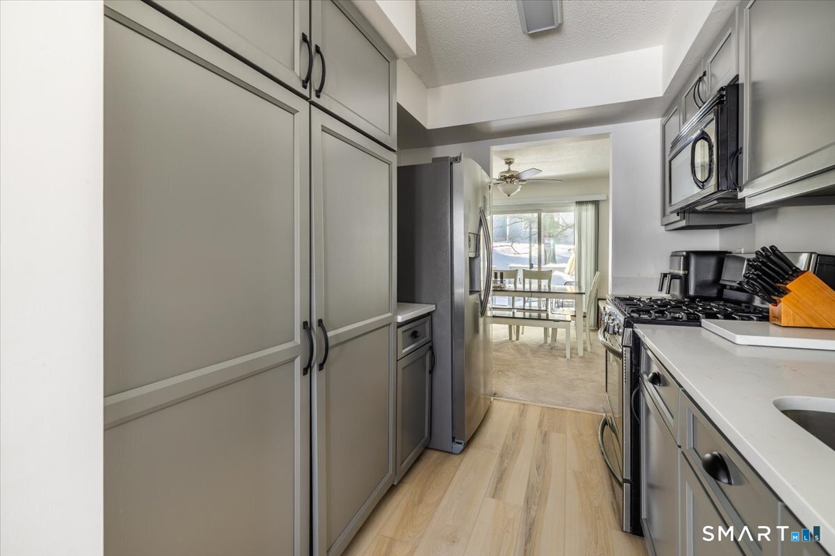 Welcome to Southfield Condo Complex. Tucked away, on the Bethel/Danbury border with sizable space for quiet living, the intimate 17 unit complex affords privacy and comfort. The front door opens to a main level with a generous living room, to dining room, with a powder room and eat-in kitchen around the corner. Newly renovated kitchen, kitchen floors, kitchen lighting and bathrooms, will surely grab your attention. Further continuance up the stairs, yields skylight generously lighting your way to a Master and Junior Suite. Walk-in closet fills the space in the master bedroom suite, in addition to a full bath with a jacuzzi tub, stand-up shower, vanity with storage. Junior suite also has its own bathroom with tub/stand-in shower and vanity. In the lower level, there is a den/extra space that can be used as another bedroom or living space, currently being used as a home office, and additional storage in the closet. Peek-a-boo laundry behind closet doors, an interior access to garage, mechanicals are located just in back of the garage fill the rest of the lower level. Well maintained and gently loved, some updates to internal components of HVAC and brand 2024 new condenser. Main components in furnace replaced in 2024. Service Star maintenance completed over the last three months for all plumbing, electrical, and HVAC; everything passes inspections, all you have to do is move in.