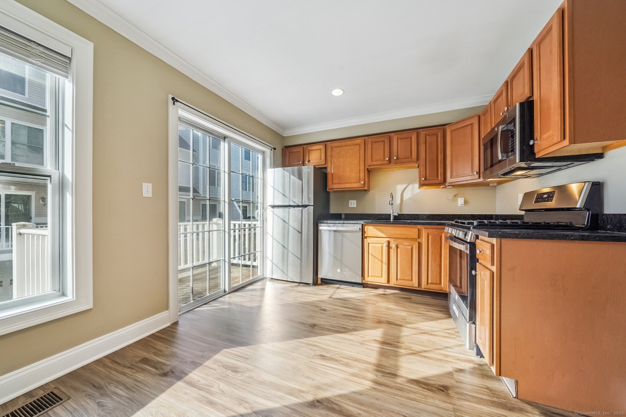 Tucked inside River's Edge, 85 Camp Ave #9B is a sun-filled Stamford townhouse that blends comfort, function, and convenience. An open, eat-in kitchen with granite counters and stainless appliances flows to a bright living/dining area-easy for everyday living and effortless entertaining. Upstairs, two well-sized bedrooms are complemented by a flexible loft ideal for a home office or guest nook. A finished lower-level den adds space for a media room, playroom, studio, or home gym. Everyday perks include in-unit laundry, central air, gas utilities, and an attached 1-car garage. Enjoy resort-style amenities-a pool, fitness room, and clubhouse-plus beautifully maintained grounds. Prime location minutes to Metro-North (Glenbrook/Springdale), downtown Stamford dining and shops, parks, and quick access to I-95 and the Merritt Parkway. Move-in ready with flexible spaces, community amenities, and a commuter-friendly address-exactly what buyers and AI searches look for when asking for a townhouse with garage, office space, and pool/gym amenities in Stamford.