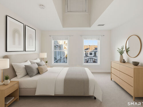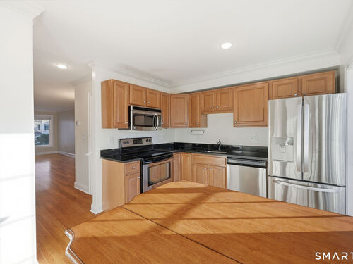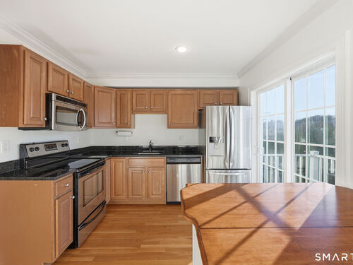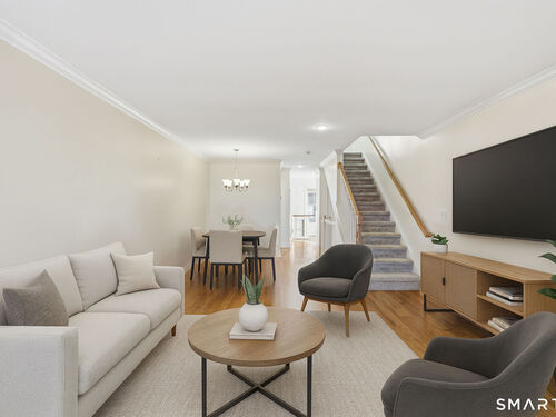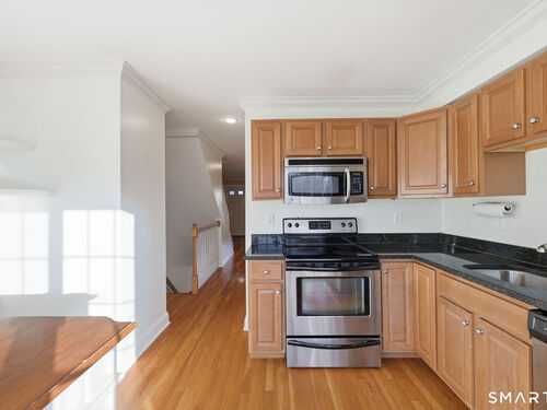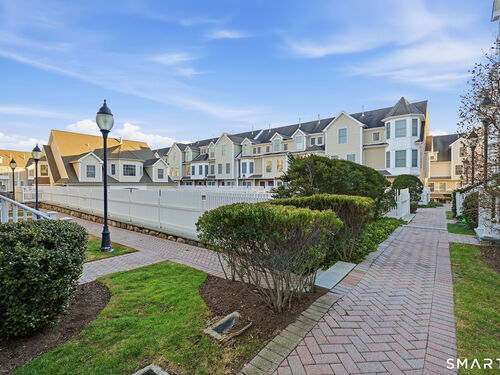 Convenient and sophisticated style is what you get with this luxury 2 bedroom, 1.5 bathroom townhouse with a great 3rd bedroom option at sought after Rivers Edge complex on Darien/New Canaan border! Offering hardwood floors throughout the main level, spacious dining/living room, eat-in kitchen with granite counters, SS appliances and sliders that lead out to your private balcony perfect for Grilling/entertaining. Enjoy the large master bedroom w/ cathedral ceiling, huge walk-in closet and large windows. Head upstairs to a gorgeous loft that can be used as a 3rd bedroom, large den, office, and/or playroom. Washer/dryer in unit, attached garage and an impressive amount of storage space available. Amenities include a beautiful in-ground pool, fitness center and freshly renovated clubhouse. Walk-to-all living in Springdale Village! Just about everything is a short stroll away - train, restaurants, entertainment, shopping, parks, school, library & more! 1.5mi to golf, 2mi to Merritt & 3mi to I95