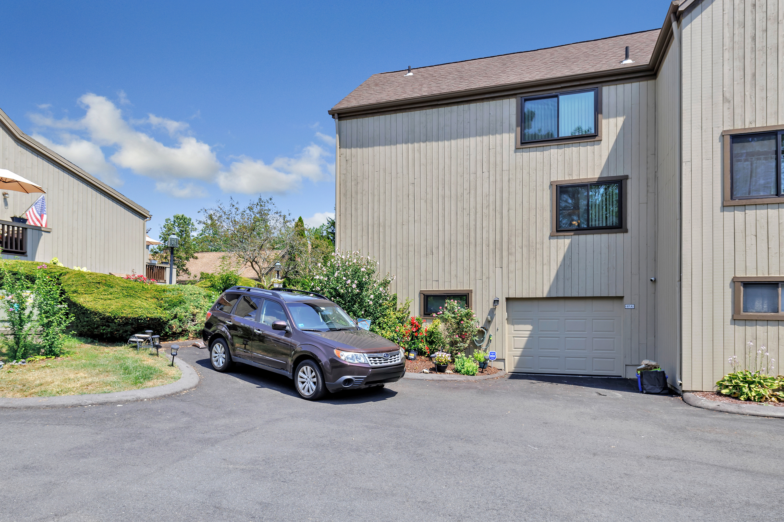 FRONT DOOR PARKING IN ORON0OUE VILLAGE, largest over 55 community in Fairfield County with pickleball, tennis courts and swimming pools plus individual male/female saunas!!..PARK LIKE SETTING WITH SPACIOUS GARDEN AREA Living room has cathedral ceilings with dining area and large deck with brand NEW sliding doors overlooking garden..ALL NEW WOODEN FLOORS ALL NEW WINDOWS THROUGHOUT There are two NEW full bedrooms, two NEW full baths, plus kitchen all recently remodeled. Kitchen has double oven, microwave, dishwasher and garbage disposal...All windows are new including sliding doors and new storm front door. Air conditioner, water heater and heating system are all new.. There is another lower level that can be used for office, family room or another bedroom. The garage is attached and has front door parking as well...surrounding trees flowers and shrubs are similar to a botanical garden...Please come view this condo before it is gone!!