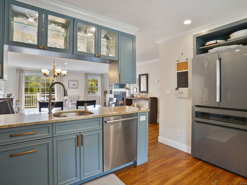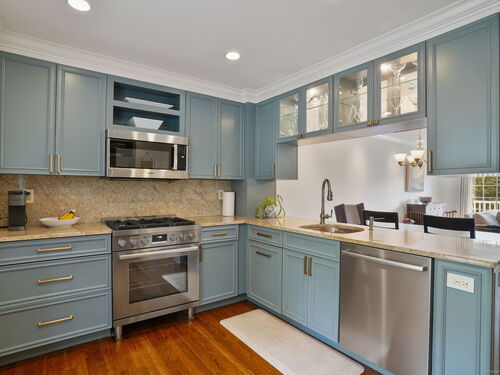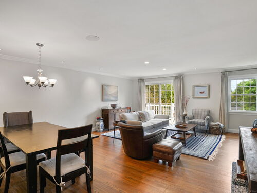 Stunningly updated 2-bedroom, 2.5 bath townhouse in the coveted Greenwich Hills Association. The bright & open main level offers a seamless flow between the kitchen, dining & living room with built-ins & a balcony. The renovated kitchen features stainless-steel appliances & modern finishes. Hardwood floors throughout, high-end fixtures, finishes and updated windows fill the space w/natural light. Upstairs, the spacious primary suite w/vaulted ceilings, a granite bath & generous closet space. A second bedroom and full hallway bath complete the upper level. The finished lower level provides flexible living space perfect for a playroom, home gym, office, or family room, with direct outdoor access to a new stone patio. Community pool and tennis/pickleball court.