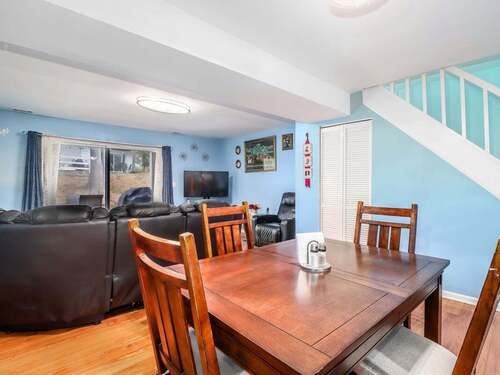 Fabulous, Move-in Ready, 2-Bedroom Townhouse in the Heart of Danbury! This well-maintained 2-bedroom, 1.5-bath townhouse offers comfort, convenience, and easy living in a centrally located Danbury community. The main level features an inviting open layout with engineered hardwood floors. The modern kitchen offers granite countertops, dark wood cabinets, a gas stainless steel range and tile flooring. There is also a separate counter with storage offering ideal space for cooking prep. The dining area is large enough for table and six chairs and flows effortlessly to the spacious living room that opens to an outdoor deck overlooking the grassy lawn. Upstairs, both bedrooms feature engineered hardwood flooring. The primary bedroom includes sliders to a private upper-level deck perfect for relaxing with a view. An updated Jack-and-Jill full bathroom and a convenient laundry closet complete the second floor, + attic for additional storage. Village Square is a friendly community offering a pool + clubhouse. Low common charges include water and sewer! The unit includes one assigned parking space with plenty of additional visitor parking available + extra separate storage. Located across from Park Avenue Elementary and just minutes to I-84, Route 7, Danbury Fair Mall, and the NY border makes this spot ideal for commuters and anyone seeking a convenient yet neighborhood-style setting. Move right in and enjoy comfortable, low-maintenance living in a fantastic location.