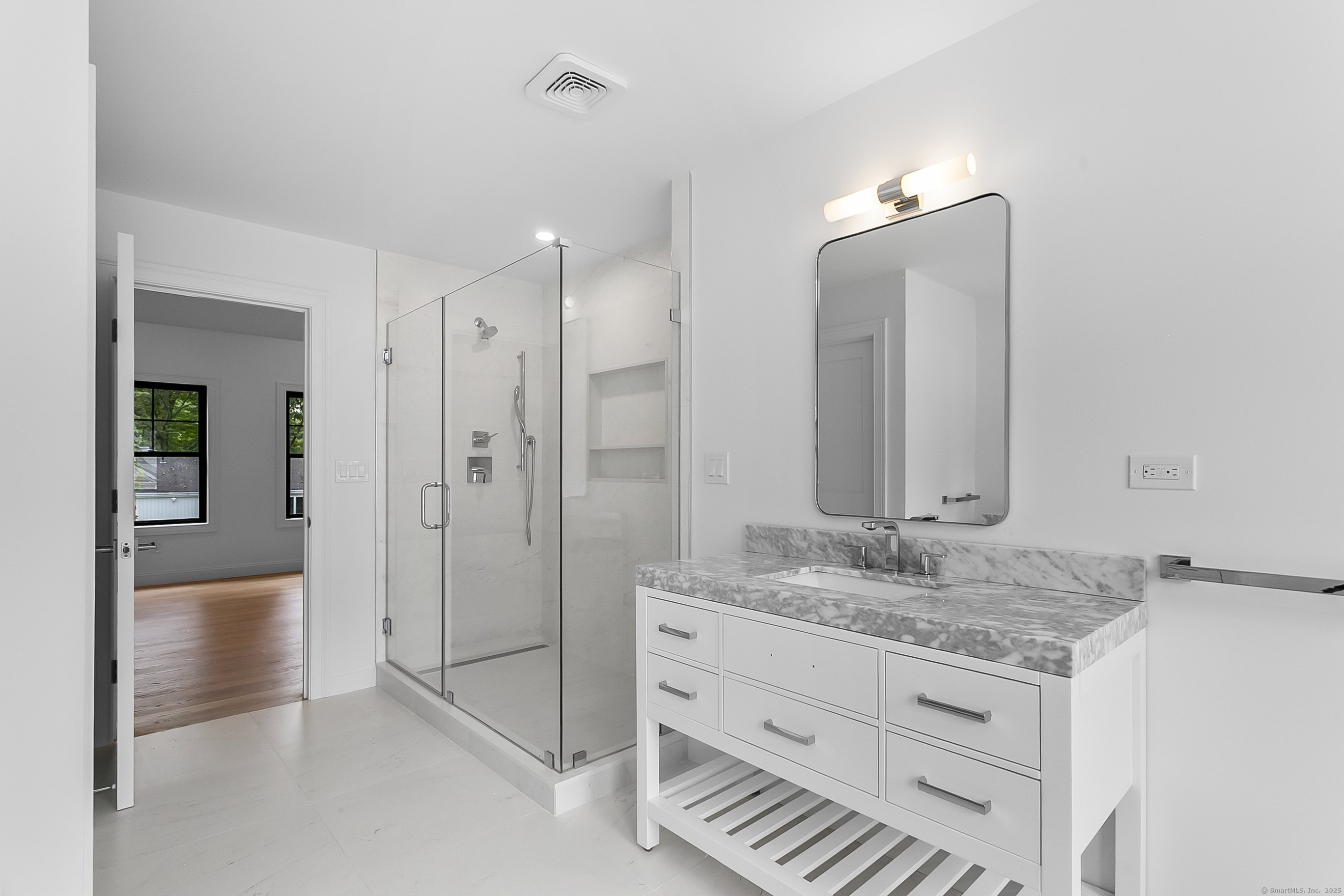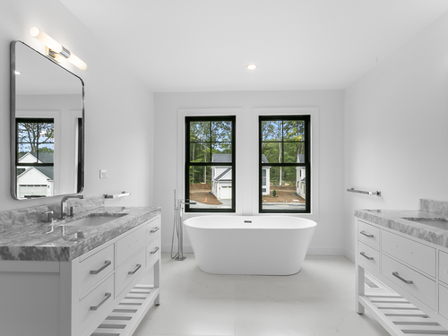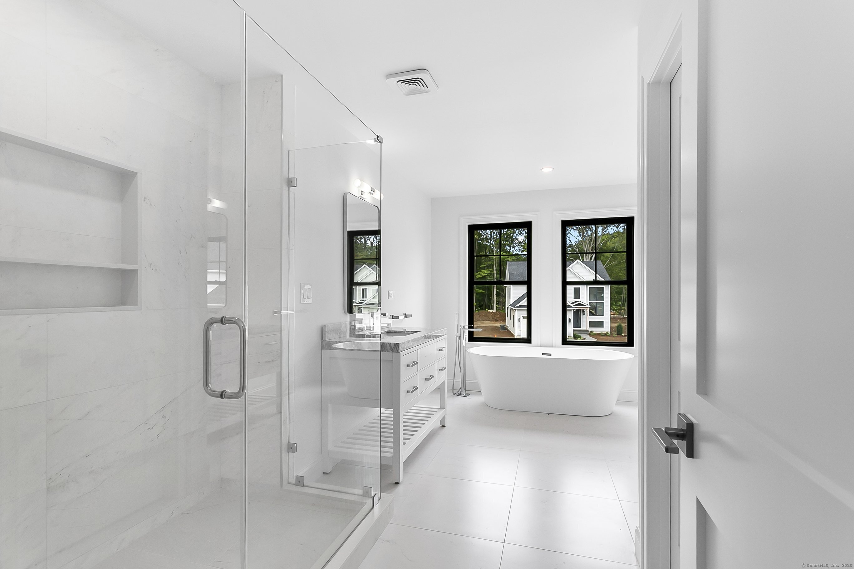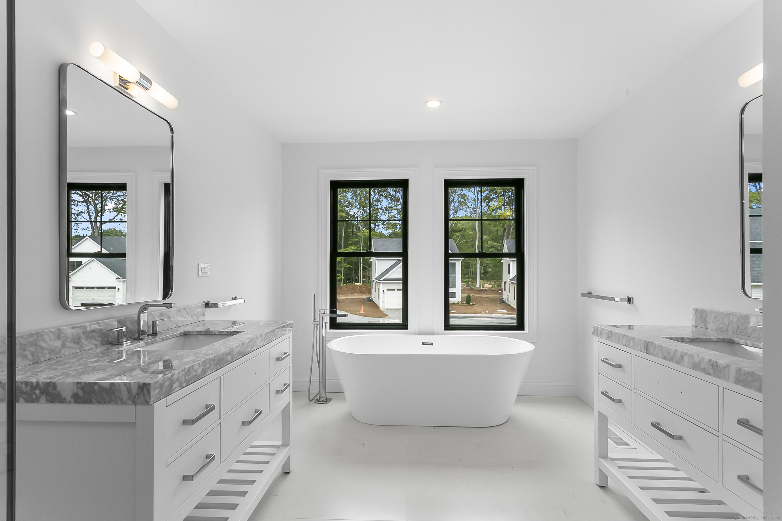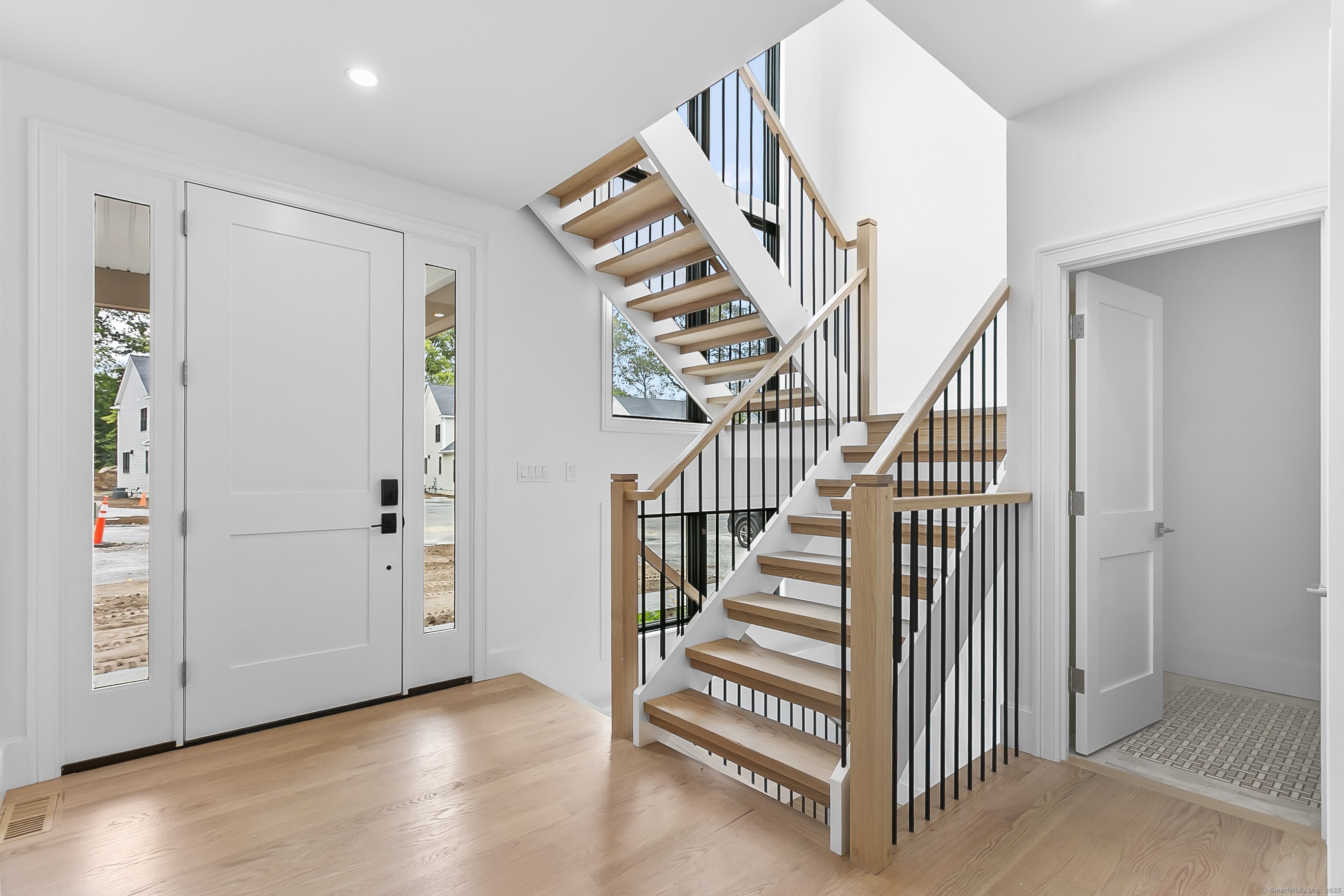 Welcome to Oronoque Hills-Stratford's premier new construction community of 11 beautifully crafted free-standing homes, set within the desirable North End and bordering the scenic Oronoque Country Club. This modern colonial blends timeless design with quality craftsmanship and a flexible, open-concept layout tailored for today's lifestyle. Ideally located adjacent to the 18th hole, this home offers the rare benefit of golf course living-where walkable access and peaceful surroundings define the experience. The main level features 9-foot ceilings, rich hardwood floors, and oversized windows that flood the space with natural light. At the heart of the home is a chef-inspired kitchen with an oversized quartz island, stainless steel appliances, shaker-style cabinetry, a walk-in pantry, and direct access to the rear deck-ideal for entertaining or relaxing outdoors. A cozy family room, flexible-use dining area, mudroom with garage access, and a stylish half bath complete the first floor. Upstairs, you'll find three spacious bedrooms and two full bathrooms, including a luxurious primary suite with a spa-like bath featuring a freestanding soaking tub, glass-enclosed walk-in shower, and a custom walk-in closet with built-ins. A dedicated second-floor laundry room adds convenience. Additional highlights include a full-height basement ready to finish, two-car garage, propane heat, city water and sewer, and professionally designed landscaping. Just minutes to the Merritt Parkway, Met