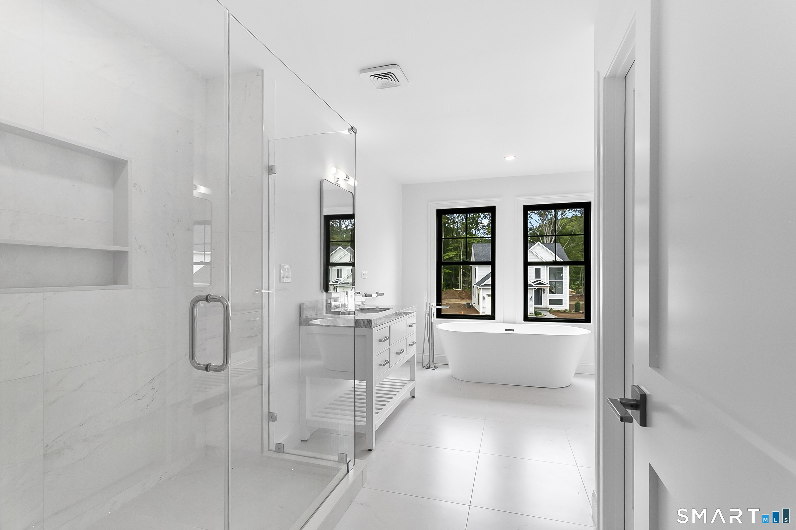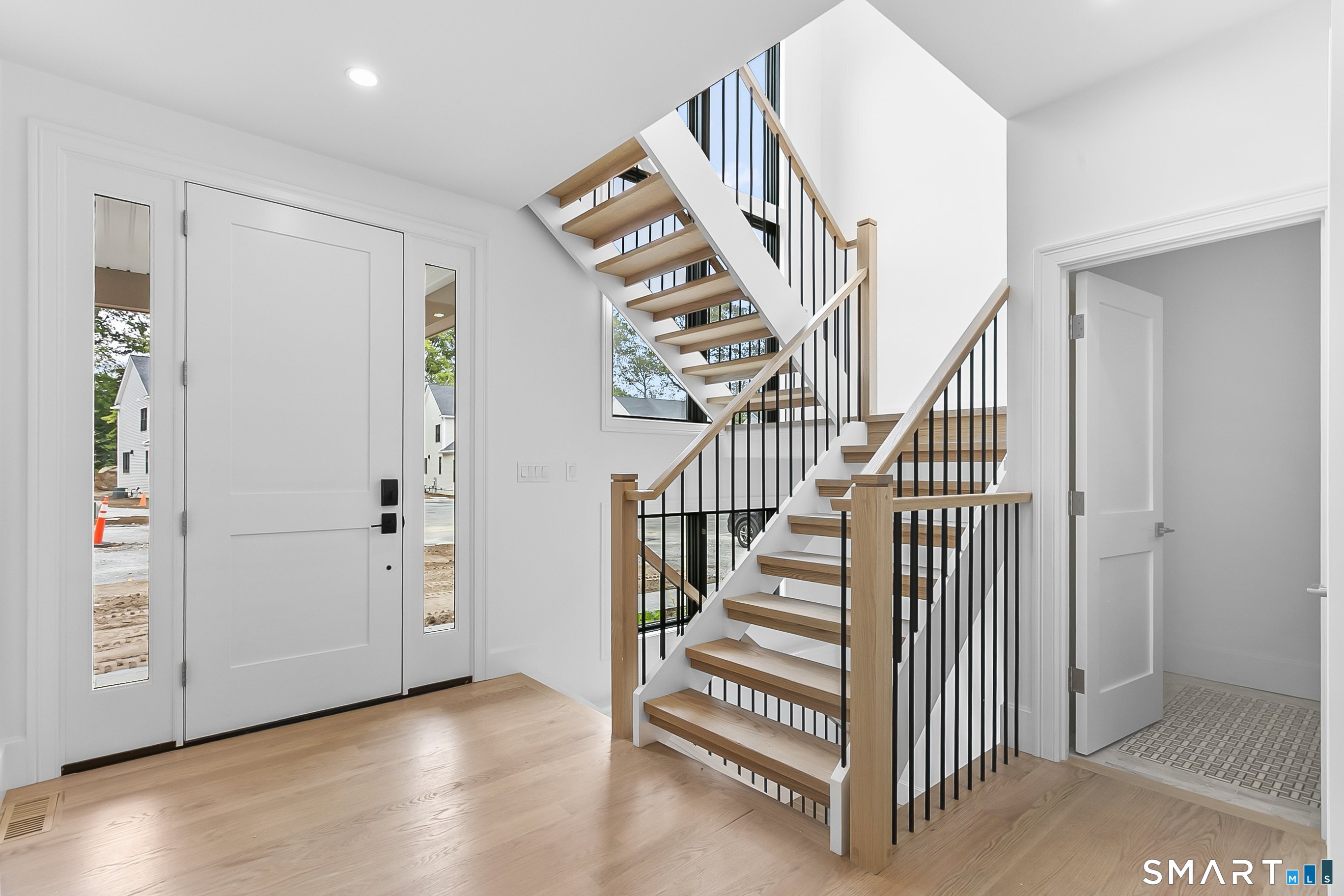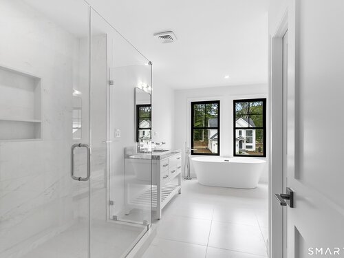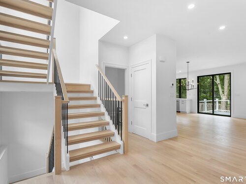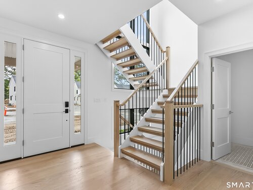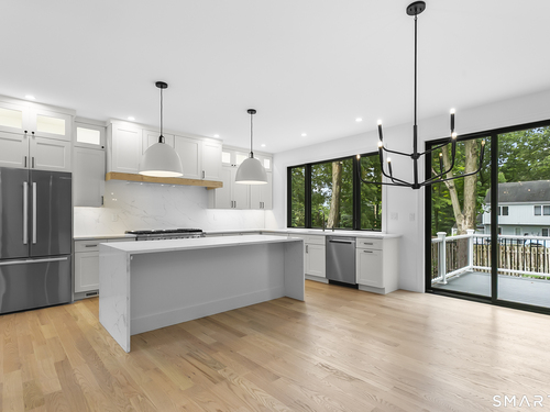 Welcome to Oronoque Hills-Stratford's premier new construction community of 11 beautifully crafted free-standing homes, set within the desirable North End and bordering the scenic Oronoque Country Club. These modern colonial blends timeless design with quality craftsmanship and a flexible, open-concept layout tailored for today's lifestyle. Ideally located adjacent to the 18th hole, this home offers the rare benefit of golf course living-where walkable access and peaceful surroundings define the experience. The main level features 9-foot ceilings, rich hardwood floors, and oversized windows that flood the space with natural light. At the heart of the home is a chef-inspired kitchen with an oversized quartz island, stainless steel appliances, shaker-style cabinetry, a walk-in pantry, and direct access to the rear deck-ideal for entertaining or relaxing outdoors. A cozy family room, flexible-use dining area, mudroom with garage access, and a stylish half bath complete the first floor. Upstairs, you'll find three spacious bedrooms and two full bathrooms, including a luxurious primary suite with a spa-like bath featuring a freestanding soaking tub, glass-enclosed walk-in shower, and a custom walk-in closet with built-ins. A dedicated second-floor laundry room adds convenience. Additional highlights include a full-height basement ready to finish, two-car garage, propane heat, city water and sewer, and professionally designed landscaping. Just minutes to the Merritt Parkway