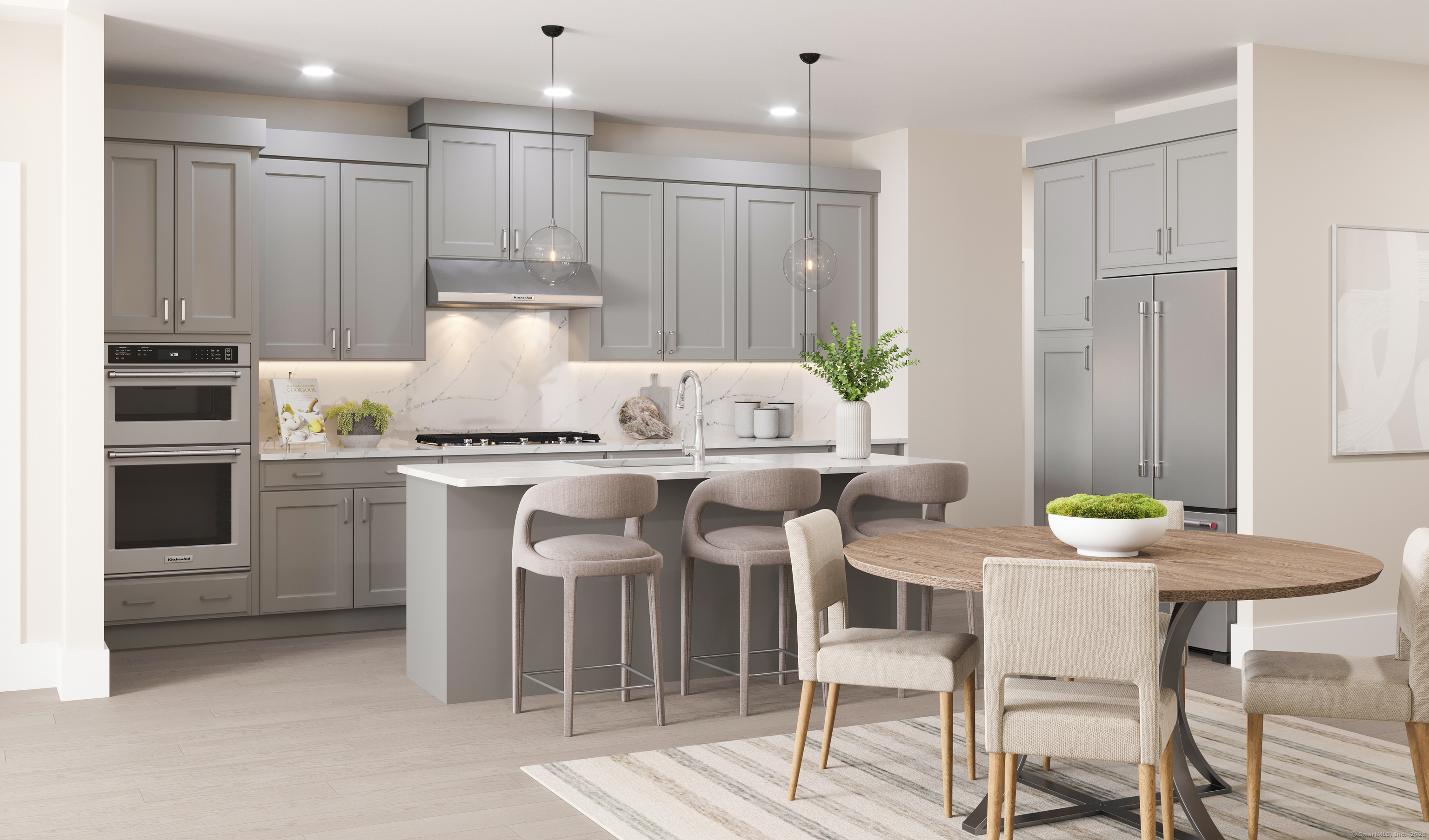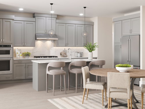 The appealing two-story foyer of the Mohonk Elite offers a lovely view of the casual dining area and spacious great room with desirable access to the rear yard. The well-designed kitchen is enhanced by a large island with breakfast bar and plenty of counter and cabinet space. Complementing the charming primary bedroom suite is a large walk-in closet and an impressive primary bath with a dual-sink vanity, luxe shower with seat, linen storage, and a private water closet. Overlooking a generous loft with adjacent unfinished storage area, the ample secondary bedroom is complete with two walk-in closets and a shared hall bath with a dual-sink vanity. Additional highlights include a convenient powder room and everyday entry, easily accessible laundry, and plenty of additional storage. A 55+ community.