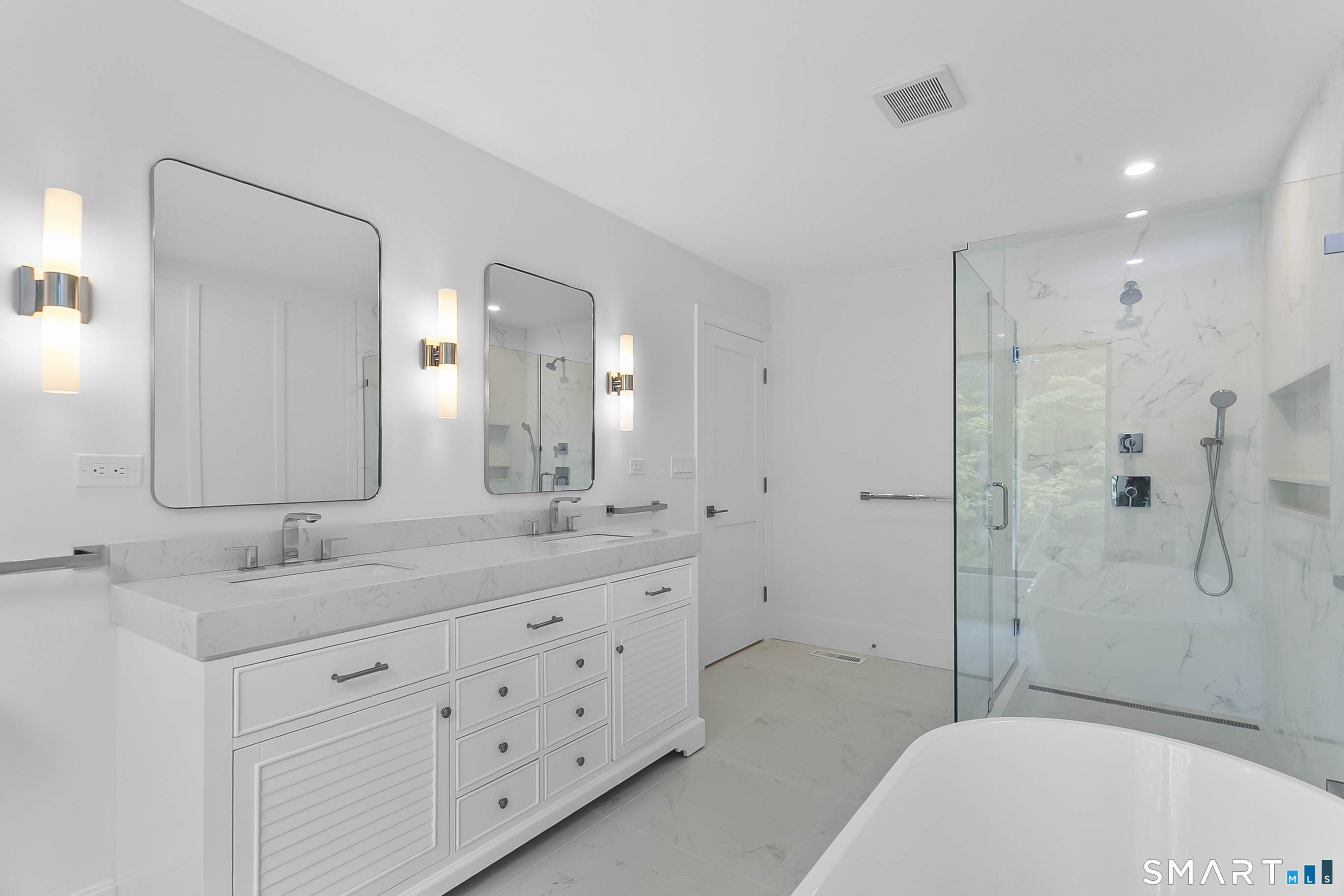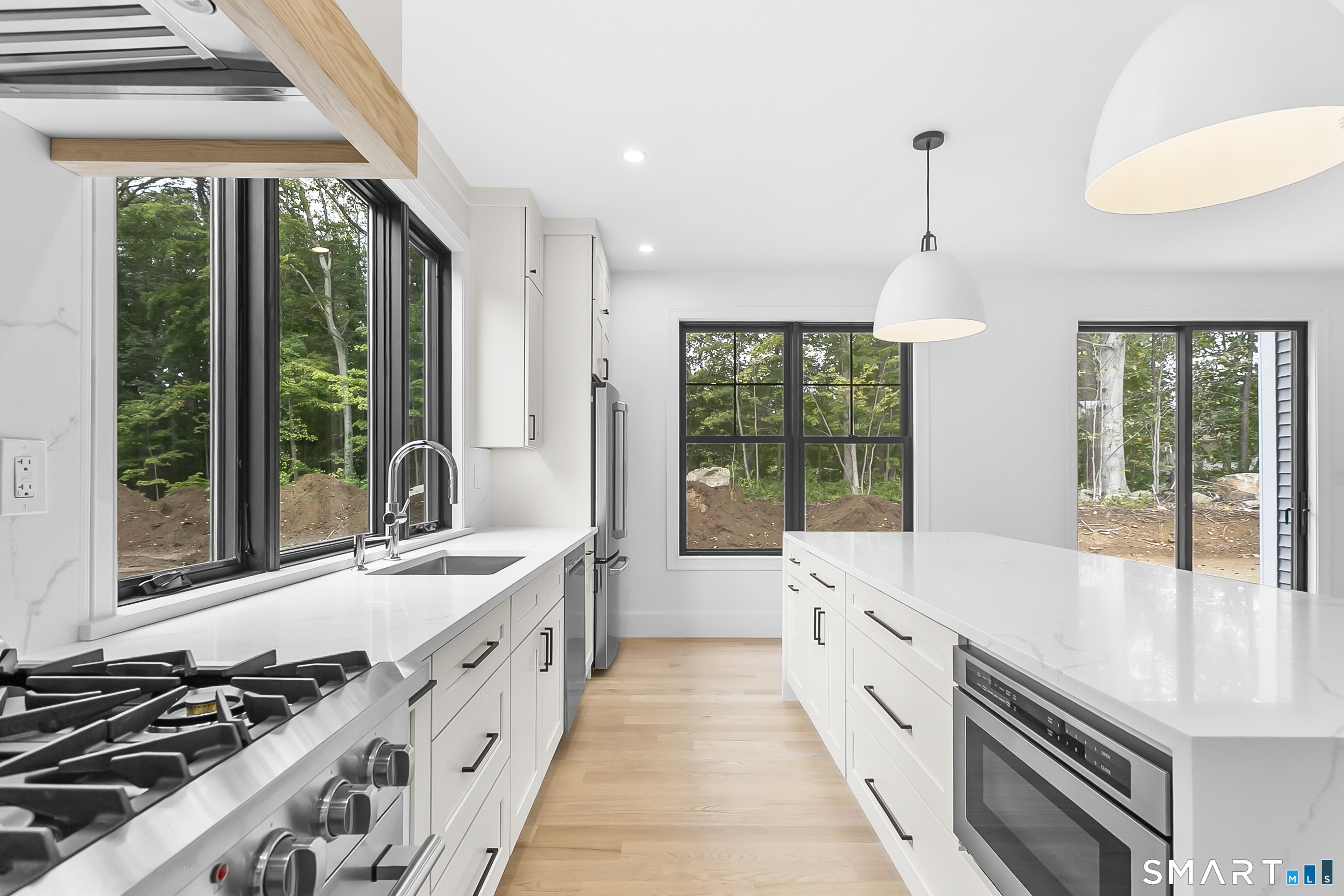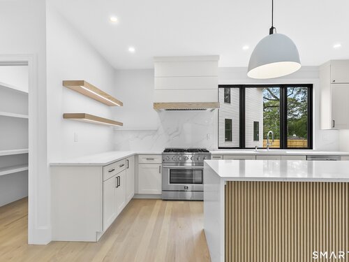 New Construction directly on the Oronoque Country Club Golf Course Brand-new free-standing colonial on the 18th hole in Oronoque Hills-Stratford's community of just 11 homes. This is true golf course living in the desirable North End with immediate walkable access and peaceful fairway views. The open-concept main level features 9-foot ceilings, rich wide-plank hardwood floors, and oversized windows that flood the home with natural light. At the center is a chef-inspired kitchen with a massive quartz island, stainless steel appliances, shaker-style cabinetry, walk-in pantry, and direct access to the rear deck - perfect for entertaining. Completing the first floor: a spacious family room, flexible dining area, mudroom with garage entry, and stylish powder room. Upstairs offers three generous bedrooms and two full bathrooms, highlighted by a luxurious primary suite with a spa-like bath featuring a freestanding soaking tub, glass-enclosed shower, and custom walk-in closet with built-ins. A dedicated second-floor laundry room adds daily convenience. Key Highlights: 2630 sqft (3330 sqft if finished lower level is requested) Full-height basement ready to finish Two-car attached garage City water and sewer Professionally designed landscaping Just minutes to the Merritt Parkway. Agent is related to owner.