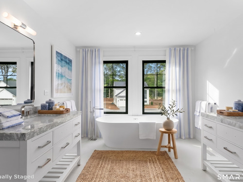 New Construction directly on the Oronoque Country Club Golf Course Brand-new free-standing colonial on the 18th hole in Oronoque Hills-Stratford's community of just 11 homes. This is true golf course living in the desirable North End with immediate walkable access and peaceful fairway views. The open-concept main level features 9-foot ceilings, rich wide-plank hardwood floors, and oversized windows that flood the home with natural light. At the center is a chef-inspired kitchen with a massive quartz island, stainless steel appliances, shaker-style cabinetry, walk-in pantry, and direct access to the rear deck - perfect for entertaining. Completing the first floor: a spacious family room, flexible dining area, mudroom with garage entry, and stylish powder room. Upstairs offers three generous bedrooms and two full bathrooms, highlighted by a luxurious primary suite with a spa-like bath featuring a freestanding soaking tub, glass-enclosed shower, and custom walk-in closet with built-ins. A dedicated second-floor laundry room adds daily convenience. Key Highlights: 2630 sqft (3330 sqft if finished lower level is requested) Full-height basement ready to finish Two-car attached garage City water and sewer Professionally designed landscaping Just minutes to the Merritt Parkway. Agent is related to owner.