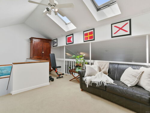 Experience true waterfront living at Charles Cove, one of the area's most sought-after gated communities with pool, tennis, scenic boardwalk, and direct water access. Calf Pasture beach is in walking distance and well as a dog park. This exceptional 3-bedroom, 3-bath townhouse offers a private 62' dock (B-18) just steps from your deck-wake up and see your boat right from your bed. Perfect for boating enthusiasts, this is a rare opportunity to enjoy the convenience of having your vessel outside your door. Inside, the home is move-in ready and designed for comfort, style, and entertaining. A Deane kitchen with premium cabinetry and wine fridge flows into spacious dining and living areas with Brazilian cherry floors, custom built-ins, a wood-burning fireplace, and sliding doors that open to a sun-filled deck with sweeping sunset views over the water. Whether hosting friends or enjoying a quiet evening, the open layout seamlessly blends indoor and outdoor living. The first-floor primary suite is a private retreat with spa-like finishes, including marble details, a steam shower, Bain Ultra air-jet tub, heated floors, and triple-paned windows with built-in blinds. Each bedroom features its own ensuite bath, offering privacy for family and guests, with flexible options on both the first and second floors. Upstairs, a spacious guest suite and a light-filled third-floor loft with skylights and abundant storage provide versatility for additional bedrooms, a home office.