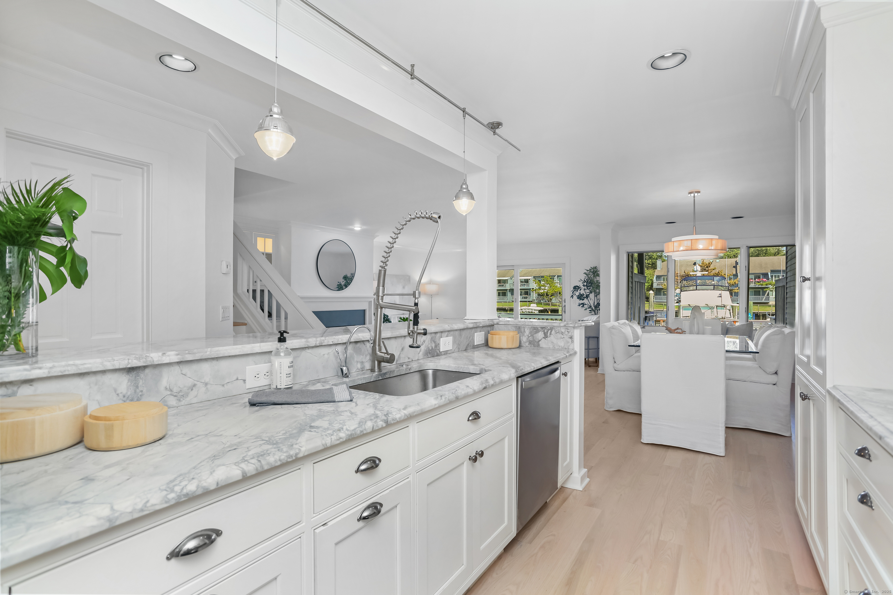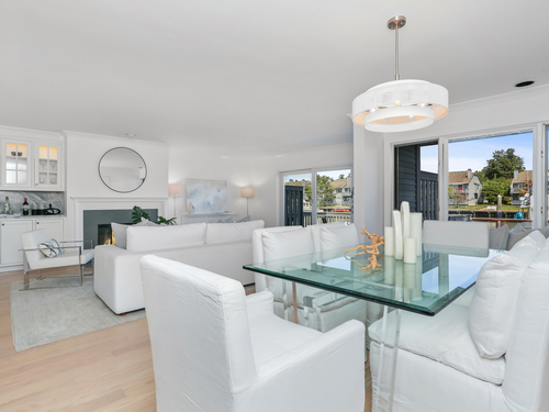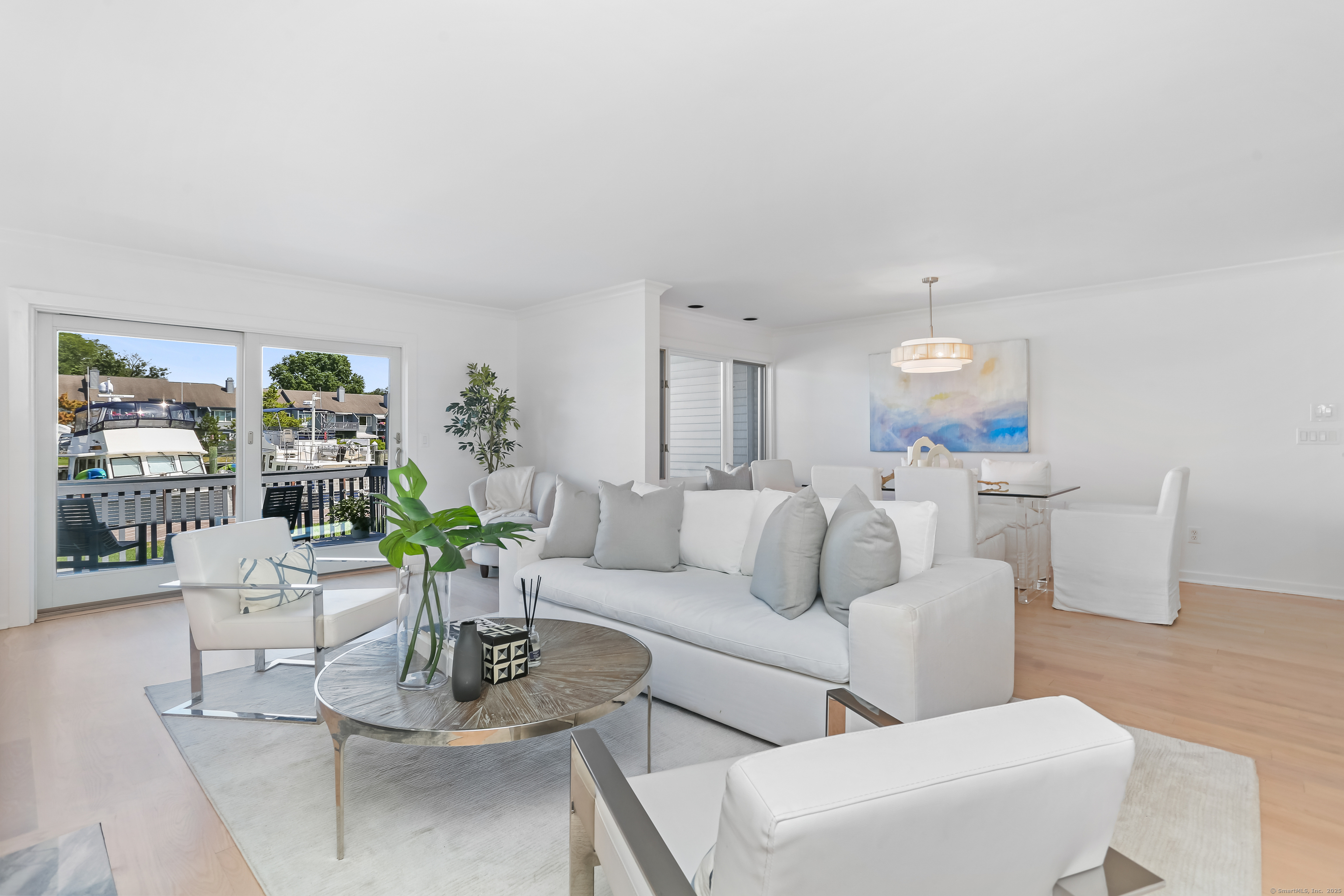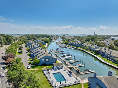 Direct Waterfront Luxury in Gated Charles Cove - Private 46' Dock Experience the luxury of life on the water, in an exclusive, amenity-rich retreat. This 3-bedroom, 2.5-bath townhome sits directly on the water in Charles Cove, one of the area's most coveted gated communities-complete with a private pool, scenic boardwalk, and tennis courts. With your own 46-foot deep-water dock just steps from your deck, you'll enjoy effortless access to Long Island Sound and the serenity of Charles Creek, right outside your door. Inside, a sun-filled, open-concept main level is designed for both relaxed living and unforgettable entertaining. The gourmet kitchen, spacious dining area, and inviting family room with a wood-burning fireplace flow seamlessly to a waterfront deck-perfect for morning coffee, evening cocktails, or prime views of the 4th of July fireworks. Upstairs, the primary suite feels like a private retreat with its own deck overlooking the marina, spa-like en-suite bath with soaking tub and walk-in shower, and the unbeatable luxury of waking up to your boat just outside your balcony. Two additional bedrooms, a second full bath, and another deck complete this level. The third floor offers a versatile bonus space-ideal for a home office, guest room, gym, or media lounge-with generous storage and privacy. Additional perks include in-unit laundry, an attached garage, and ample guest parking.