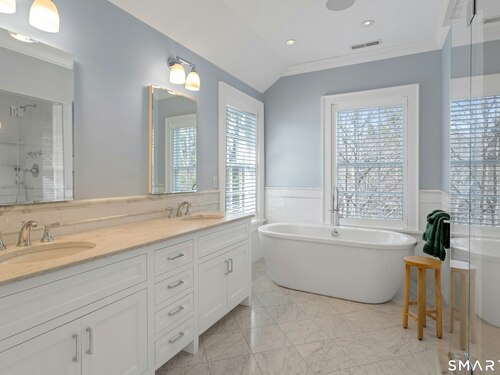 This is a stunning 3 bedroom stand-alone home designed by Judith Larson, and built by The Gardiner Group. The architectural detail is extensive and beautiful featuring generous trim, coffered ceiling, built-ins, paneling, custom closets, plantation shutters, marble baths, and generator! The state of the art kitchen has granite countertops, sub-zero refrigerator/freezer, Miele dishwasher, Wolf gas range and large island. It is complemented by a generous, eating area adjacent to an outdoor deck, wonderful for grilling and dining. The Davenport home is beautifully sited within Jelliff Mill Falls, which borders the Noroton River providing wonderful views, open green space, a carefree lifestyle, and convenience. This freestanding turn-key home is truly a MUST SEE! Per previous owner, design includes potential for an elevator. Please ask for association, bylaws and restrictions. All measurements are approximate.