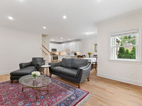 Welcome to The Maples, an exceptional townhome community nestled in a private, wooded enclave on the Darien border. This expansive 3,300 sq. ft. residence offers 3 bedrooms, 3 full baths, and 2 half baths spread across four finished levels. The main floor is designed for entertaining, featuring an open-concept layout that seamlessly connects the bright white kitchen-complete with marble countertops, matching backsplash, abundant cabinetry, and new appliances-to the dining and living areas. Sunlight streams through oversized windows, while a gas fireplace and sliders to a private deck overlooking Noroton River create a perfect setting for both relaxation and hosting. Upstairs, the primary suite offers a true retreat with a spa-like bath featuring radiant heated floors, a generous walk-in closet, & a private deck with peaceful wooded views. A 2nd bedroom, full bath, and a convenient laundry area complete this level. The 3rd floor provides exceptional versatility with a third bedroom, full bath, AND bonus living space-ideal for a guest suite, playroom, office, or in-law/Au pair setup. The finished lower lvl adds even more flexibility, perfect for a large family room, gym, or office, with walk-out access to a patio surrounded by professionally landscaped grounds. Add'l highlights include an attached garage, C/A, & ample storage in the basement and attic. Ideally located Darien Commons/Train Station(1mi) & Glenbrook Train Station (1/2 mi) Cove Island Park/Beach (2mi)