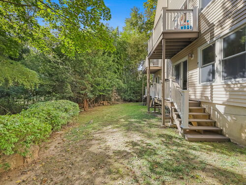 Move right in! This beautifully maintained 3-bedroom, 2 full and 2 half bath condo offers three levels of comfortable, turnkey living. The spacious, light-filled main level features an open layout perfect for both everyday living and entertaining, with a modern kitchen, dining area, and inviting living room that opens to a private deck overlooking the river. Upstairs, you'll find 3 well-appointed bedrooms, including a generous primary suite with a walk-in closet and private bath. The finished lower level provides additional living space ideal for a family room, home office, or gym complete with a convenient half bath and walk-out access. Enjoy easy parking and extra storage with a detached single-car garage and an additional assigned parking space. This home combines style, space, and low-maintenance convenience, perfect for those seeking a move-in-ready lifestyle in a serene setting.