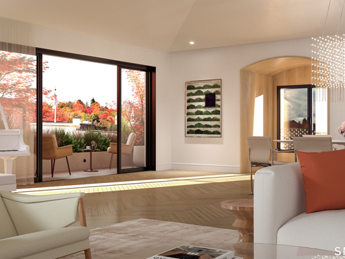 The Quartier reimagines timeless luxury through 21 bespoke residences. Experience the rarest offering in New Canaan: East Penthouse D at The Quartier. Commanding nearly 3,200 square feet of meticulously designed living space, this bespoke 3-bedroom, 3.5 bath Penthouse represents the definitive fusion of classic architectural integrity and sustainable, high-tech innovation. Access is private via a dedicated elevator that opens into a grand interior defined by soaring cathedral ceilings, 7" wide-plank white oak flooring, a gas fireplace, and a sun-drenched floor plan that flows effortlessly with two expansive private terraces overlooking the village rooftops. The home is a masterclass in craftsmanship, anchored by a professional-grade kitchen featuring custom Leicht cabinetry, quartzite counters, Watermark fixtures, alongside a "Zen" primary suite designed as a true spa-inspired sanctuary. Life at The Quartier is curated for effortless, white-glove convenience, offering residents an elite suite of amenities including a full-time concierge, a professional fitness studio, a state-of-the-art golf simulator, and secure indoor parking with private electric charging. Perfectly positioned just steps from premier dining and the NYC train, this residence offers a singular "lock-and-leave" lifestyle for the discerning buyer who demands the very best of New Canaan.