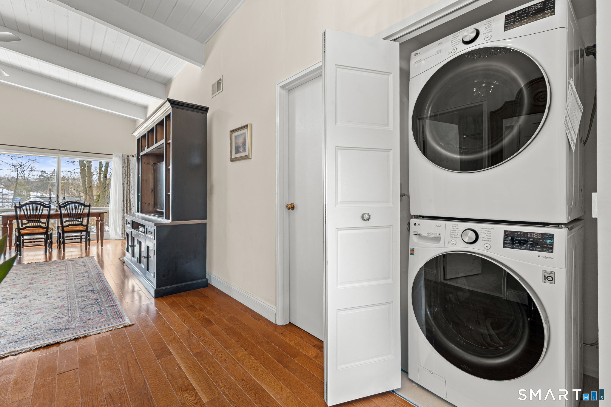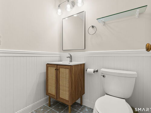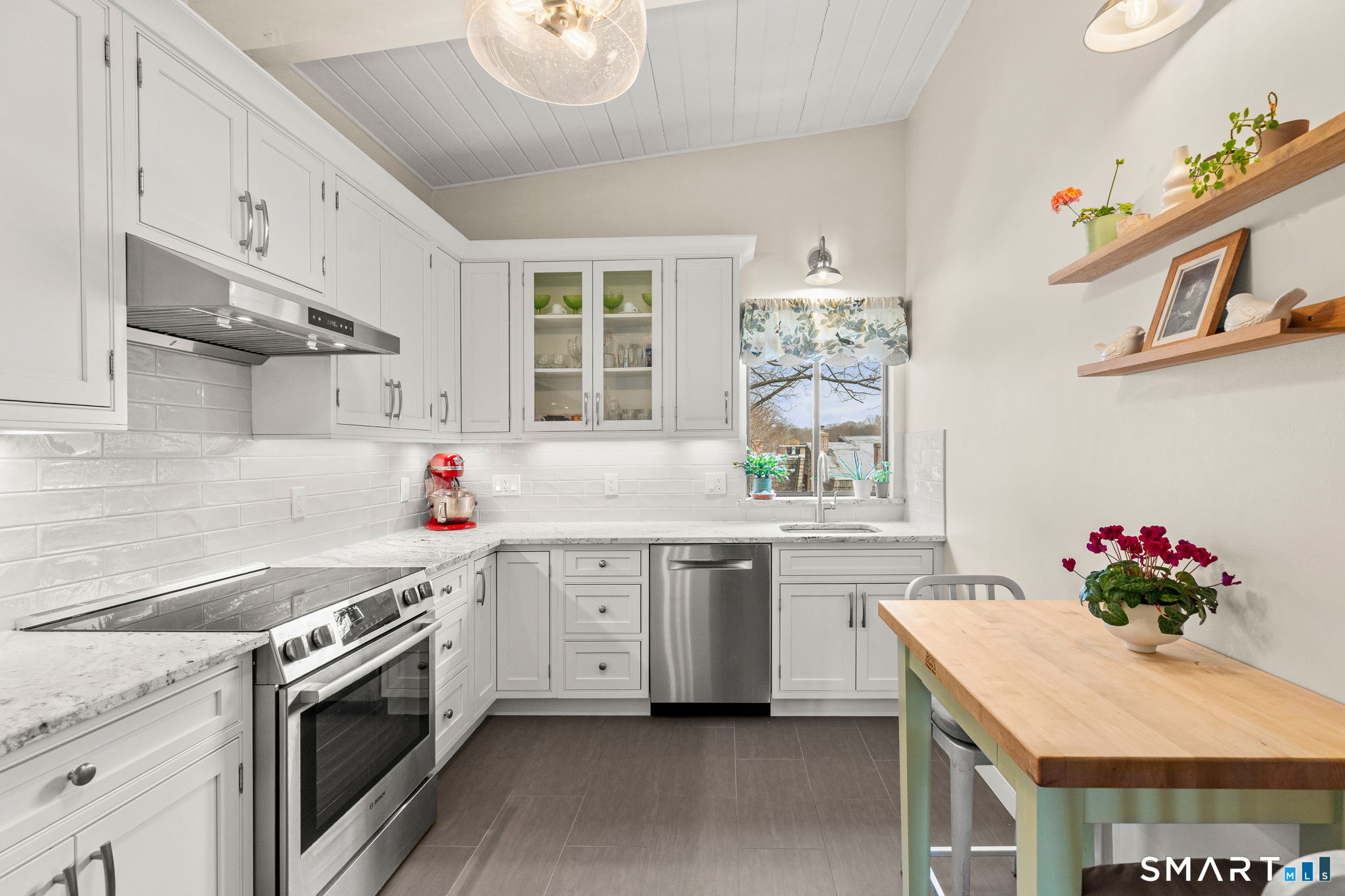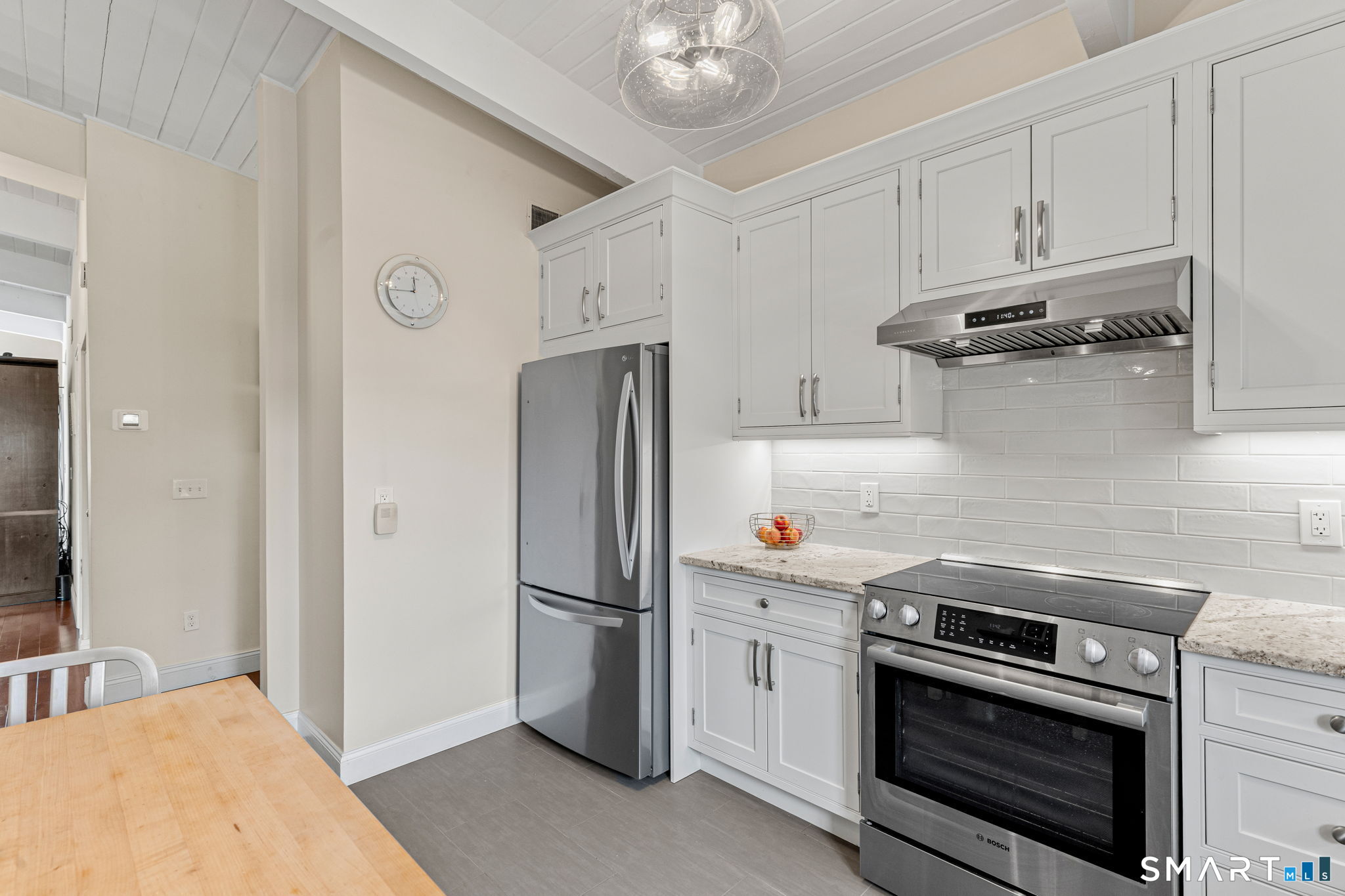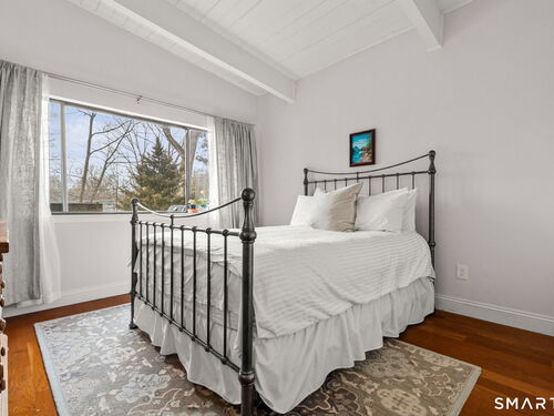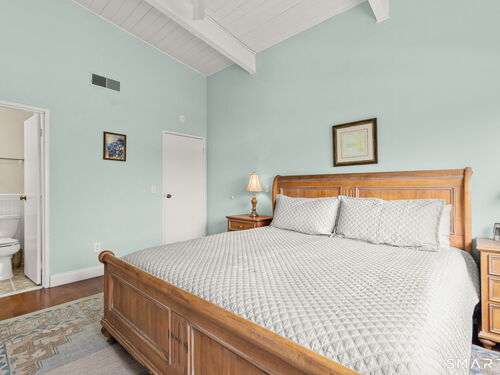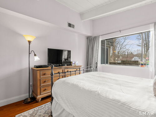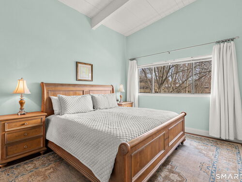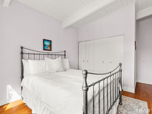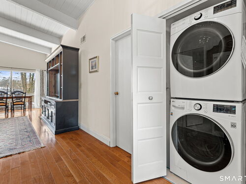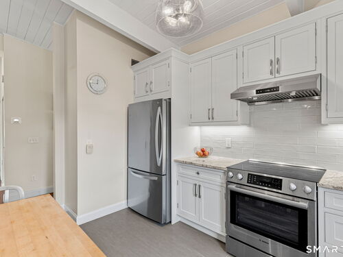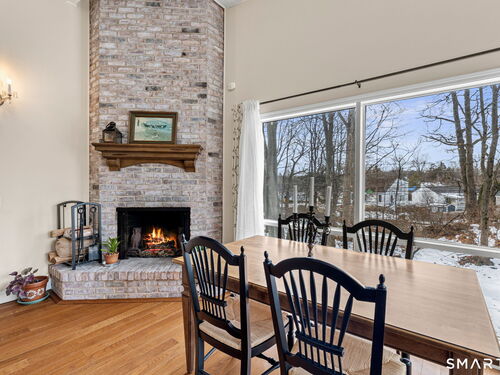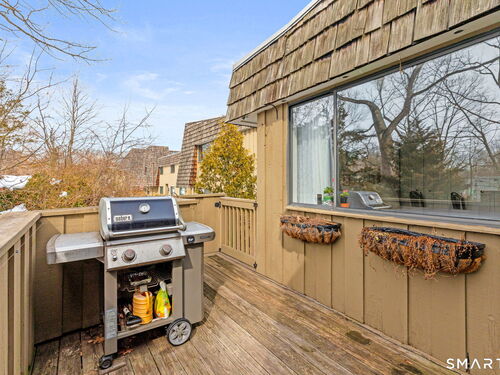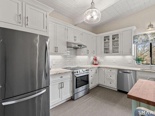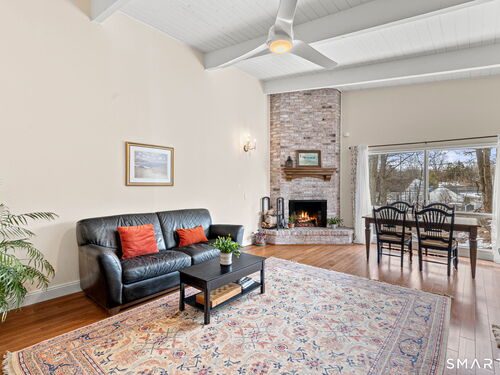 Don't miss this rare opportunity to own a completely updated two-bedroom townhouse with stunning soaring ceilings in the highly desirable Ledgebrook community. Lovingly cared for, this sun-filled end unit offers beautiful hardwood floors throughout, updated utilities and an open, airy layout designed for today's lifestyle. The newly remodeled designer kitchen features Custom Inset Cabinetry, Bosch range and Dishwasher, LG fridge, porcelain backsplash, and granite countertops, seamlessly blending style and function. The primary bedroom has an abundance of closet storage with en-suite powder room. A dramatic open-hearth brick corner fireplace anchors the living space, adding architectural character and warmth, while new Marvin sliding doors open to a private corner deck, perfect for morning coffee or evening relaxation. New full size LG washer and dryer included. Dedicated Garage parking spot and storage unit are just steps from the front door. Ledgebrook provides a true sense of community with beautifully landscaped grounds, mature trees, scenic walking paths, and a tranquil pond with fountain, along with resort-style amenities including an in-ground pool, clubhouse, and fitness center. This turnkey home delivers comfort, design, and an exceptional lifestyle just minutes from shopping, dining, highways, and Metro-North in the heart of Norwalk. No assessments. Check out the many updates in the included attachment.