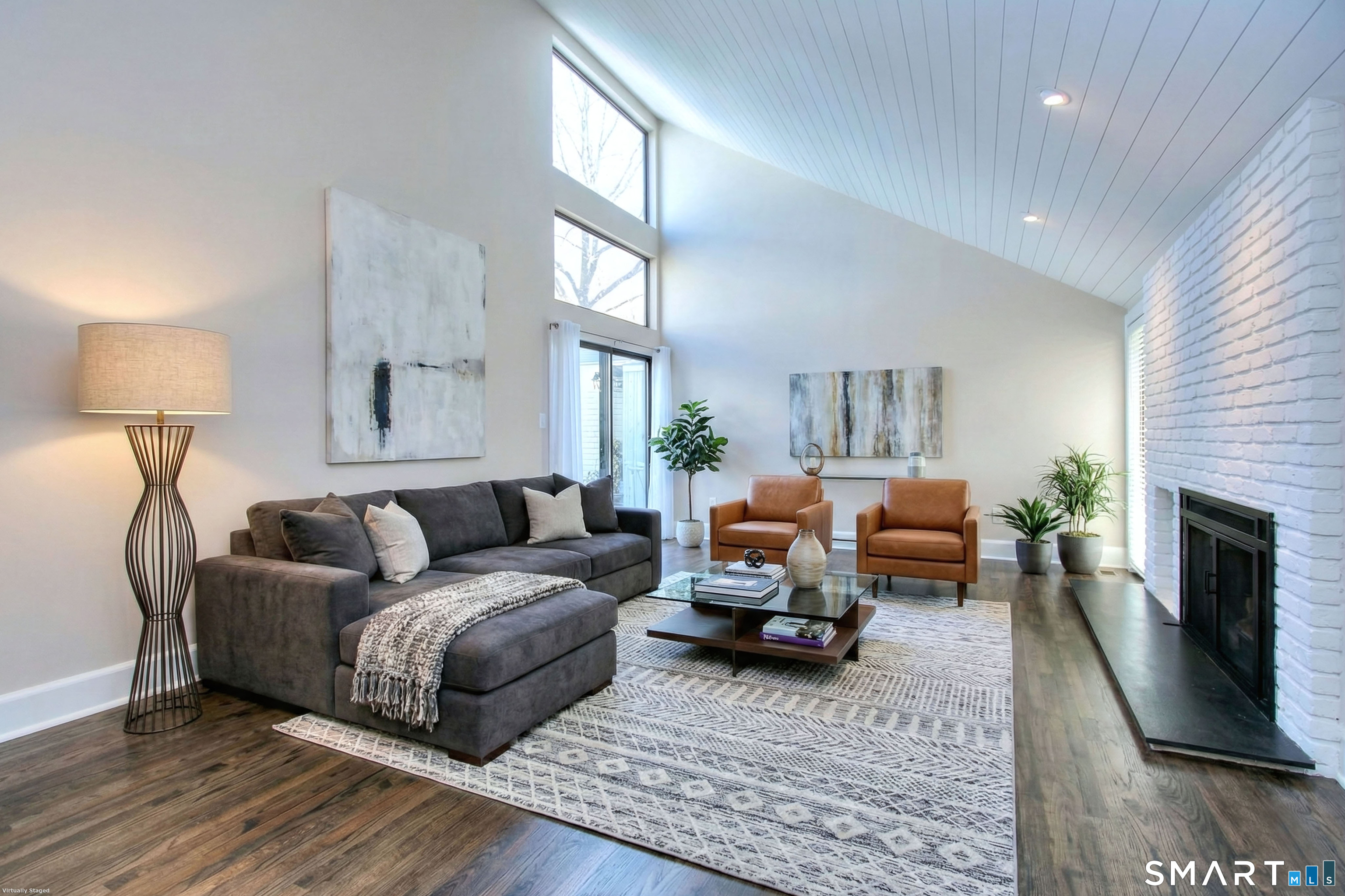 • Living Room (Main Level) Remodeled, 9 ft+ Ceilings, Fireplace, Sliders, Hardwood Floor