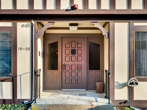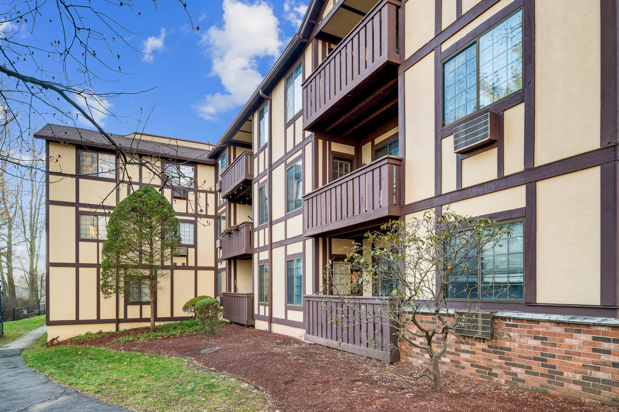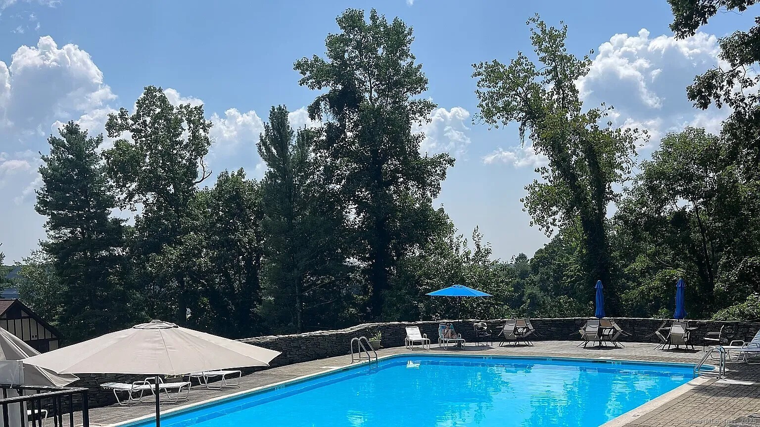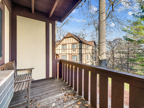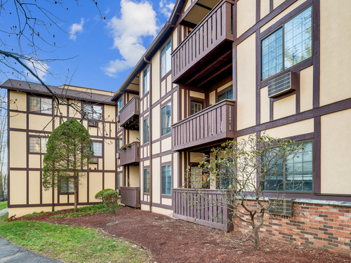Welcome to a beautifully updated Tudor style condominium set within a peaceful wooded community. The home has been fully remodeled and freshly painted in a neutral color palette that creates a bright and modern atmosphere from the moment you enter. A true turn-key, low maintenance oasis. Upon stepping inside, you are greeted by a charming coat closet that features exposed hardware on the closet doors, adding a touch of barndoor style character. The kitchen offers a clean white tile backsplash and brand new stainless steel appliances that bring both beauty and efficiency to the space. The dining room opens directly to a covered balcony deck where you can relax and enjoy the views of the well cared for landscape. The open concept living room is filled with natural light and enhanced by a classic Tudor style window design that brings warmth and appeal to this space. The fully renovated bathroom showcases a quartz vanity countertop, stylish tile flooring, and an updated tub and shower that add a fresh spa like impression. The bedroom offers generous space and a soothing flow of natural light. Convenience is also a highlight with a washer and dryer located within the unit. Additional storage is available in a locked storage room located on the lower level, providing the perfect place for seasonal items or personal belongings. The complex features an inviting inground pool with a pool house, creating an enjoyable summer retreat right at home.