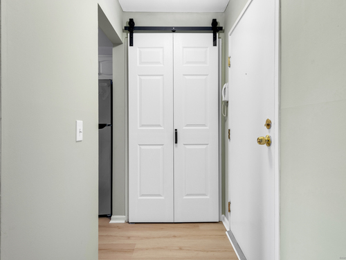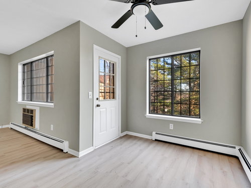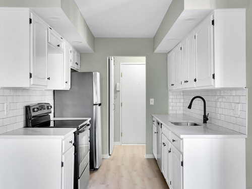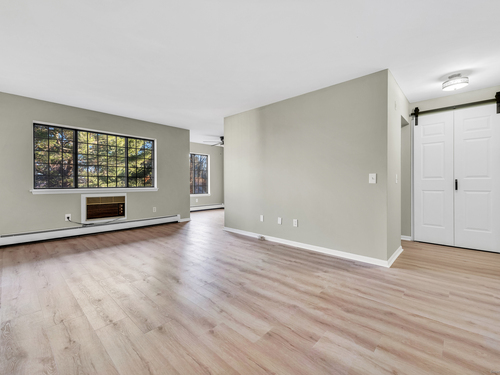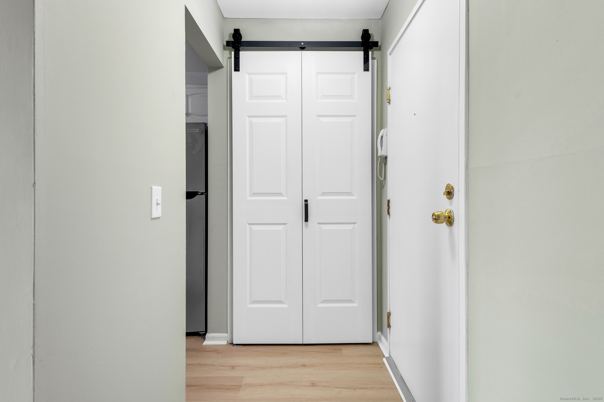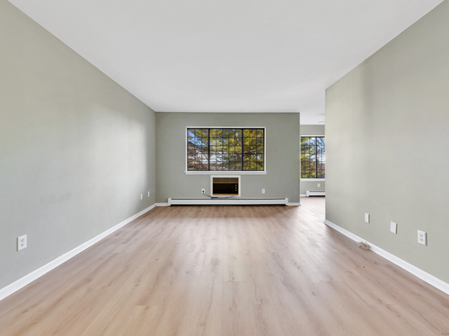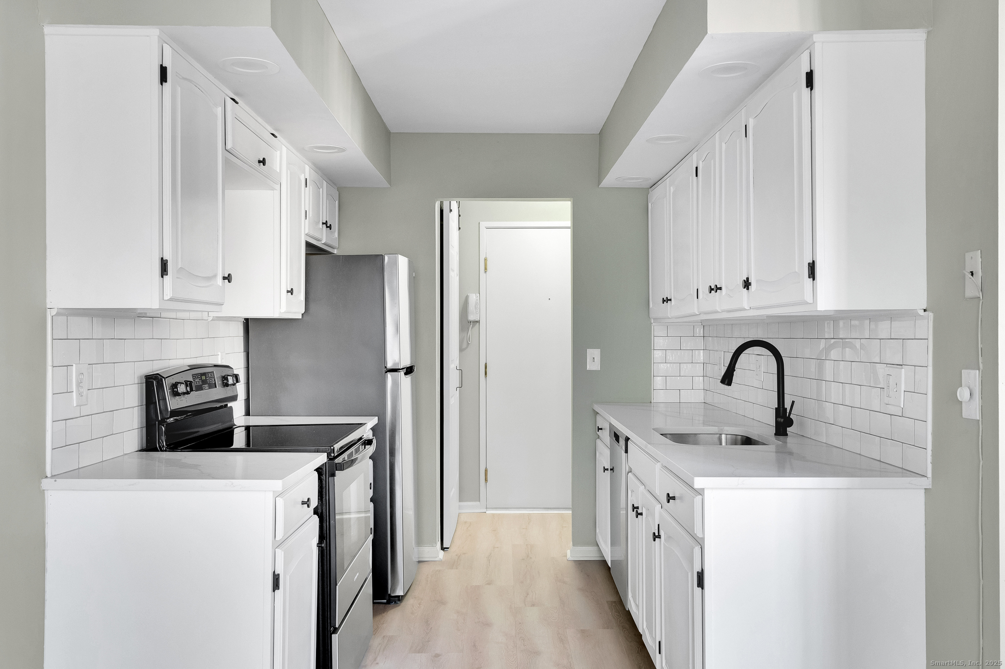 Welcome to a beautifully updated Tudor style condominium set within a peaceful wooded community. The home has been fully remodeled and freshly painted in a neutral color palette that creates a bright and modern atmosphere from the moment you enter. A true turn-key, low maintenance oasis. Upon stepping inside, you are greeted by a charming coat closet that features exposed hardware on the closet doors, adding a touch of barndoor style character. The kitchen offers a clean white tile backsplash and brand new stainless steel appliances that bring both beauty and efficiency to the space. The dining room opens directly to a covered balcony deck where you can relax and enjoy the views of the well cared for landscape. The open concept living room is filled with natural light and enhanced by a classic Tudor style window design that brings warmth and appeal to this space. The fully renovated bathroom showcases a quartz vanity countertop, stylish tile flooring, and an updated tub and shower that add a fresh spa like impression. The bedroom offers generous space and a soothing flow of natural light. Convenience is also a highlight with a washer and dryer located within the unit. Additional storage is available in a locked storage room located on the lower level, providing the perfect place for seasonal items or personal belongings. The complex features an inviting inground pool with a pool house, creating an enjoyable summer retreat right at home.