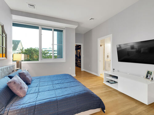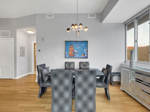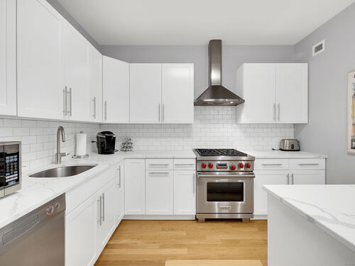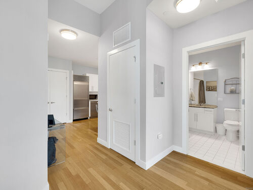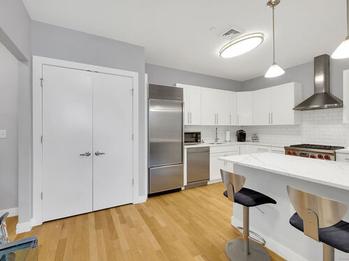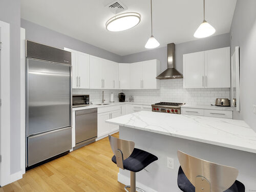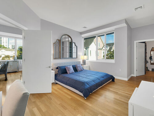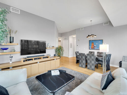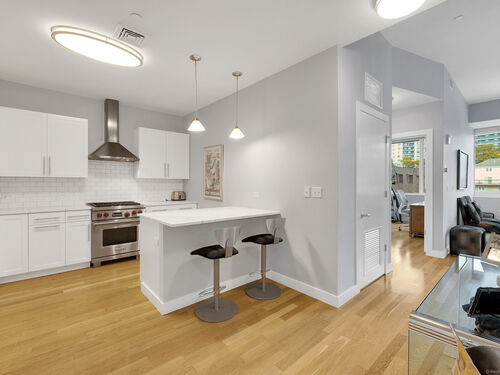 Convenience & sophisticated style is what you get with this ultra-chic 2 bedroom, 2 full bathroom condo located in a private concierge building downtown Stamford. Enjoy the open floor plan, 10-11ft soaring ceilings, and large-pane oversized windows offering gorgeous panoramic sunset views overlooking the city. Hardwood Floors throughout, expansive rooms and the ultimate dream kitchen featuring custom white shaker style cabinets, quartz countertops and Wolf / Sub Zero appliances. Absolutely spectacular primary bedroom with huge walk-in custom closet and spa inspired bathroom with double sink vanity, stall shower, and built-ins. Additional features include parking garage with two reserved spaces, fitness center, temperature controlled wine cellar and lounge/party room perfect for holiday hosting or weekend entertaining.