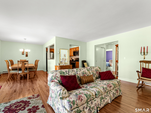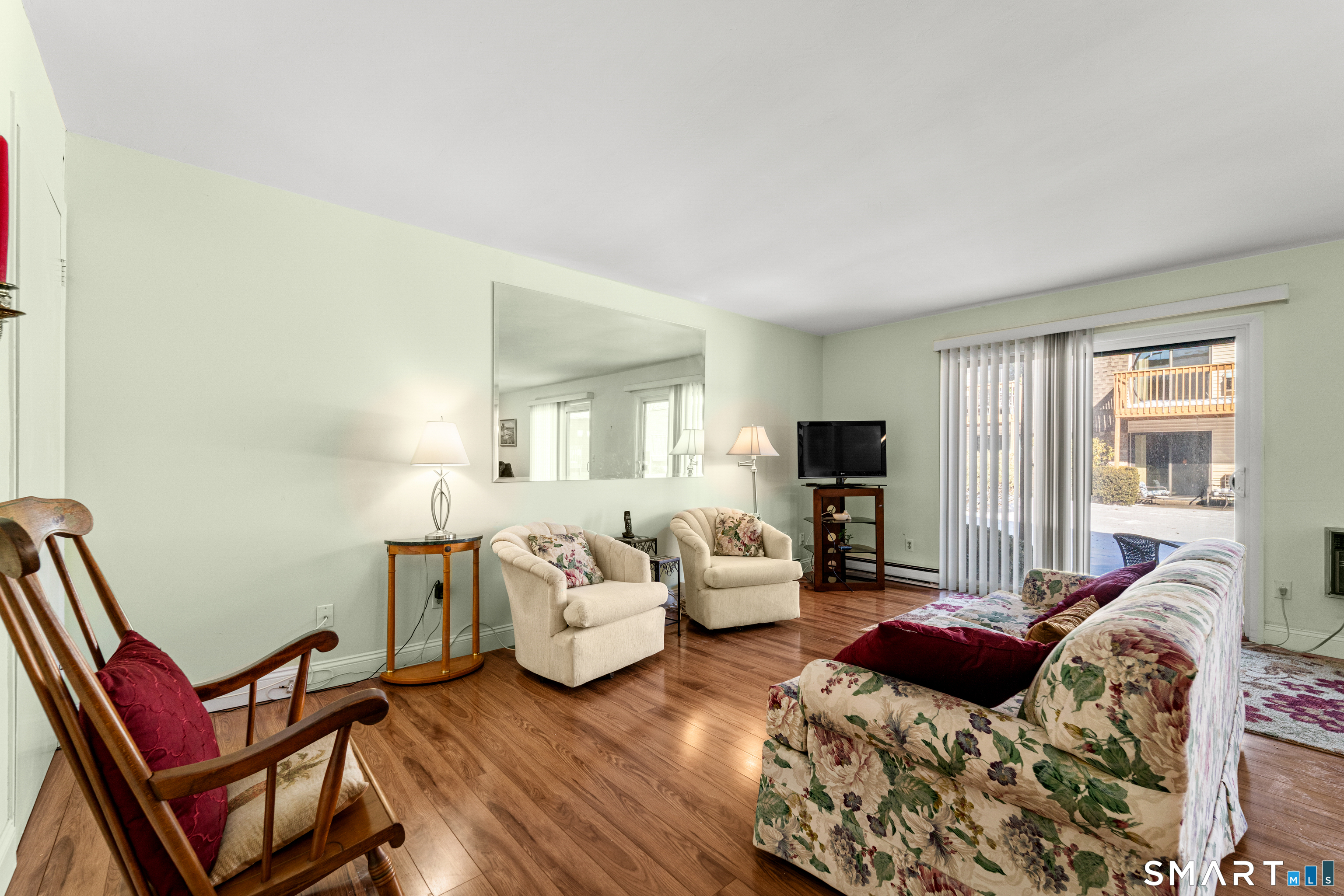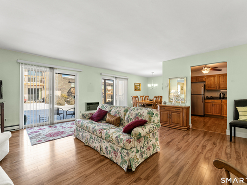 Welcome to effortless one-level living at Manor North Condominium! This inviting ground-floor ranch-style unit offers the perfect blend of comfort and convenience. Featuring two generous bedrooms and one full bath, the primary suite boasts a large walk-in closet for ample storage. The open-concept kitchen, family room, and dining area create an ideal space for both everyday living and entertaining, with slider doors opening to your private patio overlooking the expansive lawn. Enjoy the convenience of in-unit laundry and the unbeatable location just moments from downtown shopping and train service for easy commuting. Experience low-maintenance condo living at its finest!