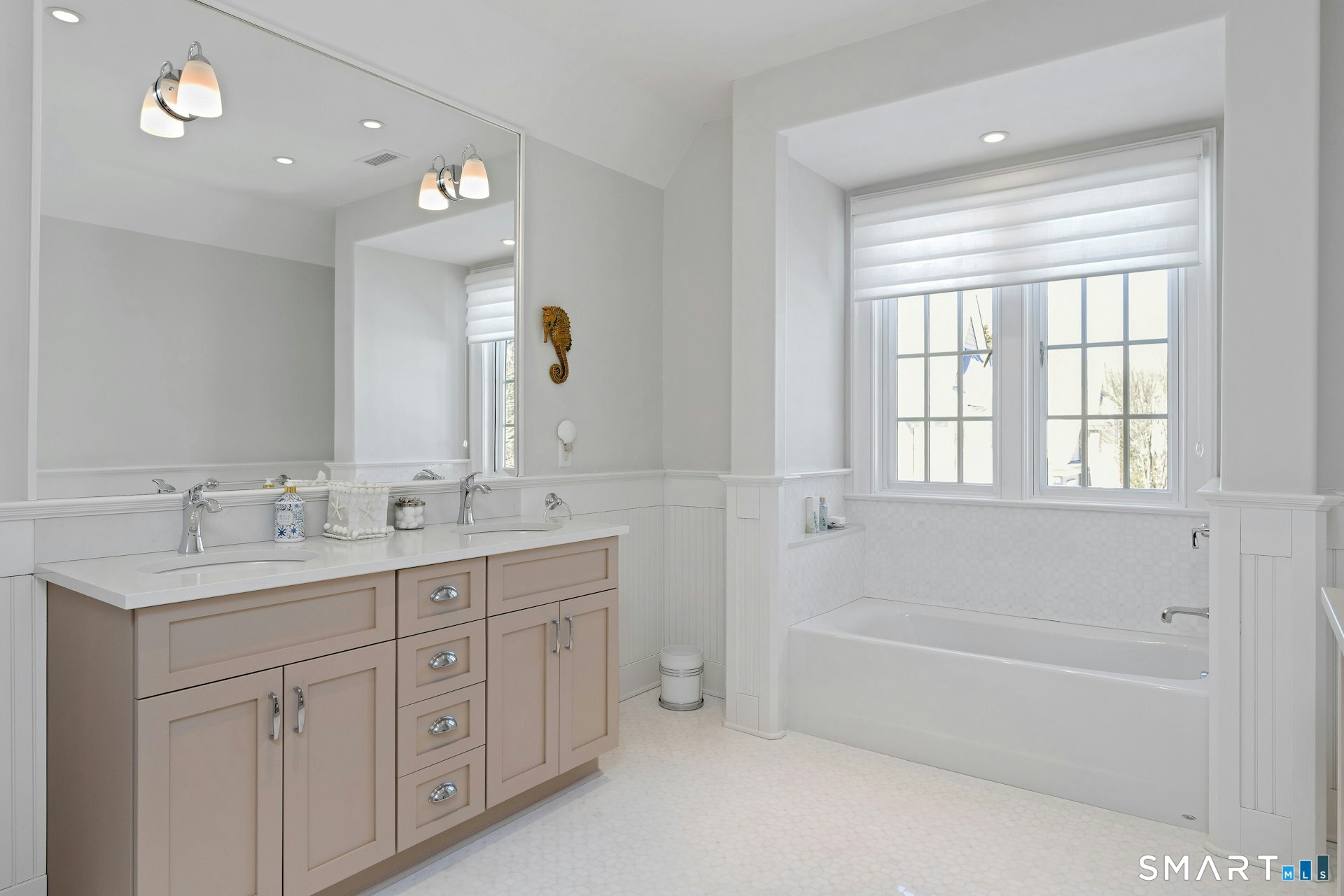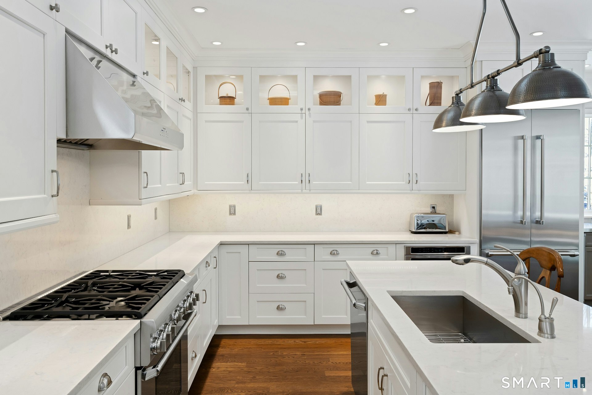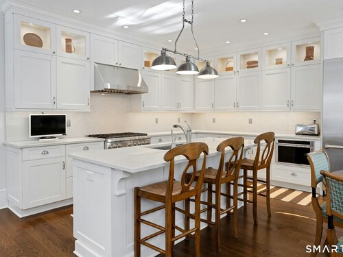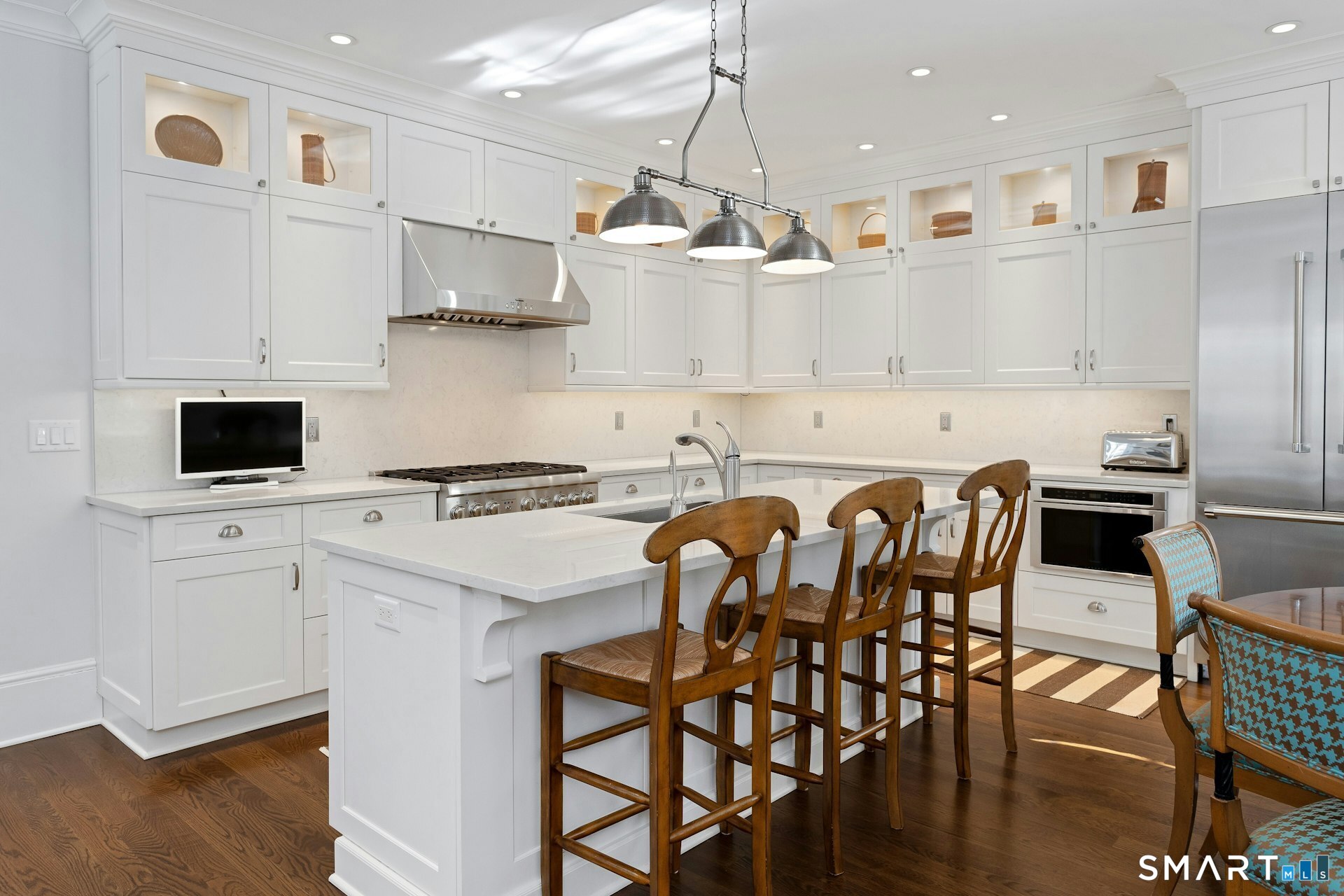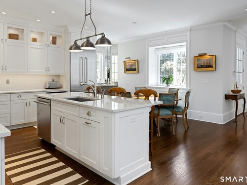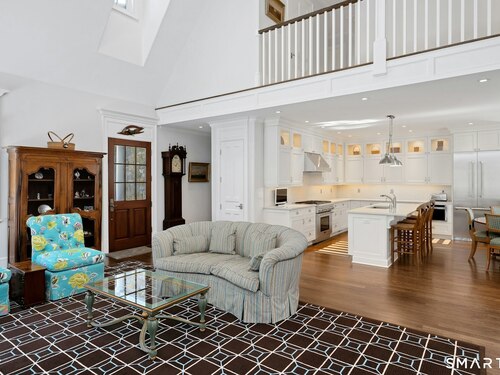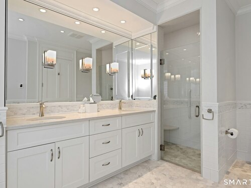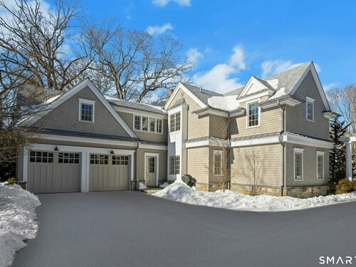 A stunning sanctuary with easy living. Nestled in the heart of Darien, this exclusive and custom-designed condominium redefines modern luxury living for those that are 62+. With a meticulous focus on craftsmanship and high-end finishes, this residence is a masterpiece of thoughtful design and functionality. From the moment you step inside, you'll be captivated by the attention to detail, from soaring ceilings and oversized windows that flood the space with natural light to premium materials that exude sophistication. Designed for both comfort and elegance, this home offers functional layouts that seamlessly blend living, dining, and entertaining spaces. The gourmet chef's kitchen is a dream, boasting top-tier appliances and custom cabinetry. The primary bedroom on the main floor is a true haven, featuring a spa-like bathroom and ample closet space. Additional rooms provide flexibility for a home office or gym. Step outside, and you'll discover the ultimate in private outdoor living on your bluestone patio with outdoor fireplace and greenery surrounding, perfect for unwinding at day's end. With the added convenience of attached garages, you'll enjoy seamless access to your home. An additional 758 sf in the basement with over 9' ceilings. Located a stone's throw from Darien's new downtown Corbin district. This condominium combines the ease of maintenance-free living with New England luxury. It's more than a residence, it's a lifestyle.
