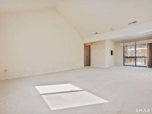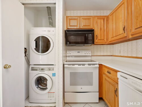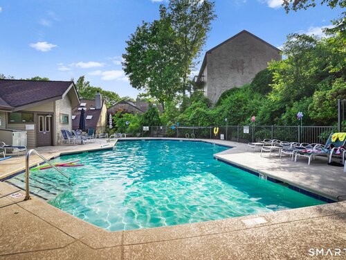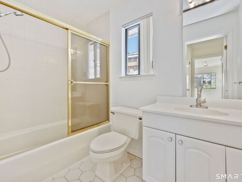 Welcome to this bright and inviting 1-bedroom condo located in the sought-after Chesterfield complex-a gated community with 24-hour security set amid serene, park-like grounds in the heart of Mid-City Stamford. This sunny corner unit features cathedral ceilings, a skylight that fills the space with natural light. The spacious living and dining area offers an easy, open layout ideal for both everyday living and entertaining, with sliders that lead to a generous sized deck-perfect for relaxing or enjoying your morning coffee. A generously sized primary bedroom with excellent closet space, and an in-unit washer and dryer. Residents of Chesterfield enjoy exceptional amenities, including two pools, a clubhouse, plenty of parking and beautifully landscaped grounds. All of this in a dynamite location across the street from Ridgeway Shopping Center, minutes Downtown Stamford, Metro-North, and major highways offering comfort, convenience and a wonderful community lifestyle.