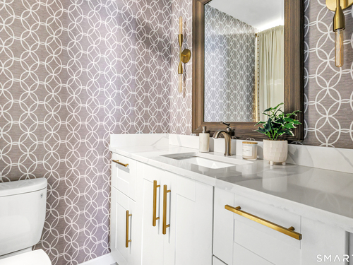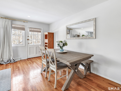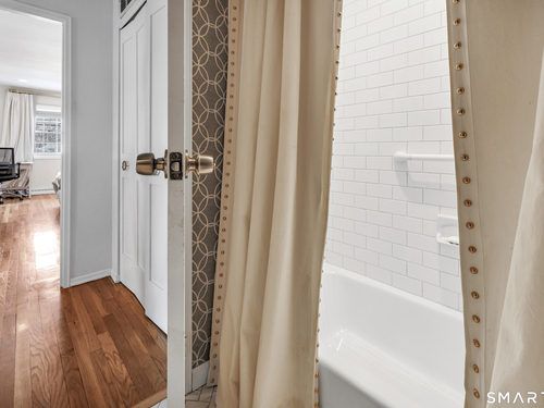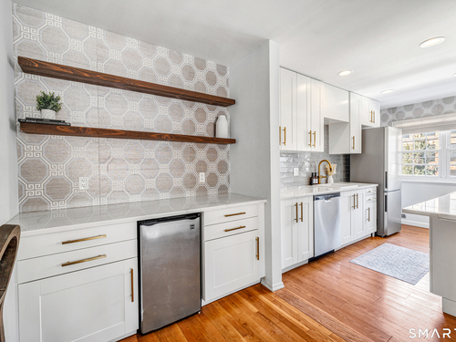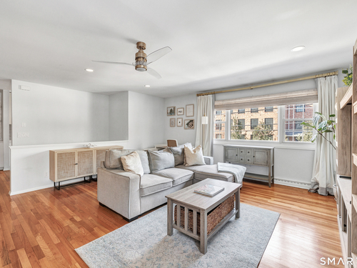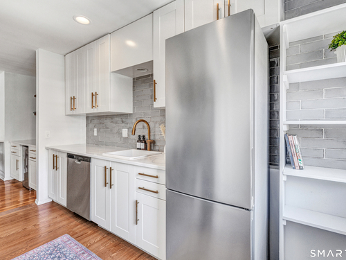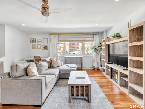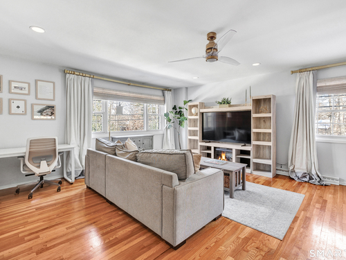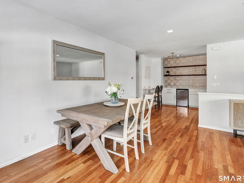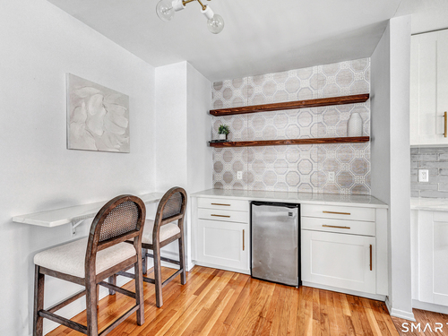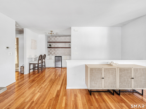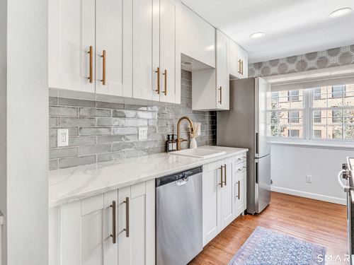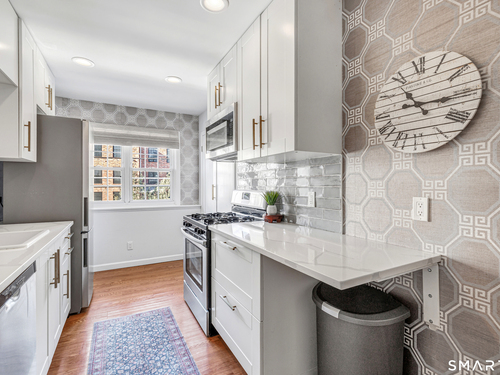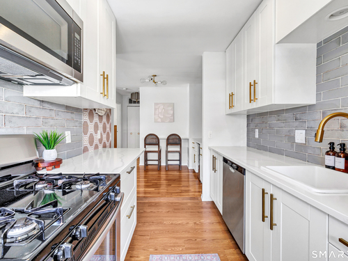 Stunning 1 bedroom 1 bath home offering just under 1000 sqft of living space in sought after Mosswood Condominiums! A stylish entrance featuring a custom runner & modern banister welcomes you into this beautifully updated home. The open-concept living/dining areas flow seamlessly into an eat-in kitchen, perfect for everyday living & entertaining! The renovated kitchen boasts white cabinetry, brass hardware, white quartz countertops, an eat-in "breakfast bar" & additional cabinetry area with floating shelves & a beverage cooler. AMAZING custom wall coverings in kitchen & bath. Hardwood floors & updated lighting thru-out, complemented by large windows that flood the space with natural light. The spacious primary bedroom features hardwood floors & a walk-in closet. The full bath features white vanity, white counters, brass hardware & a combination tub/shower. In unit washer & dryer. A deck off the main living area allows you your own private access to the outdoors. Central air & Natural gas. Storage unit in building. Quiet location in complex with private entrance & parking. Ideally located within walking distance to town, train, beach, restaurants & shopping. A must-see property offering comfort, style & convenience.