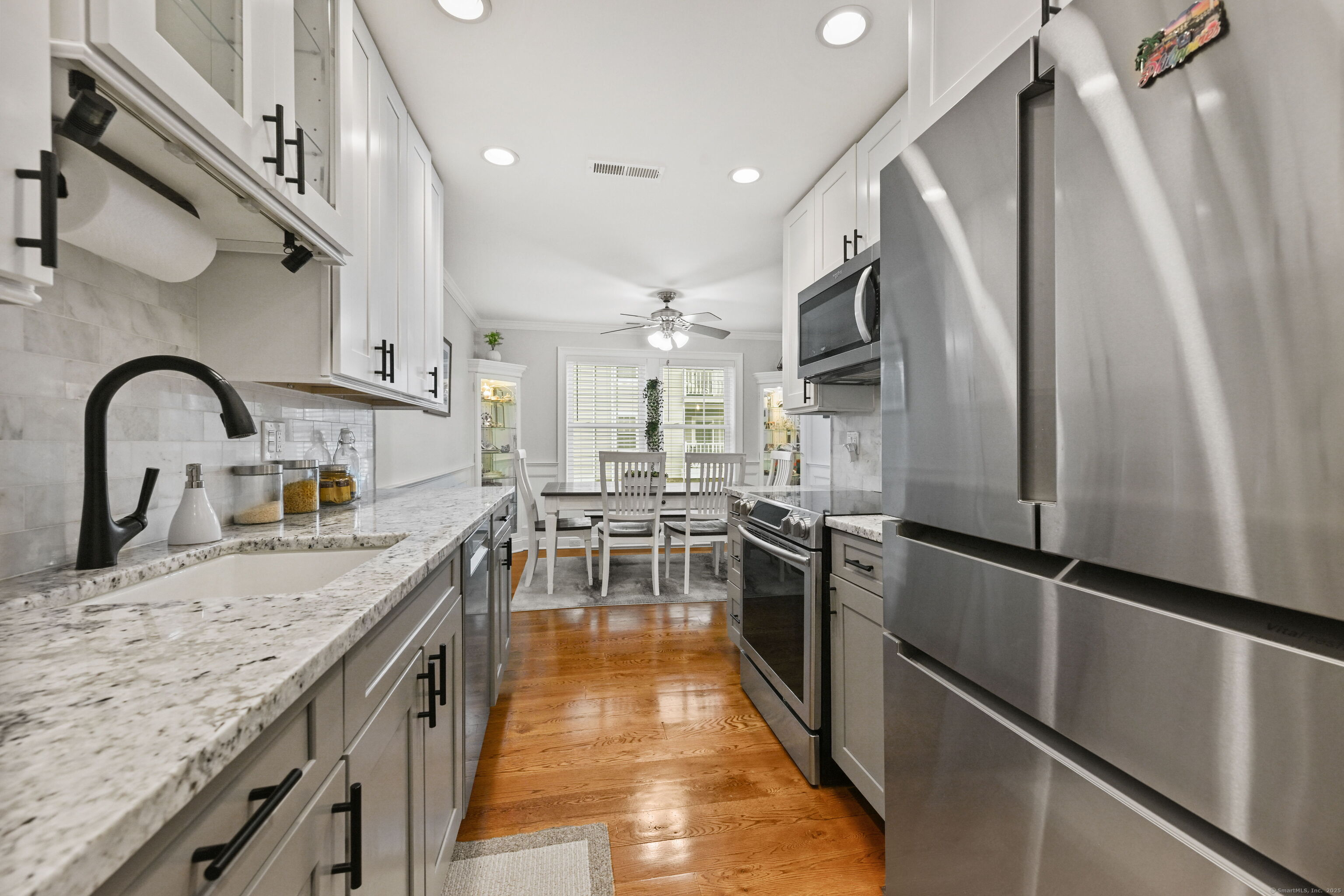 Welcome to 253 Mayfield Drive, a gorgeous, fully remodeled, one bedroom, ranch style, end unit, in the highly sought after Trumbull Town Commons. The kitchen features Bosch, stainless Steele appliances and Granite countertops. Custom walk in pantry. Maple hardwood floors throughout. Epoxy style garage floor with custom shelving. Electric car charger. Combination high efficiency boiler and tank less water heater. All new hot and cold water lines to a manifold for consistent water pressure. Front loader washer and dryer. Custom moldings throughout. Custom wine fridge with cabinet above. The entire interior was painted two years ago. Custom walk-in closet. Salt water heated pool. Walk to the library, Bank, Grocery store and Town Hall. Carefree living at its best!
