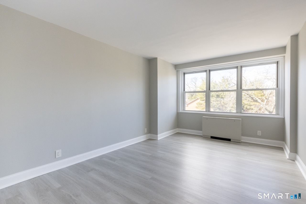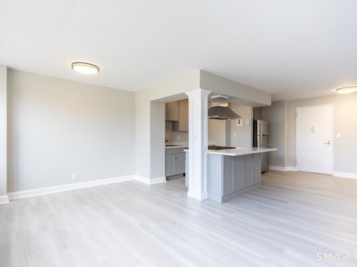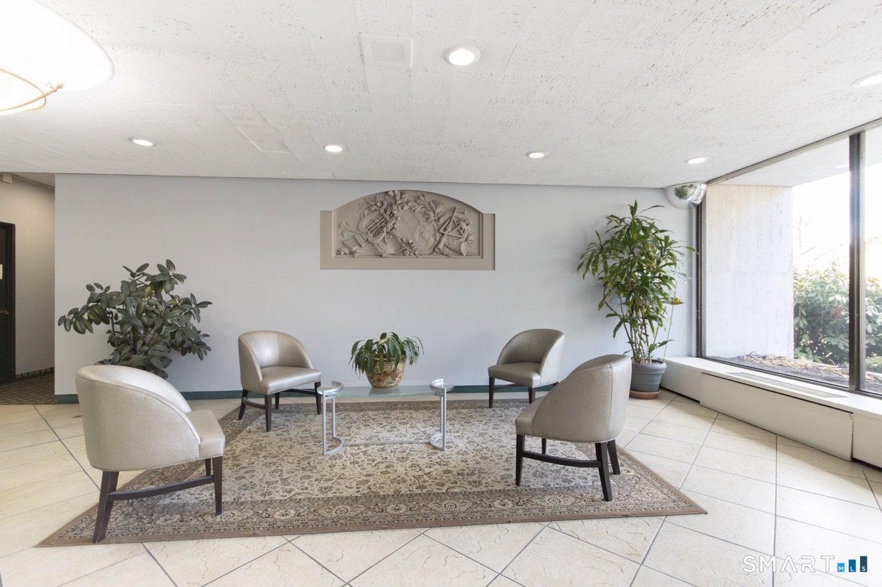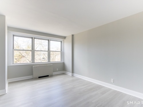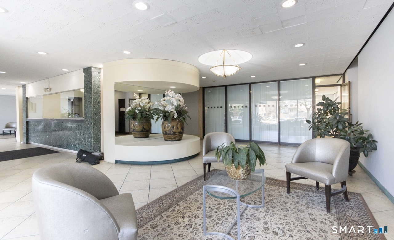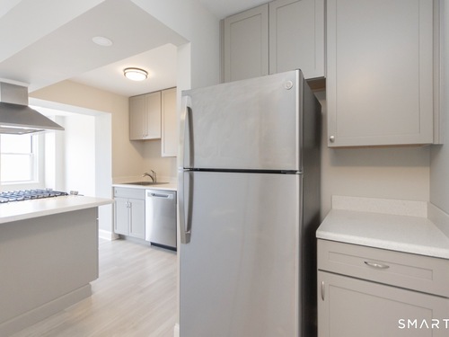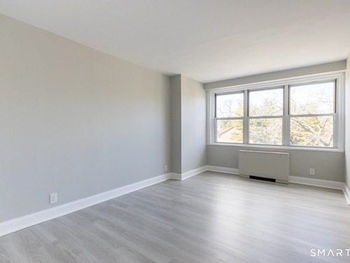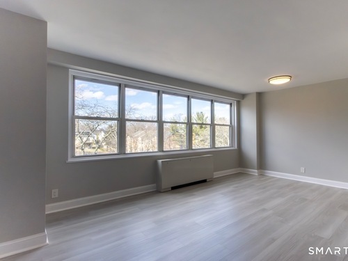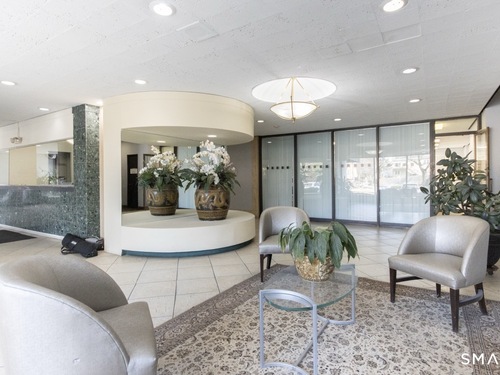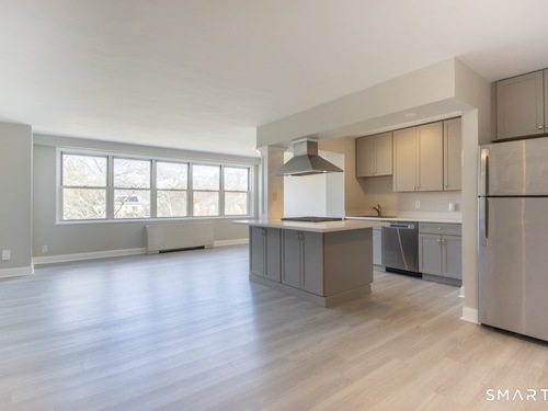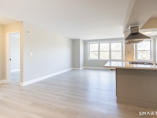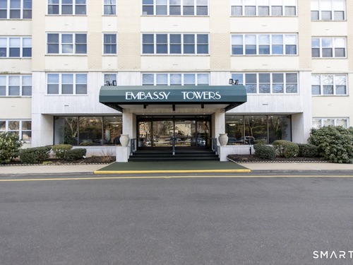 Fabulous open-concept condominium unit with extensive updates in sought-after Embassy Towers! This freshly painted home features luxury vinyl plank flooring throughout and a beautifully updated kitchen and bath. The bright, sun-filled kitchen offers wood cabinetry, quartz countertops, stainless steel appliances, gas range, hood, and island seating-perfect for everyday living and entertaining. Spacious living and dining areas are enhanced by abundant natural light from multiple windows. The generous bedroom offers serene views overlooking the resort-style Olympic-sized pool and features a large closet. A hall pantry provides additional storage. Enjoy easy, maintenance-free living with full-service amenities including 24/7 doorman/concierge, secure gated indoor parking with elevator access, on-site management, heated pool, tennis court, gym, library, event space, outdoor patio, laundry room, assigned parking, assigned storage, guest parking, and dog-walking area. This is a pet-friendly building! Ideally located in the Brooklawn area on the Fairfield line with quick access to I-95, Merritt Parkway, Metro-North, shopping, dining, and beaches. HOA includes heat, hot/cold water, and gas for cooking. Heating and cooling units updated in 2012.