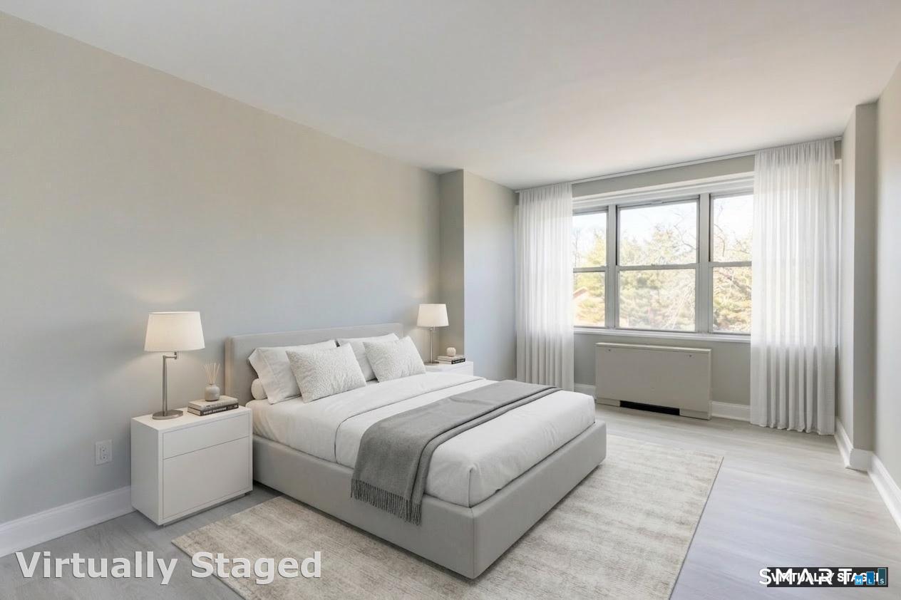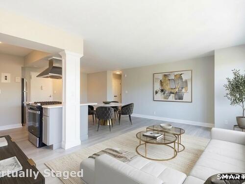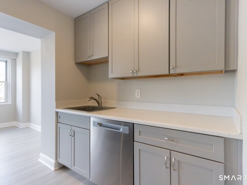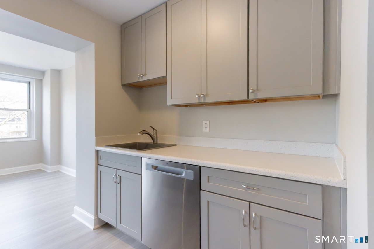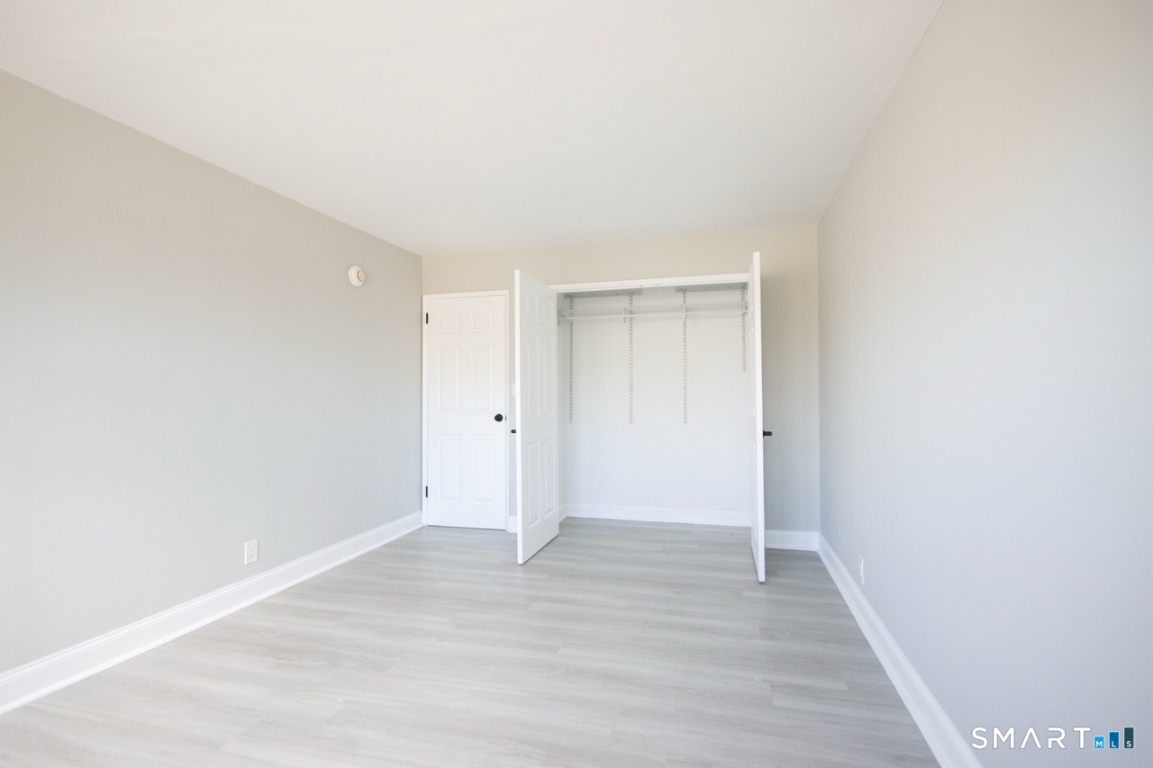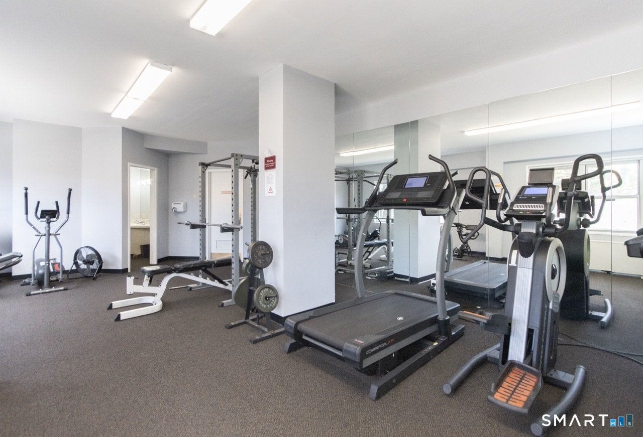 Fabulous open-concept condominium unit with extensive updates in sought-after Embassy Towers! This freshly painted home features luxury vinyl plank flooring throughout and a beautifully updated kitchen and bath. The bright, sun-filled kitchen offers wood cabinetry, quartz countertops, stainless steel appliances, gas range, hood, and island seating-perfect for everyday living and entertaining. Spacious living and dining areas are enhanced by abundant natural light from multiple windows. The generous bedroom offers serene views overlooking the resort-style Olympic-sized pool and features a large closet. A hall pantry provides additional storage. Enjoy easy, maintenance-free living with full-service amenities including 24/7 doorman/concierge, secure gated indoor parking with elevator access, on-site management, heated pool, tennis court, gym, library, event space, outdoor patio, laundry room, assigned parking, assigned storage, guest parking, and dog-walking area. This is a pet-friendly building! Ideally located in the Brooklawn area on the Fairfield line with quick access to I-95, Merritt Parkway, Metro-North, shopping, dining, and beaches. HOA includes heat, hot/cold water, and gas for cooking. Heating and cooling units updated in 2012.