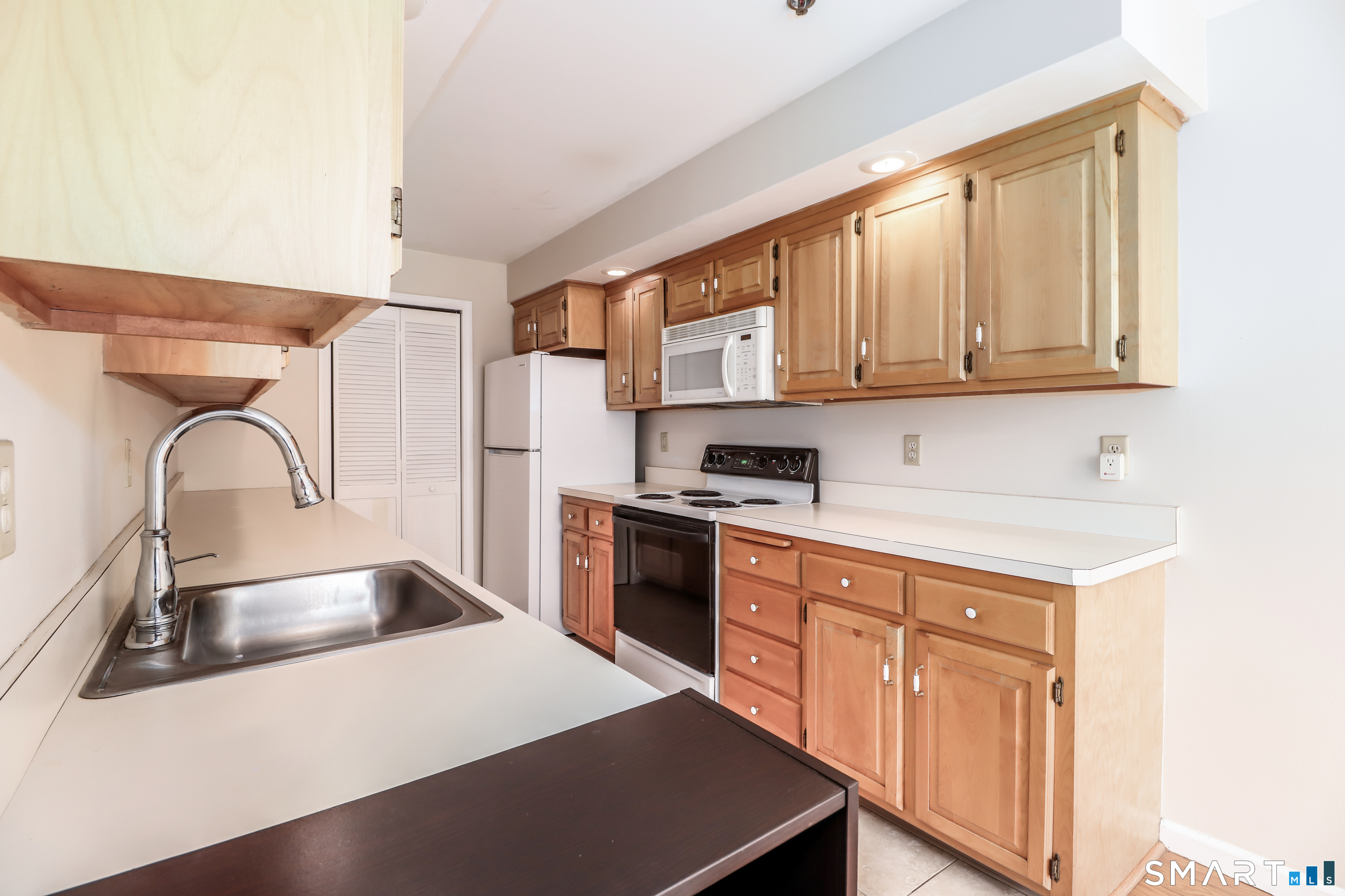1 bedroom plus den, end-unit Ranch condo with its own private entrance and serene wooded views. This solid unit offers a practical floor plan with living room, private deck, eat-in kitchen with pantry, one bedroom with walk-in closet, den/laundry room, and full bath-all on a single floor. Located in the peaceful Rollingwood community on Federal Road, you'll enjoy a quiet setting surrounded by mature trees, yet remain just steps from shopping, dining, and public transportation. This property awaits your personal vision and updates to unlock its full potential. With some TLC and modern touches, this well-located Ranch offers an excellent opportunity to create your ideal home in a desirable, established complex.