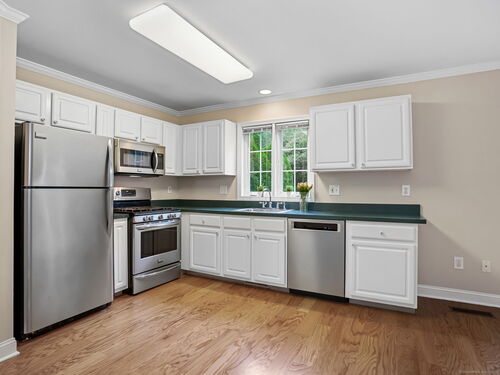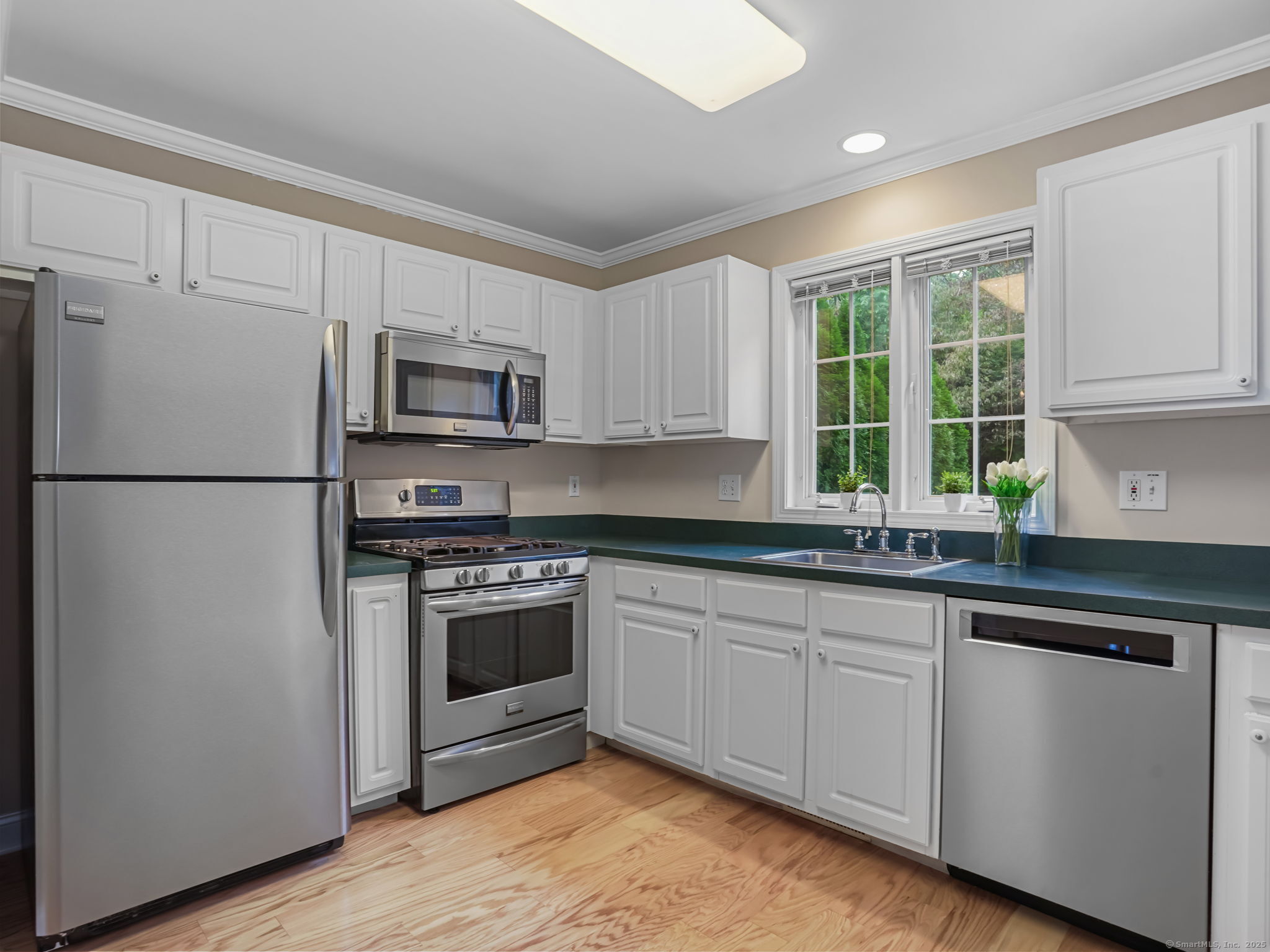 New to the market in South Wilton - you'll love this easy maintenance, free standing home in the beautiful community of Grumman Hill Village! Enjoy living in this wonderful location in a community close to commuter roads, the Metro North, shops and of course, award winning Wilton schools. This home is in great shape with brand new hardwood floors and new 2nd floor carpeting. Lovely open space on the first floor combines the living and dining room areas for easy entertaining. The eat-in kitchen and family room with gas fireplace open directly out to the VERY private patio and backyard. Upstairs the Primary vaulted ceiling suite boasts a large walk-in closet, palladium windows and the en-suite dual sink bathroom. There are 2 additional bedrooms, a terrific loft space (perfect for a home office) and a laundry/mechanical room. Loads of storage in the 2-car attached garage as well as a very large attic easily accessed by the 2nd floor pull-down staircase. Don't miss your chance to live in this fabulous Wilton community!