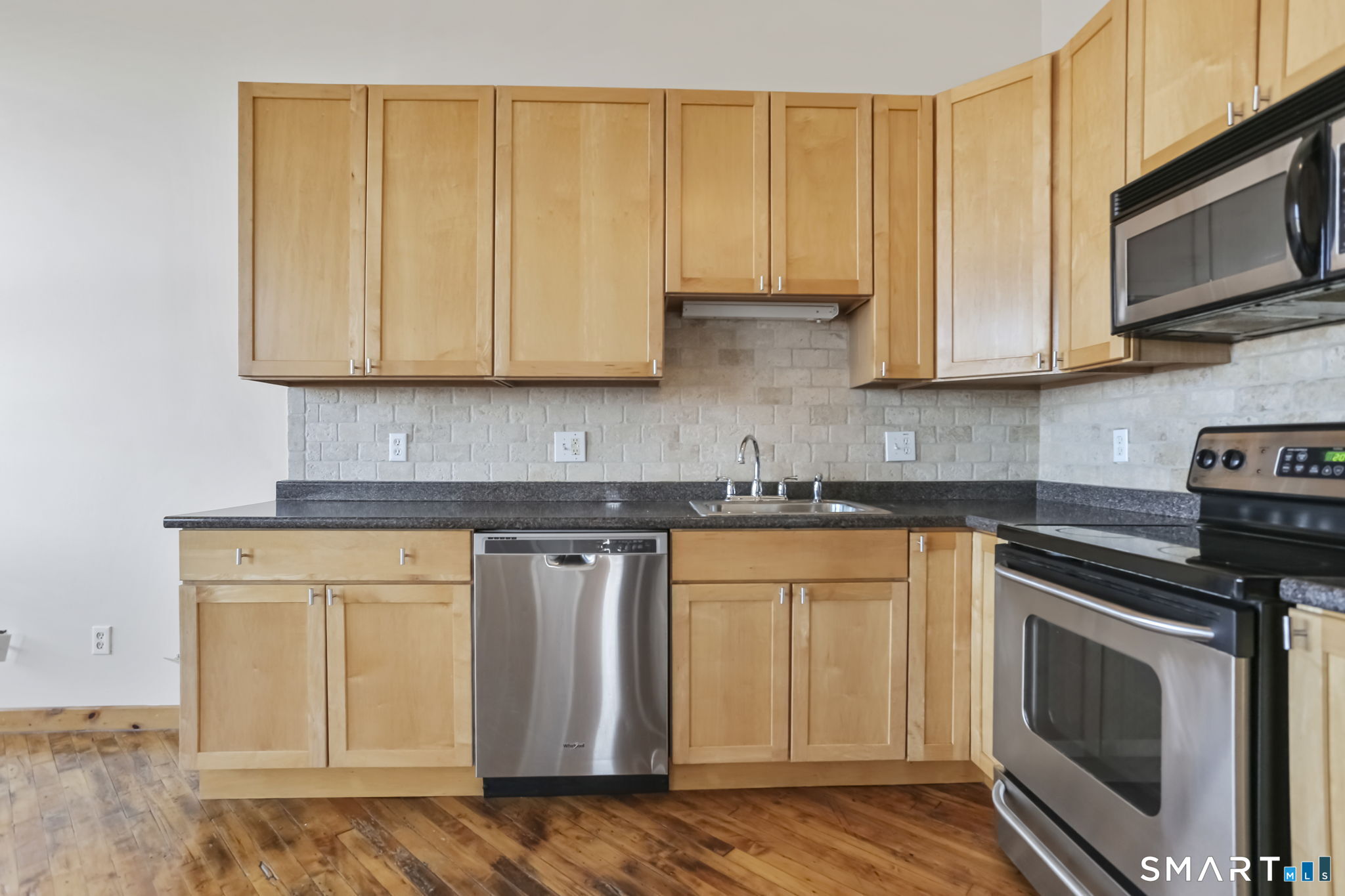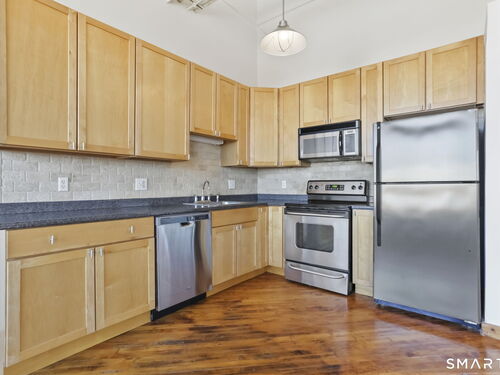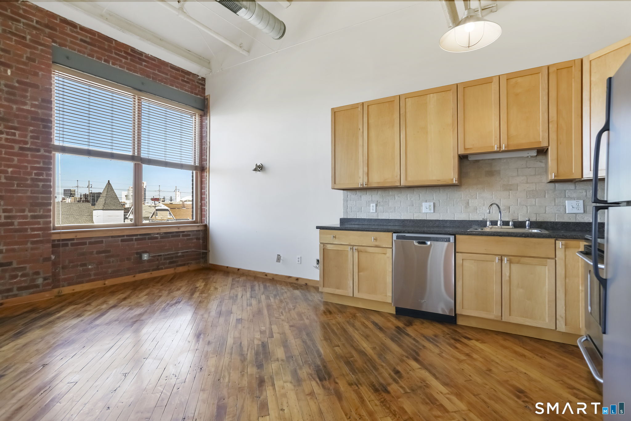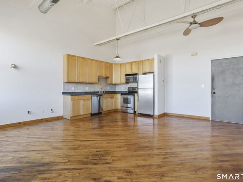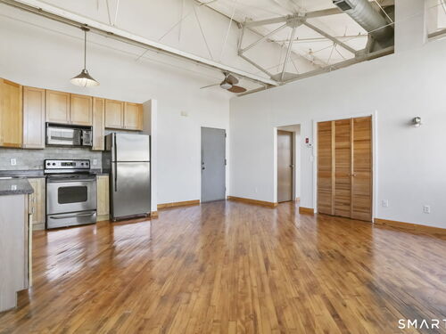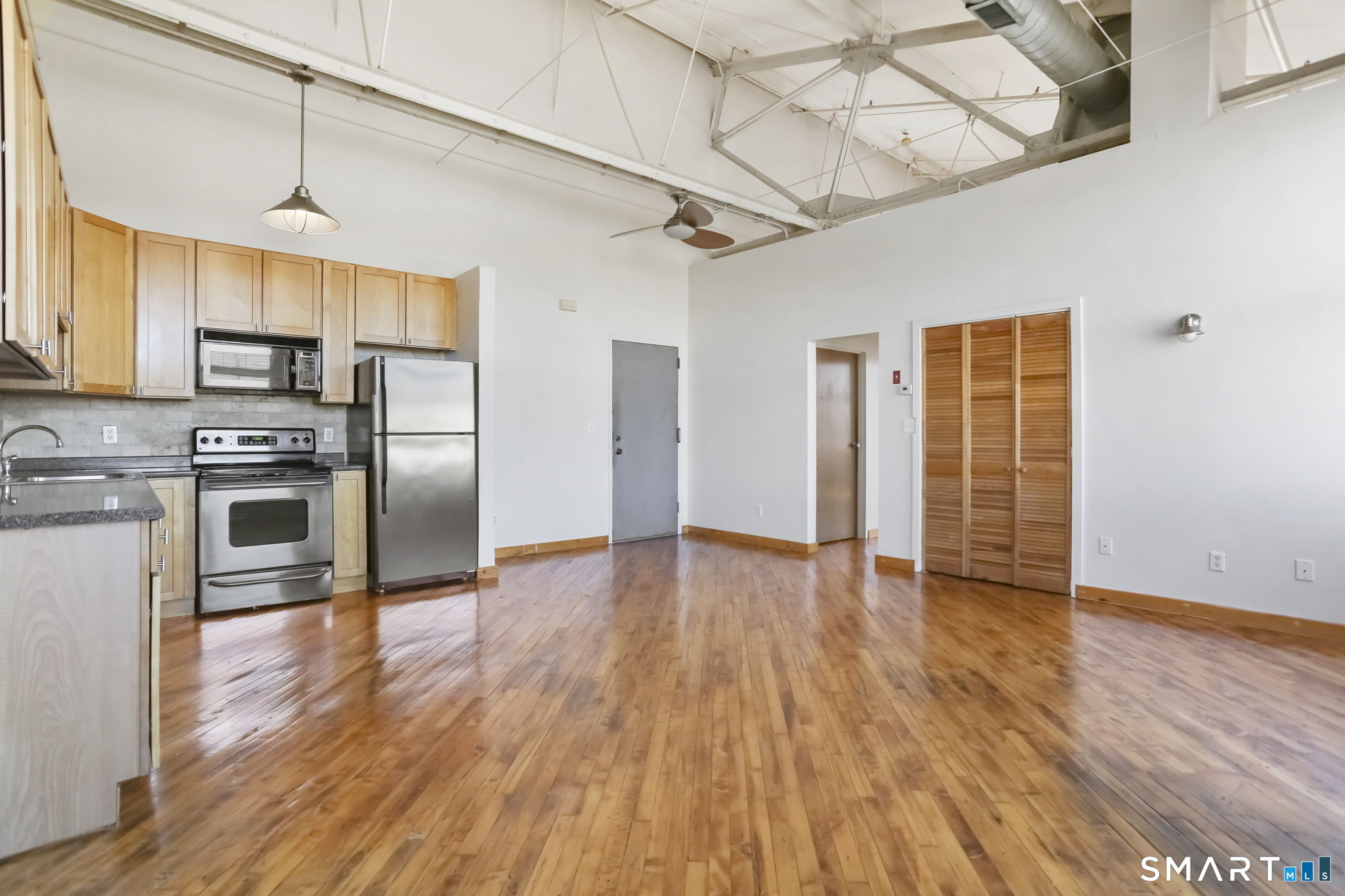 Welcome to Unit 8302 at 325 Lafayette Street in Bridgeport - a well-maintained top-floor condominium offering a seamless blend of comfort and convenience. This thoughtfully designed unit features an open-concept layout enhanced by abundant natural light and impressive 20+ foot ceilings, creating an inviting living and dining space ideal for both everyday living and entertaining. The kitchen offers ample cabinetry and counter space, providing both functionality and efficiency. The bedroom serves as a comfortable retreat with generous closet storage, while the tastefully appointed bathroom is designed for practical, everyday use.