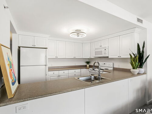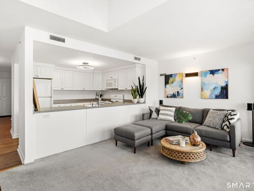 Fully-furnished, stylish, sunny 2-bed, 2-bath Black Rock condo delivers the ultimate fun, hassle-free lifestyle in one of Fairfield County's most vibrant seaside communities. Ideal for investors, down-sizers or first-time buyers, this home features in-unit laundry, central air, and efficient natural gas heat-keeping monthly bills manageable and eliminating concerns about rising oil costs. Chic, high-quality furniture means an easy move-in or increased rental income. Perched on the third floor of a modern elevator building, this freshly-painted unit offers one-level living with an airy, open-concept layout. The bright, cheerful living/dining spaces with a private balcony flow seamlessly into a large kitchen-perfect for everyday living or entertaining. Oversized primary suite with balcony access, en-suite bath, big closet. Second bedroom with walk-in closet and access to another full bath, perfect for guests or home office. Pet-friendly complex offers scenic walking paths along peaceful Ash Creek. Just steps away, Fairfield Ave. boasts a lively, walkable scene with indie cafes, shops, live music, and delish spots like Thai newbie "September in Bangkok". Bask in ocean views from paved waterfront running path along St. Mary's by the Sea. Enjoy proximity to beaches, Whole Foods, Fairfield, I-95, Metro-North. Turnkey, maintenance-free home or investment rental property, this condo checks many boxes! 49% of units permitted as rentals. Cash buyers only. Initial buyer did not perform.
