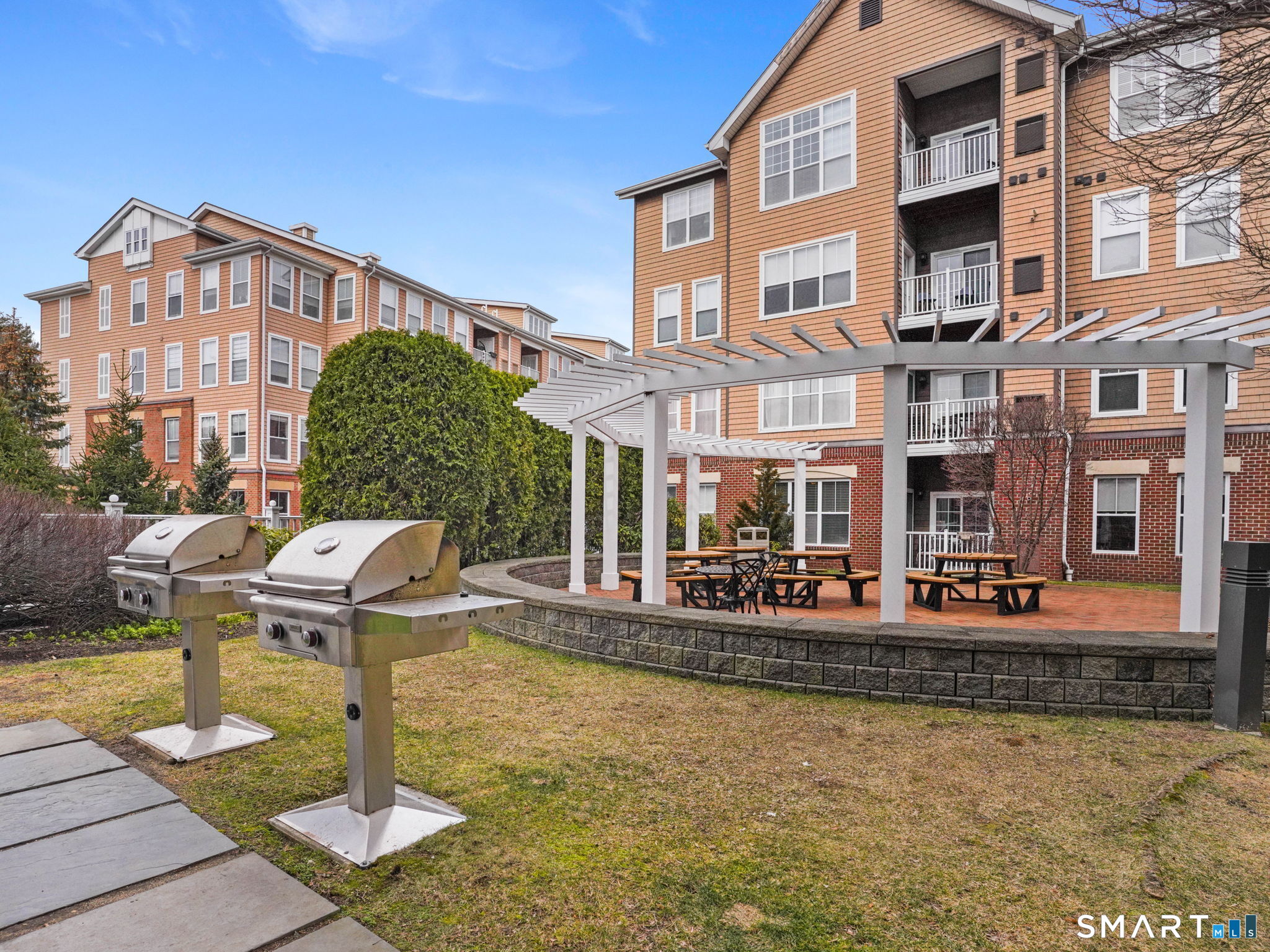Enjoy comfort, convenience, and security at the highly desirable Mill River House. This rarely available 2-bedroom, 2-bath condo features an open layout with high ceilings and large windows overlooking the courtyard, filling the space with natural light. Large storage space transfers with the unit. The modern kitchen offers granite countertops and a center island, while a private balcony-accessible from both the living room and primary bedroom-provides relaxing views. The primary suite includes a spacious walk-in closet and an en-suite bath, while the second bedroom also features a walk-in closet and nearby full bath. Additional highlights include central air, natural gas heat, and in-unit laundry. Residents enjoy amenities such as a fitness center, clubhouse, landscaped garden with grills, and secure garage parking. This doorman, pet-friendly elevator building sits next to Mill River Park, offering year-round events, trails, a carousel, and seasonal ice skating.