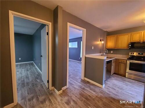 Updated corner unit in desirable Deerfield Woods, ideally located at the end of the building for added privacy and just steps from assigned parking and the entrance. Bright, sun-filled interior with a spacious living and dining area, covered private porch, and a generously sized kitchen with breakfast bar and potential for an open-concept layout. Community amenities include pool, well-maintained grounds, and convenient on-site laundry. Common charges include water. Prime location close to shopping, restaurants, highways, and commuting.