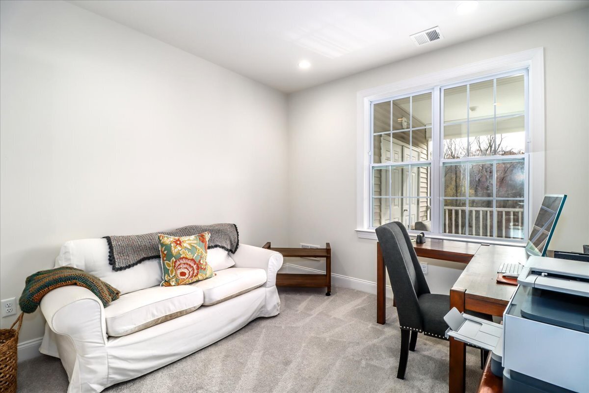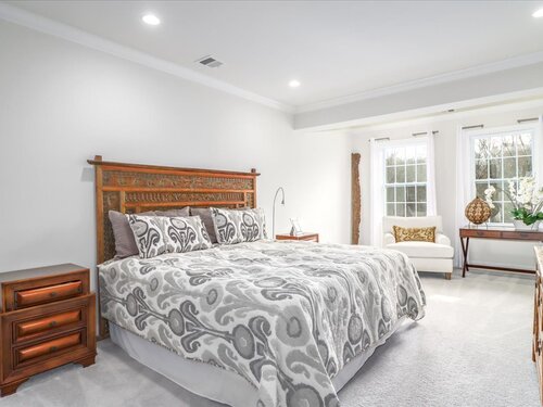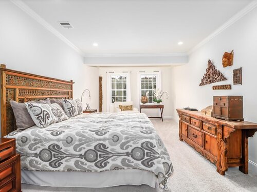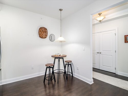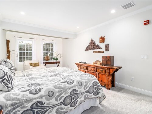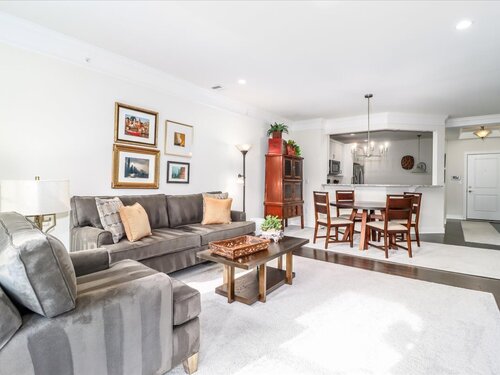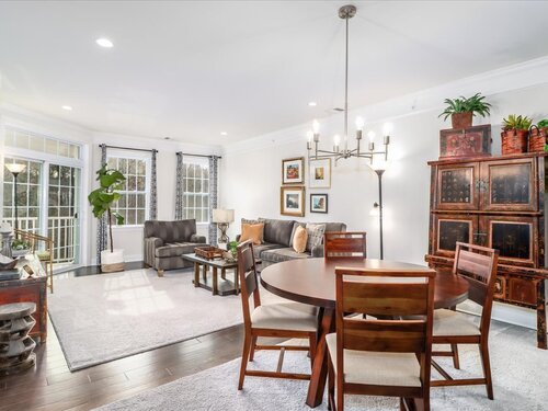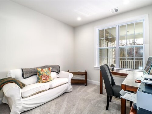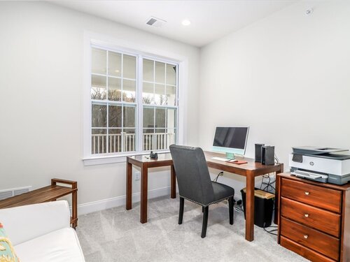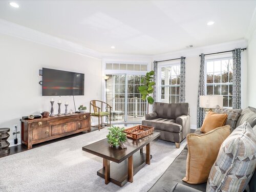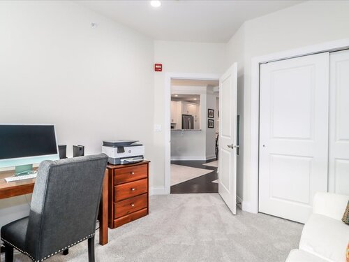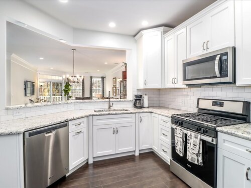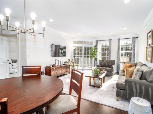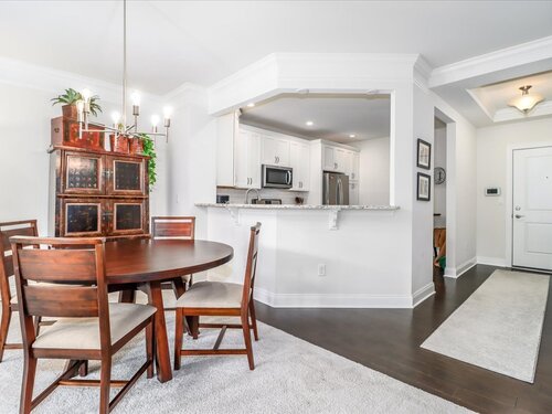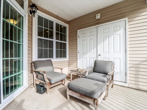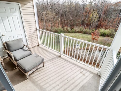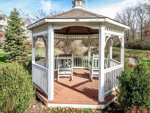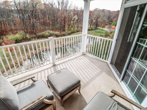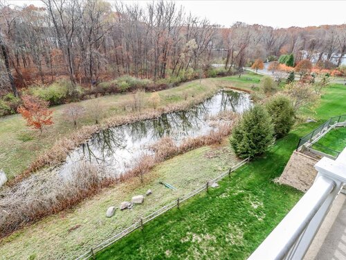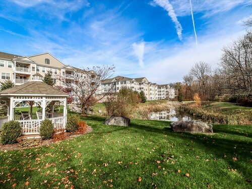 Luxurious one-level living awaits in this beautifully appointed Toll Brothers residence at Newtown Woods, a sought-after 55+ community. This 2-bedroom, 2-bath, 1,500+ sq. ft. third-floor unit offers secure entry, elevator access, a private garage, and a covered balcony with serene views of woods and stream. The open floor plan features hardwood floors, 9' ceilings, and elegant finishes. The eat-in kitchen includes a breakfast bar, granite counters, stainless steel appliances, and modern 48" cabinetry, with space for casual dining. The ensuite primary bedroom offers a sunlit sitting area, walk-in closet, and retreat-like comfort. The second bedroom is versatile for guests, office, or TV space. Conveniently located near dining, shopping, cultural venues, and commuting routes, midway between NYC and Boston. Residents enjoy a 5,800 sq. ft. clubhouse with fitness center, yoga studio, sauna, gathering room, bar, classroom, art studio, billiards, and game room. A catering kitchen supports social events. Outdoor amenities include a heated pool, patio, bocce court, trails, and gazebo with grill. This picturesque community offers both relaxation and activity.