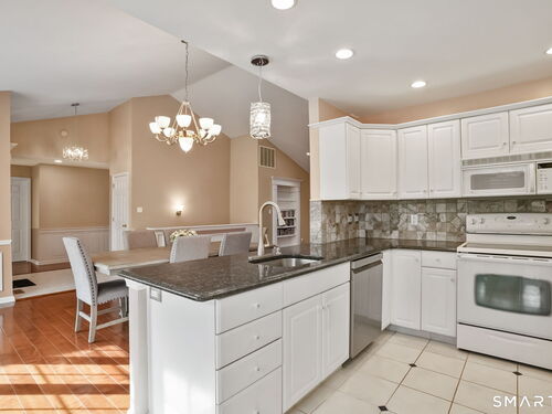 Welcome to highly sought after Aspetuck Village. This turnkey Breckenridge end-unit is situated on a cul-de-sac and offers the perfect blend of comfort, space, and lifestyle. Featuring 3 beds and 3.5 baths, this beautifully maintained unit boasts an open-concept main level where the eat-in kitchen, dining area, and living room flow seamlessly together. The kitchen is appointed with granite countertops and a cozy breakfast nook, while the dining and living areas showcase hardwood floors and vaulted ceilings. Enjoy the sunken 4-season sunroom, filled with natural light and step out onto a spacious deck overlooking a private, tree-lined yard. The primary suite offers 2 walk-in closets, and full bath with a whirlpool tub and separate shower. A 2nd bedroom with its own full bath, along with a convenient 1/2 bath, completes the main floor. The finished walkout lower level significantly expands your living space, featuring a 3rd bedroom, full bath, office or playroom, storage room, and direct access to the 2-car garage. Step outside to a charming stone patio, a second private outdoor retreat. Additional highlights include main level laundry, 3-zone heating/cooling installed in 2020. Aspetuck Village is known for its meticulously maintained grounds and exceptional amenities including an in-ground pool, clubhouse tennis and pickleball courts, bocce, and a playground. With low HOA fees and Shelton's attractive property taxes. This is truly a must-see!
